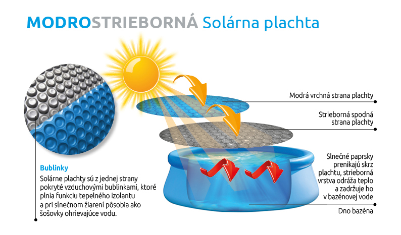 V súlade s prírodouSolárna plachta dokáže pôsobením slnečných lúčov ľahko prehriať vodu pod hladinou. Bublinky fungujú ako šošovky, a tak pri slnečnom žiarení zvyšujú celkovú teplotu vody. |