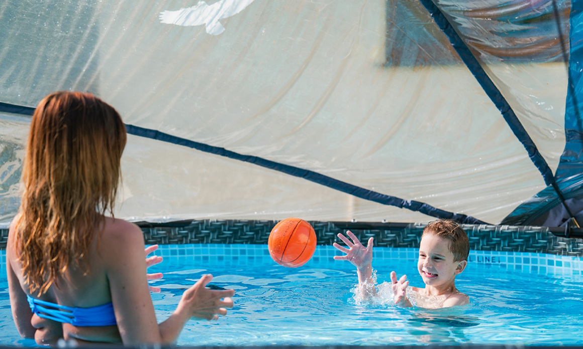 Pre nadzemné aj zapustené bazény je vhodné zastrešenie Pool House Cabrio, ktoré sa pomocou kotiev zapustí do zeme a jednoducho tak z akéhokoľvek nadzemného bazéna urobí kompletne krytý bazén. Ľahko sa s ním manipuluje a je možné ho zaistiť zámkami proti vniknutiu domácich maznáčikov, alebo zvedavých detí.