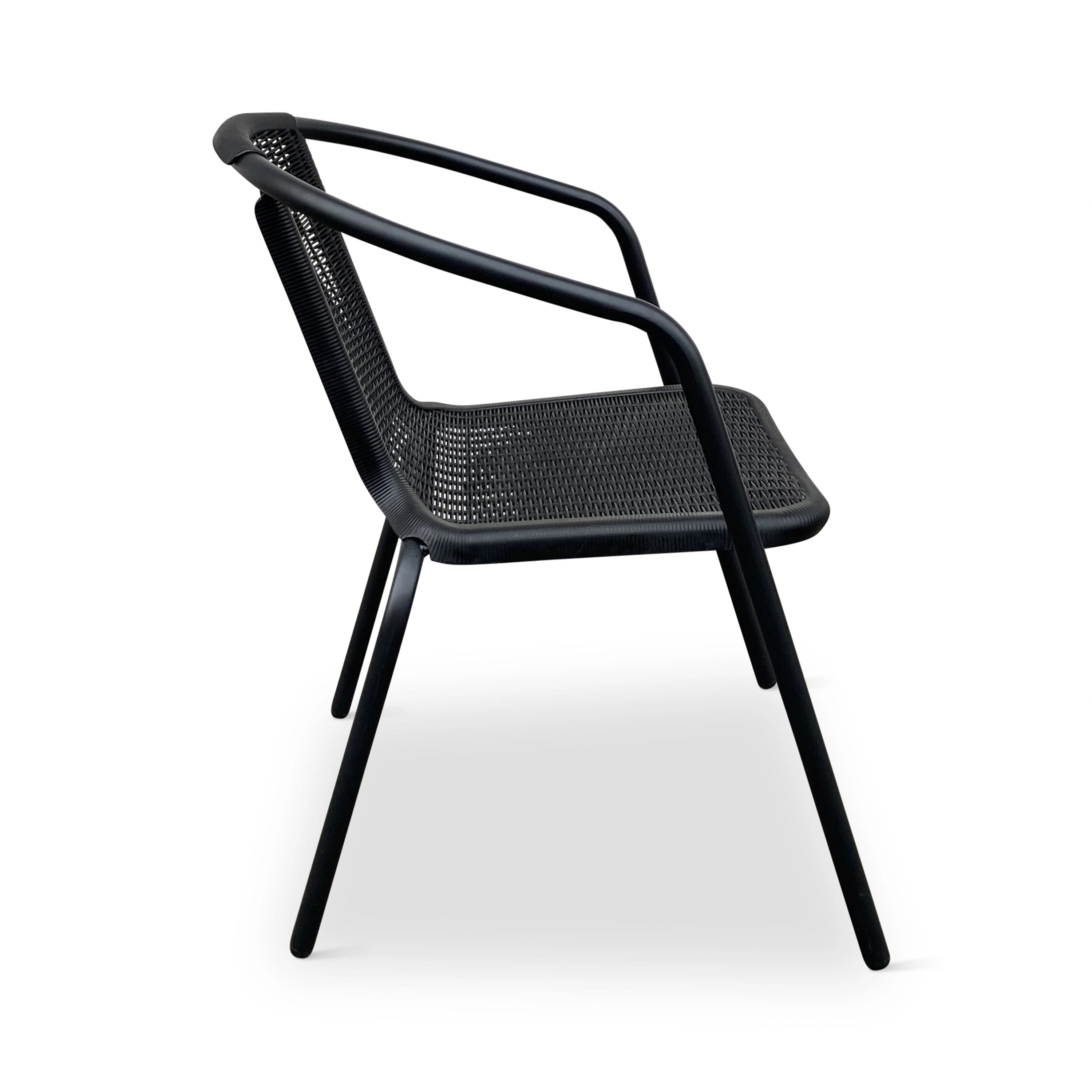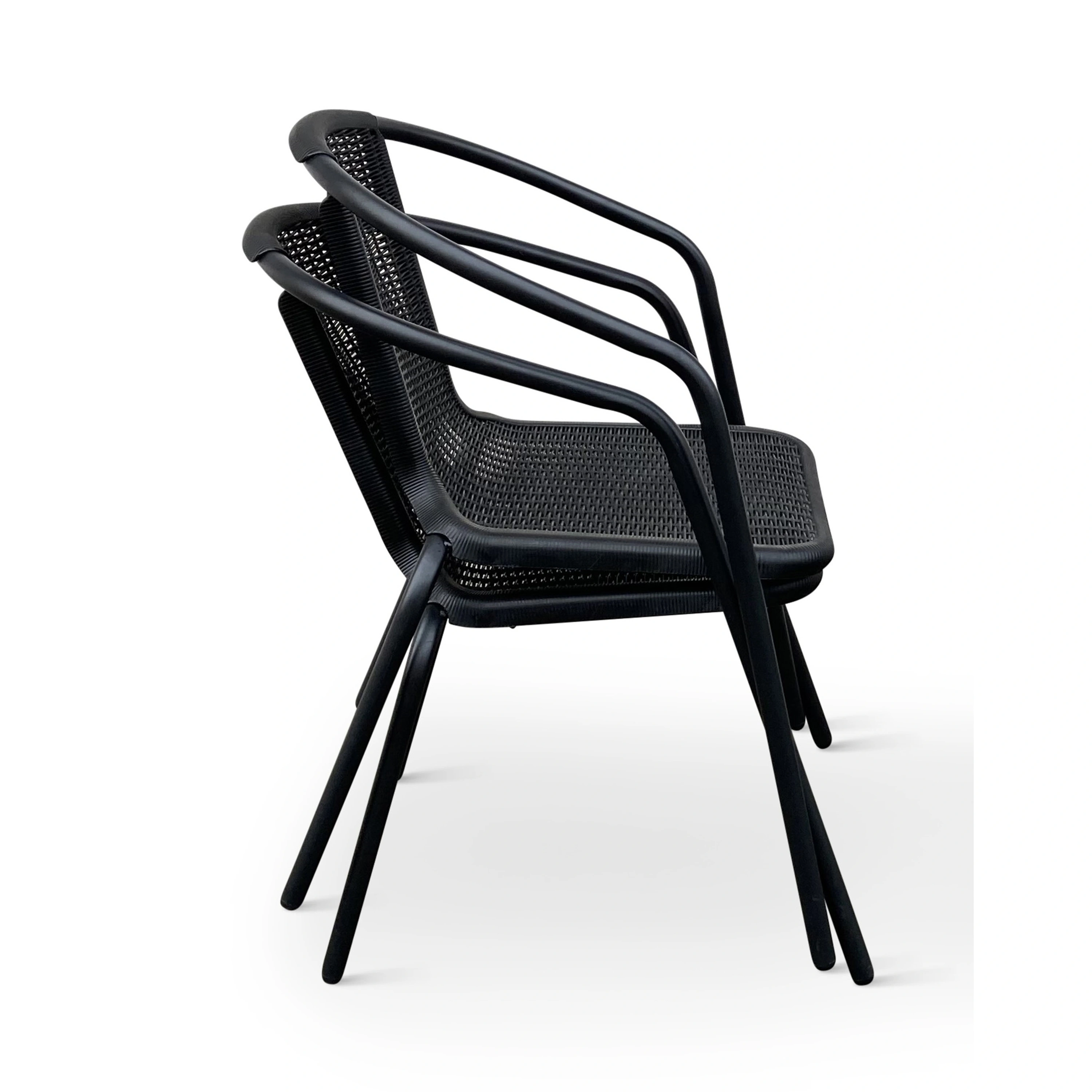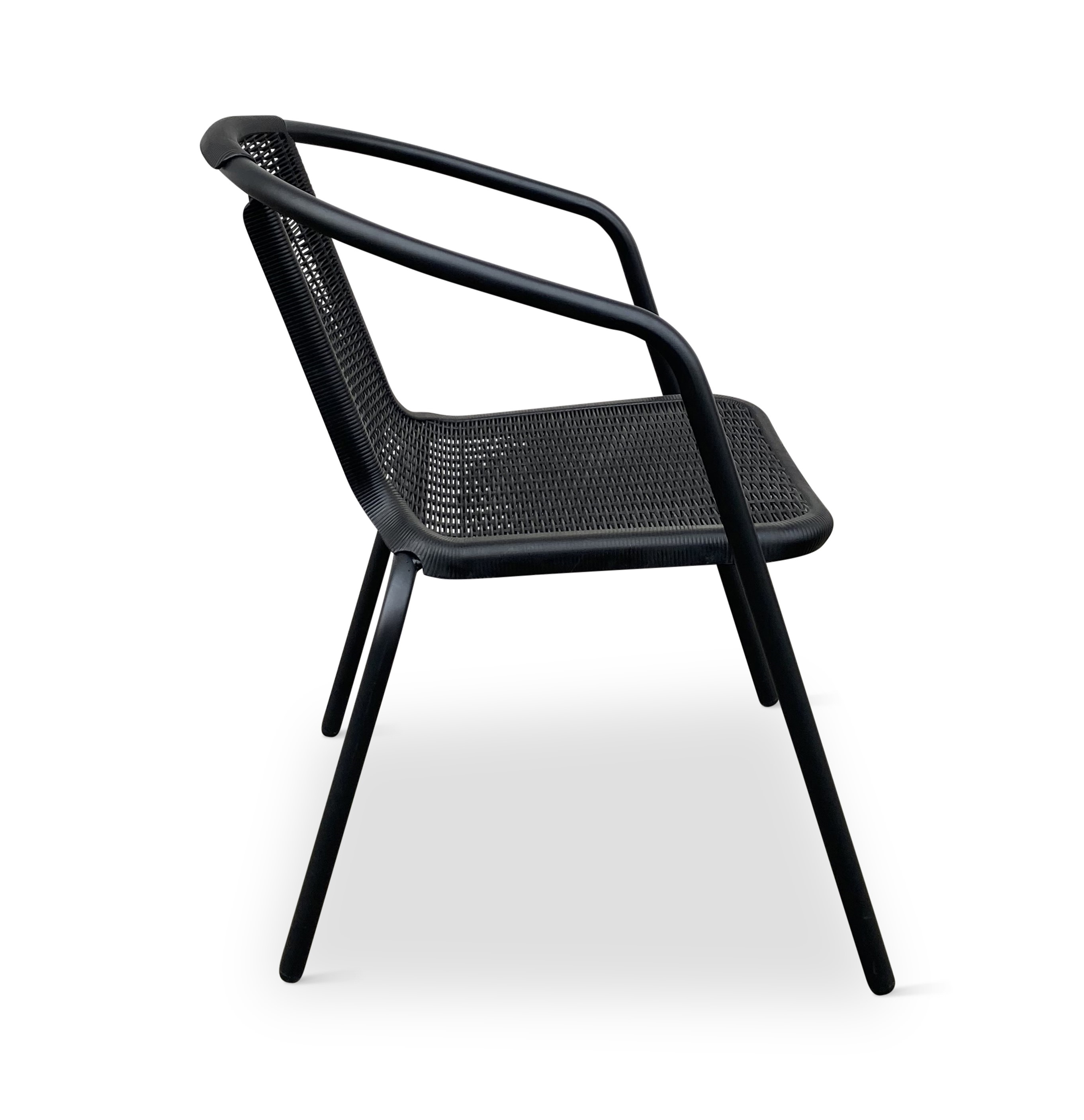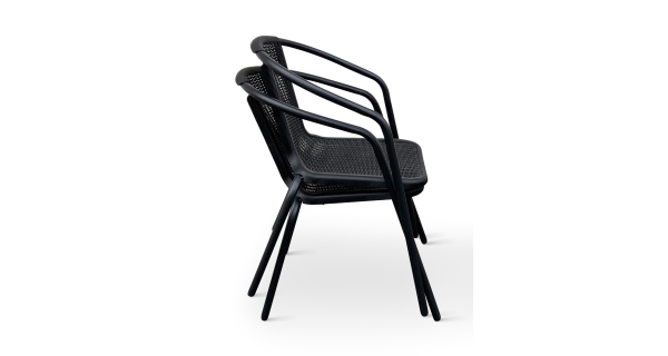 Pohodlné balkónové kreslo Bistro s oceľovou konštrukciou a výpletom z umelého ratanu. Stohovateľný dizajn kresla oceníte najmä pri uložení po sezóne, kedy kreslá jednoducho naukladáte na seba. Jednoduchá manipulácia vďaka nízkej hmotnosti.