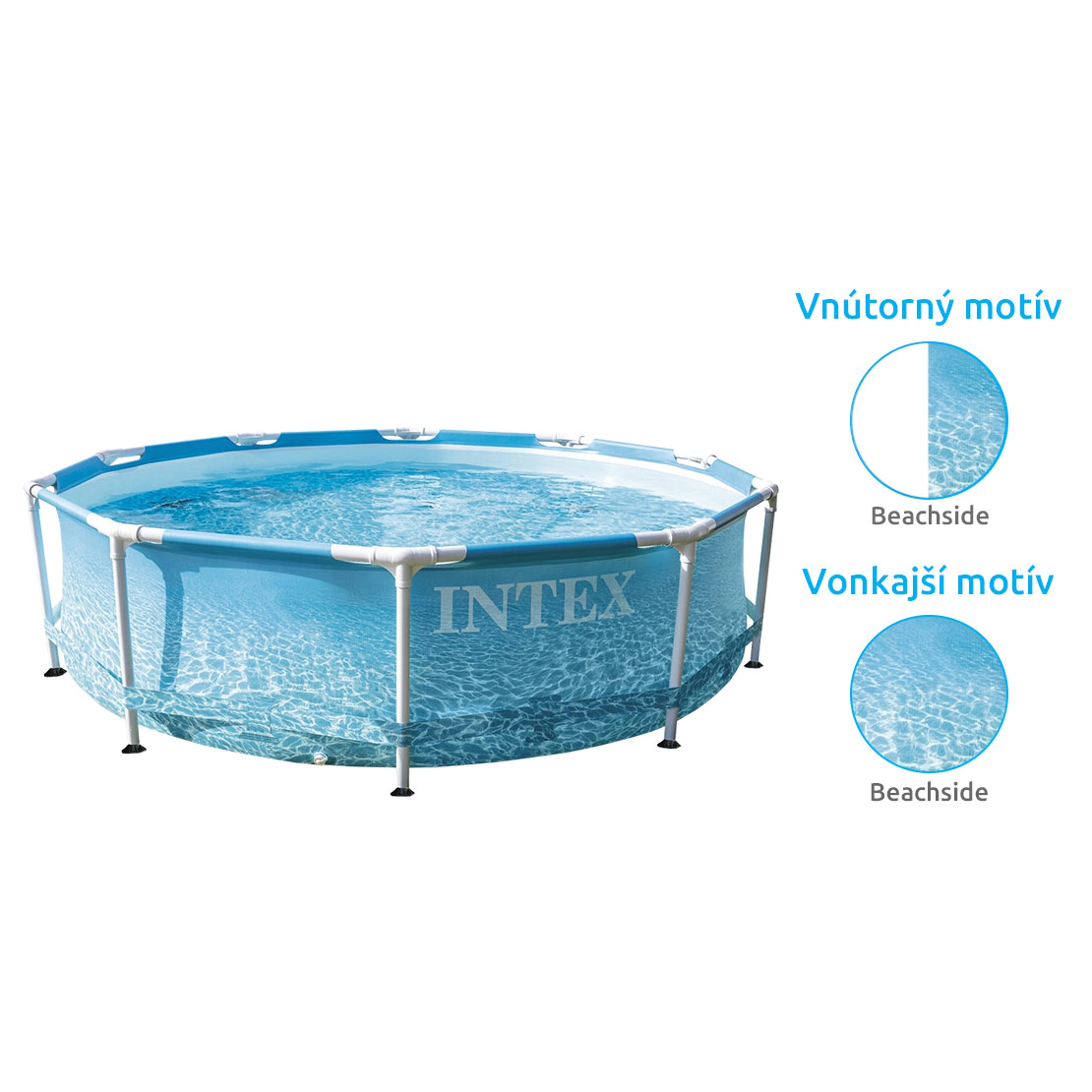 - motív vnútornej fólie = biela na stenách / na dne bazéna dekor "beachside" (motív morských vĺn)