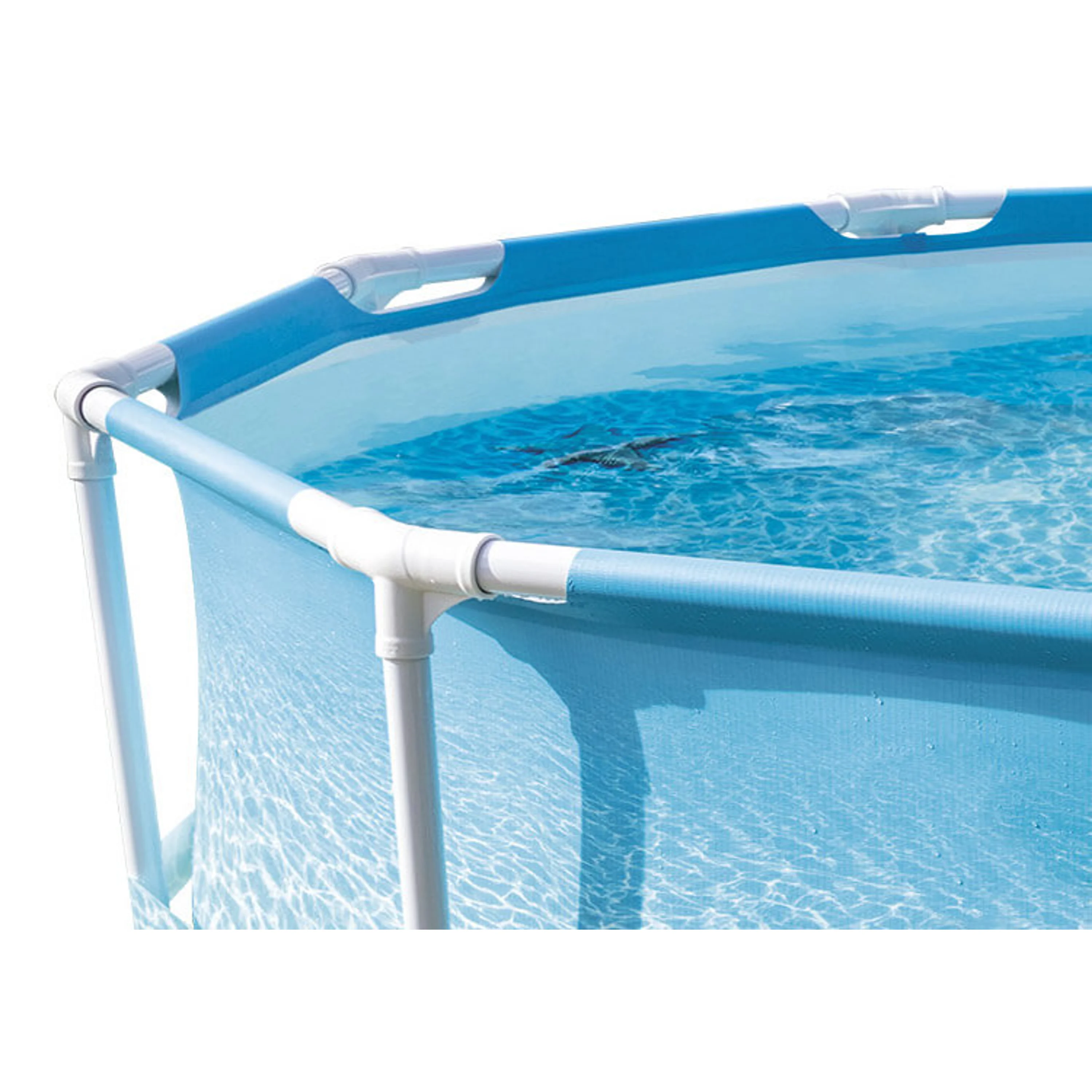 Stabilita a veľkosťBazénovú plachtu vypína pevná kovová konštrukcia, ktorá umožňuje, aby boli bazény vyrábané aj vo veľkých rozmeroch. Široká vodná plocha tak poskytuje dostatočný priestor na kúpanie. |