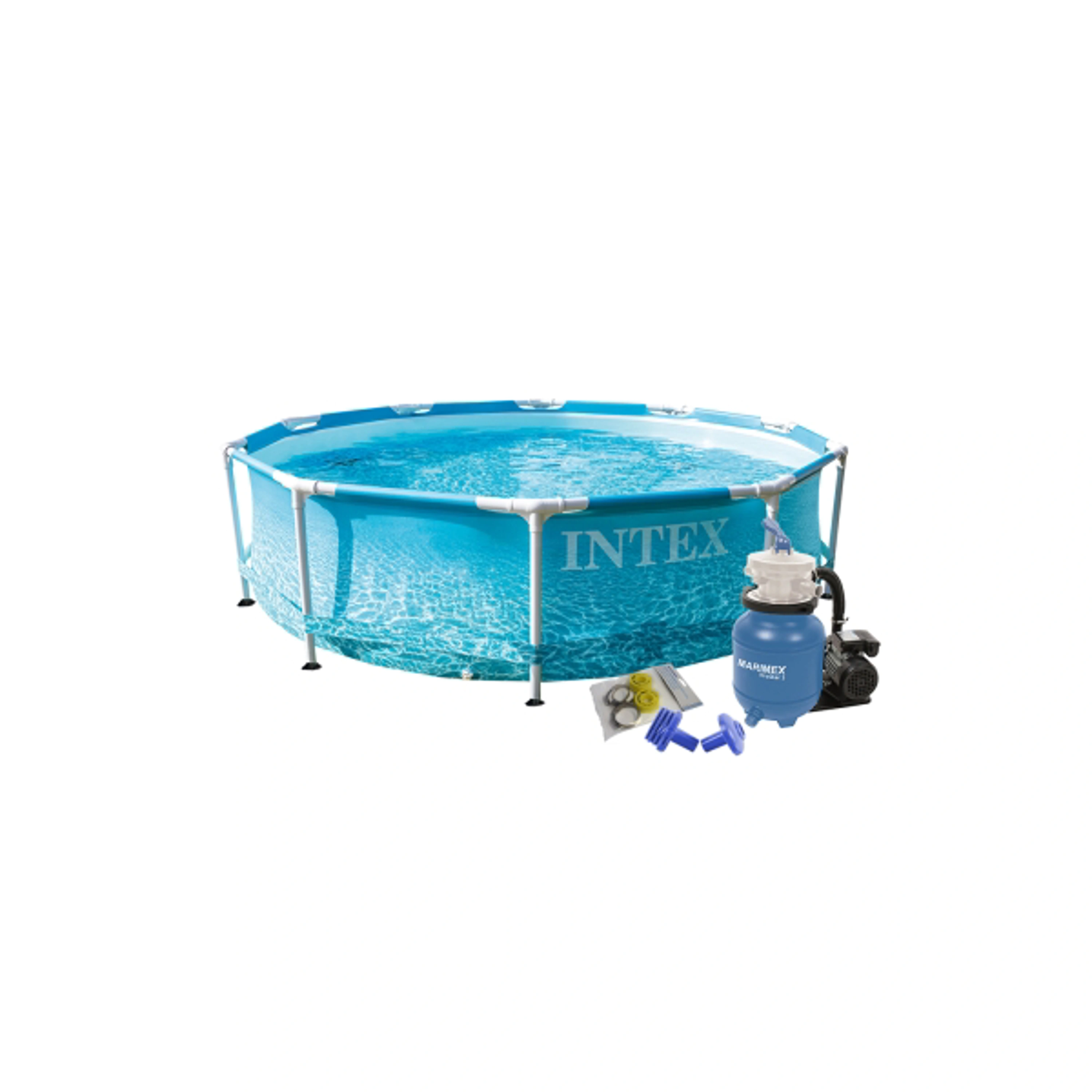 Bazénový set obsahuje všetky potrebné diely na prepojenie bazéna a filtrácie (napr. hadice, pásky na upevnenie hadíc, kartušovú vložku filtrácie a pod.)