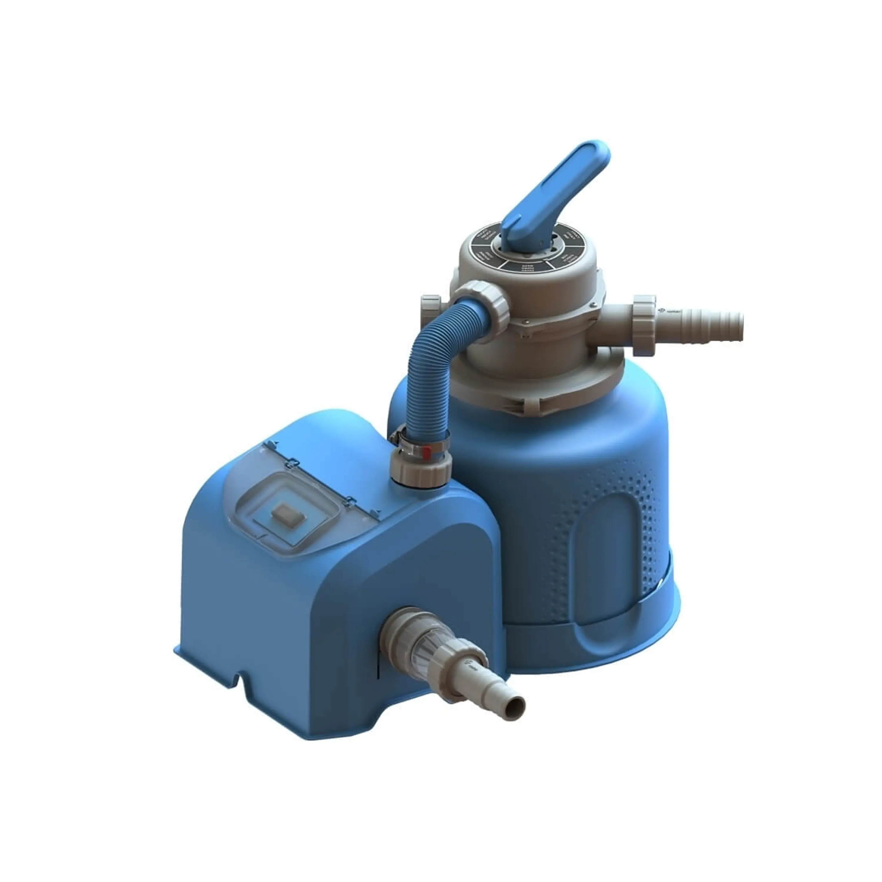K bazénu je dodávaná piesková filtrácia Marimex ProStar 4 s výkonom 4 m3/hod., bez hadíc, spojovacieho materiálu a priechodok stenou bazéna. Pre napojenie filtrácie sú pripravené priechody stenou bazéna s priemerom 32 mm (5/4"). Štandardne sa k pieskovej filtrácii filtračný piesok nedodáva, je potrebné ho objednať zvlášť.