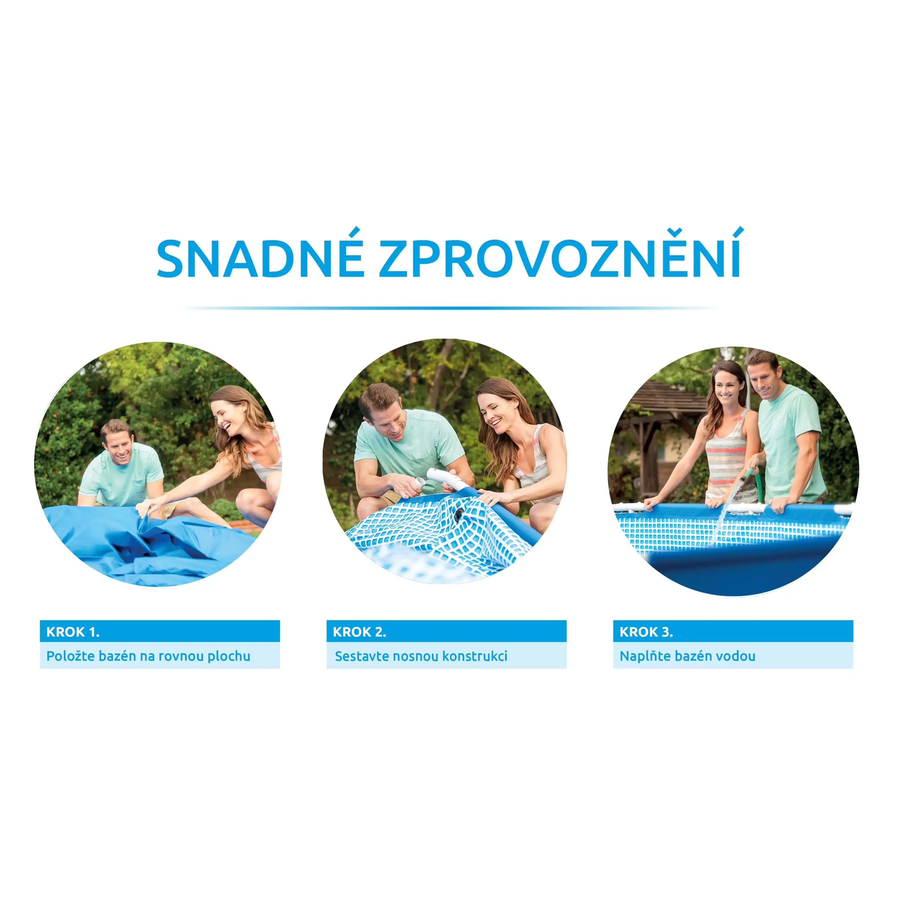 Uvedené rozmery bazéna sú iba orientačné a ovplyvniť ich môže rovnosť podkladu či objem napustenej vody. Povolená výrobná odchýlka je 5 %.