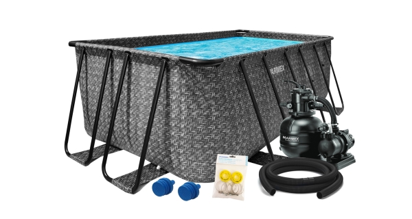 K bazénu je dodávaná piesková filtrácia ProStar 4 s výkonom 4 m3/hod., vrátane hadíc, spojovacieho materiálu a priechodok stenou bazéna. Piesková filtrácia má 6-cestný ventil, prietok 4 m3/hod., nádobu na 17 kg piesku. Príkon filtrácie je 200 W.
