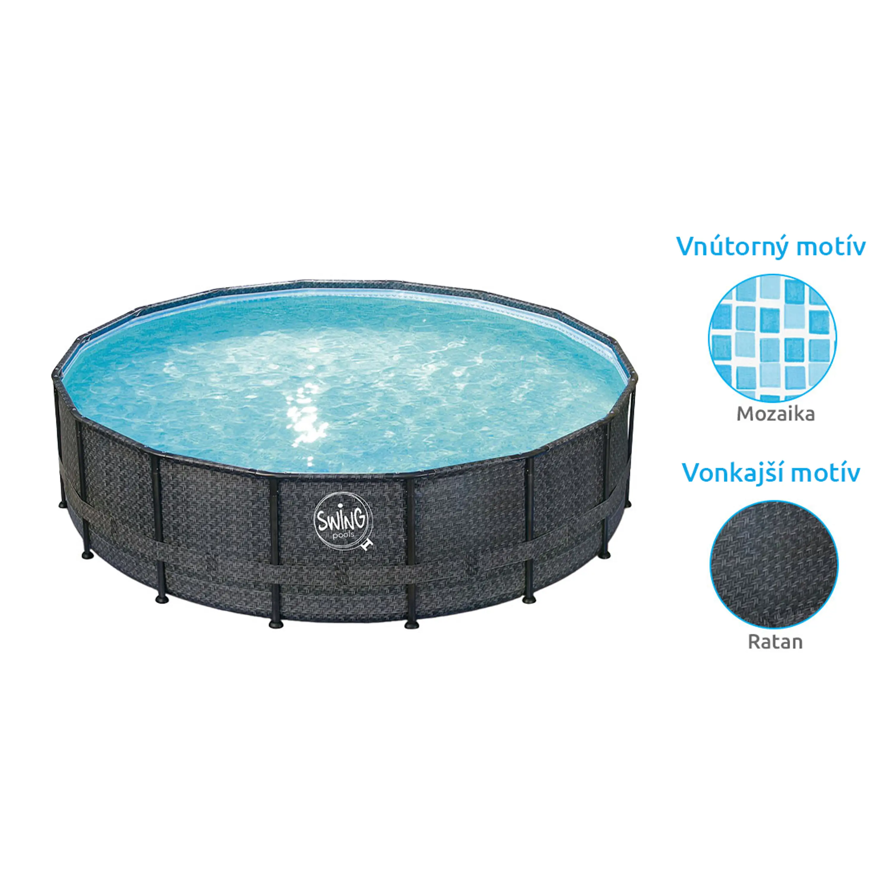 Bazén má bočné steny vyrobené z pružného a pevného 3-vrstvového PVC materiálu. Vzpery sú galvanizované so zvýšenou odolnosťou proti korózii.