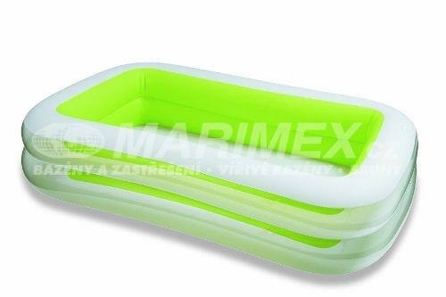 Svetlo zelený bazén je bez filtrácie, má obdĺžnikový tvar a celkový objem vody v bazéne je 0,75 m3. Hĺbka bazéna je pol metra, bazén má vypúšťací ventil a záplatu.