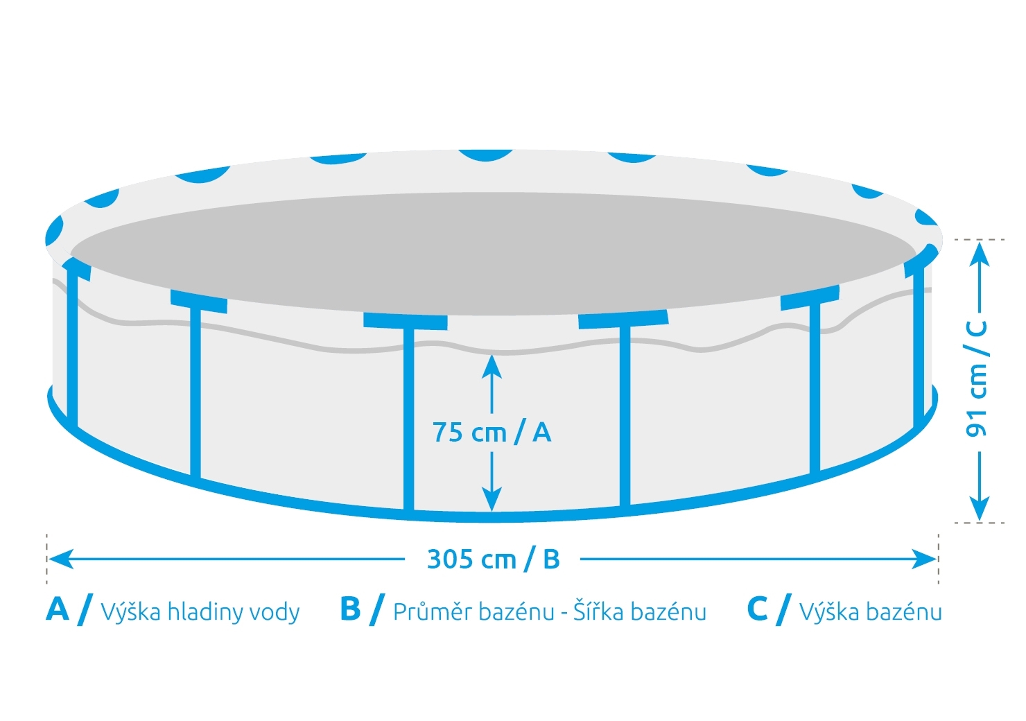 Uvedené rozmery bazéna sú iba orientačné a ovplyvniť ich môže rovnosť podkladu či objem napustenej vody. Povolená výrobná tolerancia je 5%.