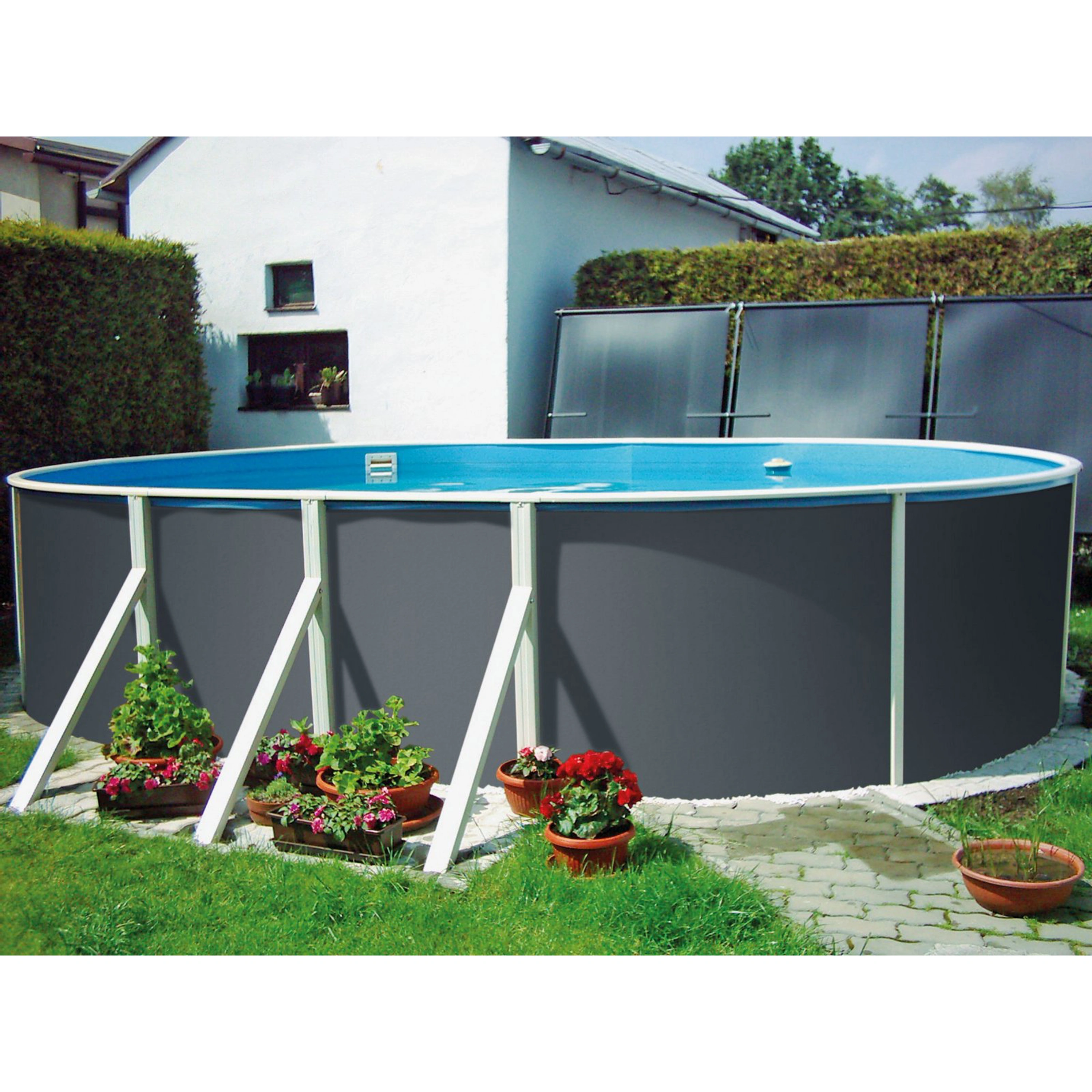 Oválny bazén, ktorý patrí medzi najobľúbenejšie z celého radu bazénov Orlando Premium. Oválne bazény, vďaka svojmu tvaru, poskytujú dostatočnú dĺžku vodnej plochy, ale pri tom na stranách bazénov zostáva dostatok miesta napríklad na príjemné posedenie vybavené záhradným nábytkom a slnečníkom.
