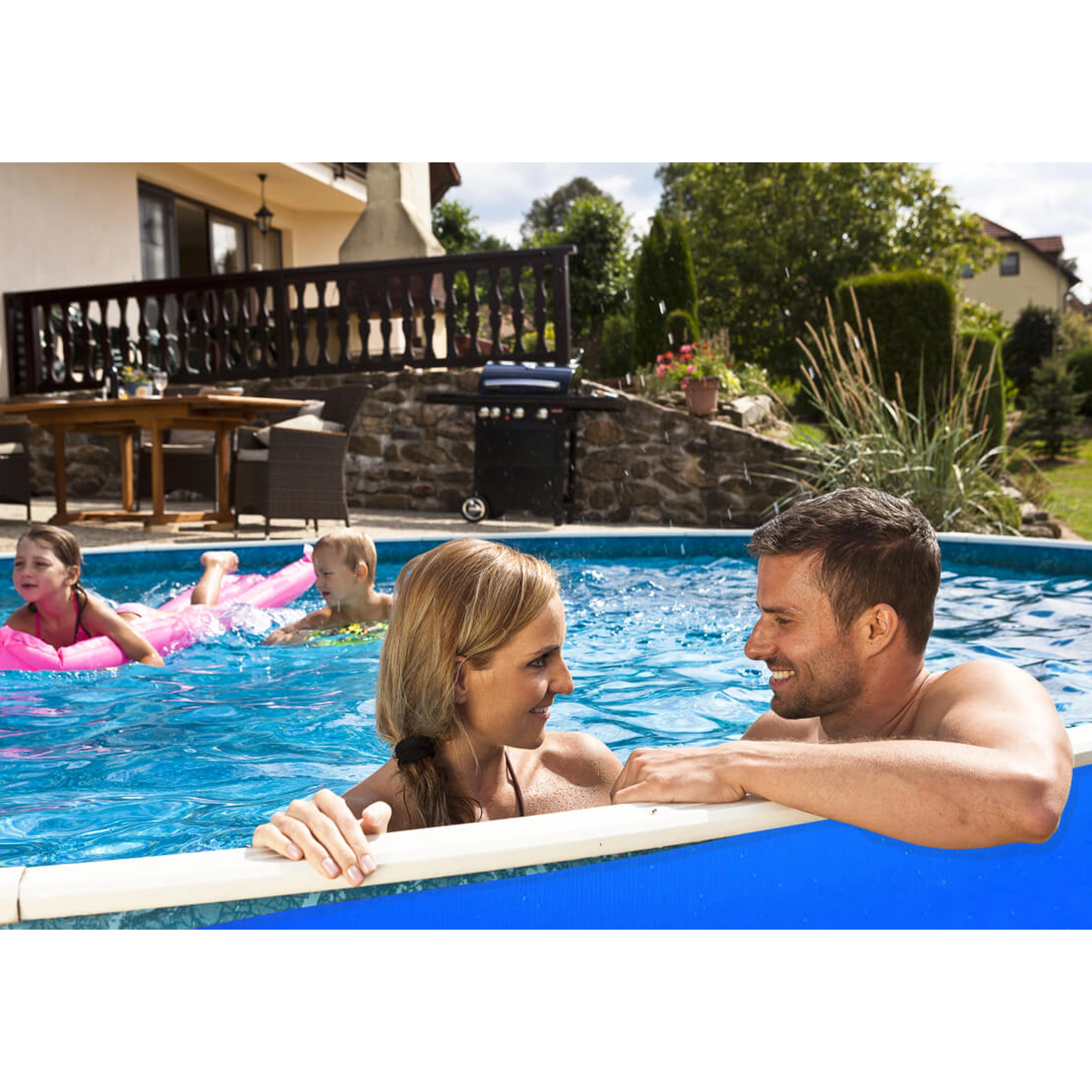 Možnosť zapusteniaV prípade dodržania odborných pokynov na úpravu pozemku je možné bazén čiastočne, alebo úplne zapustiť do zeme. Vznikne tak dojem upravenej záhrady bez narušenia terénu |