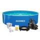 K bazénu je dodávaná piesková filtrácia ProStar Profi 6 s výkonom 6 m3/hod., vrátane hadíc, spojovacieho materiálu a priechodok stenou bazéna. Piesková filtrácia má 6-cestný ventil, prietok 6 m3/hod., nádobu na 33 kg piesku. Príkon filtrácie je 450W. Pre napojenie filtrácie je dodávaný skimmer Olympic, s napojením hadíc s priemerom 32 mm (5/4").