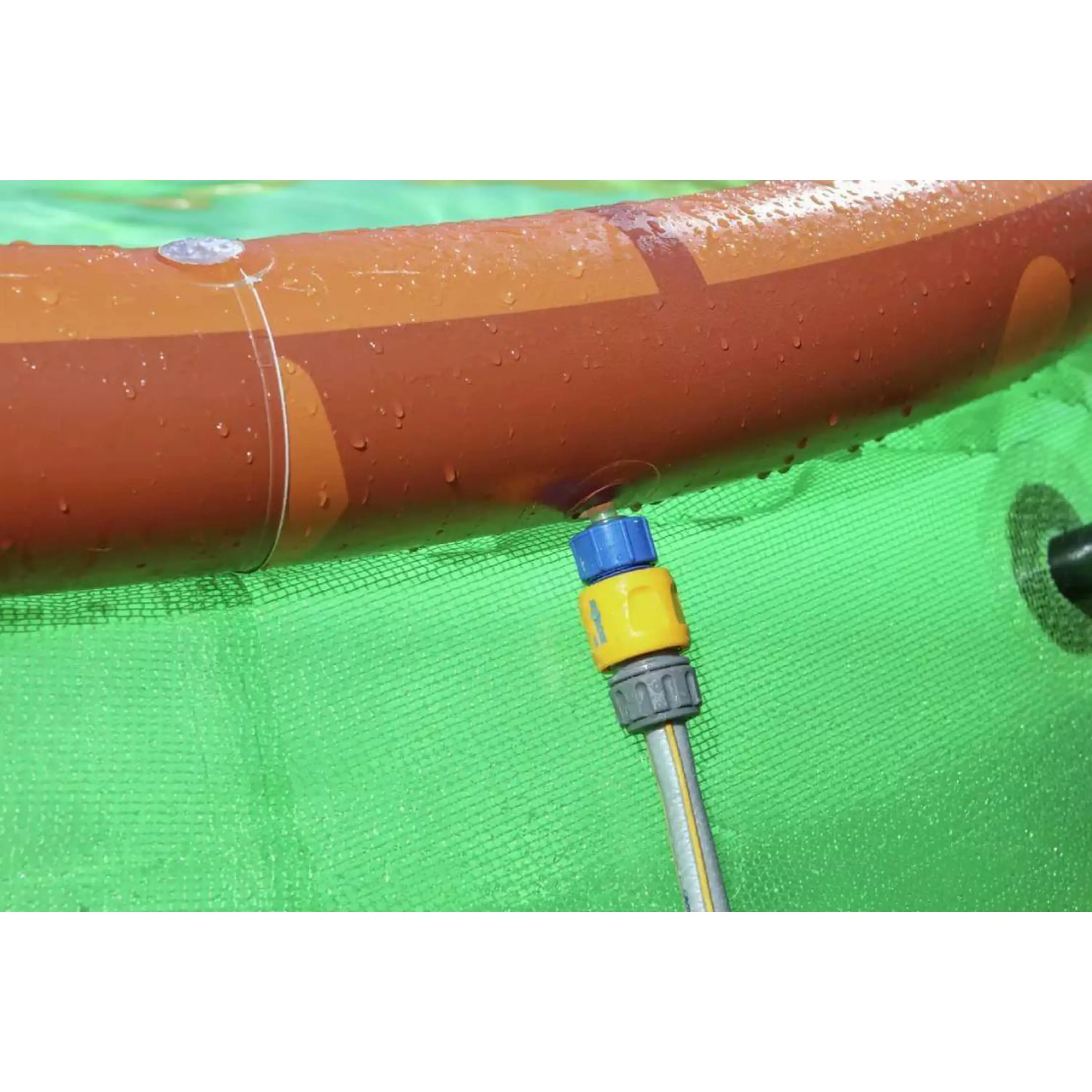 Bazén Tampa je možné postaviť bez stavebných úprav pozemku. Stačí len nafúknuť horný prstenec a začať napúšťať vodu. Stúpajúca vodná hladina sama postaví steny bazéna.