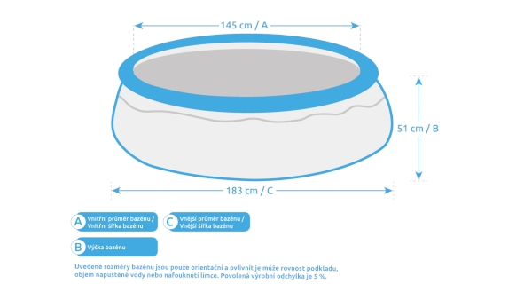 BezpečnosťVďaka absencii pevných prvkov a ostrých hrán je bazén vhodný aj pre menšie deti (samozrejme pod dohľadom rodičov). Nehrozí v ňom úder o konštrukciu alebo stenu. |