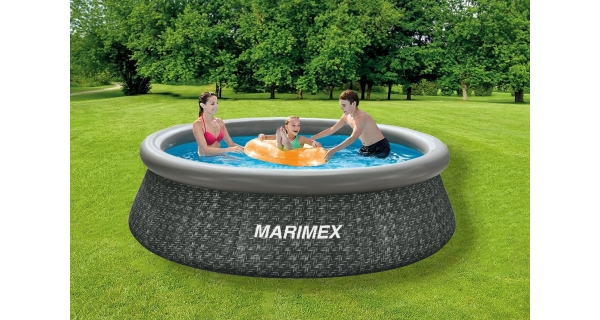 rýchle sprevádzkovanie. Stačí len pripraviť miesto na bazén, rozvinúť bazénovú podložku, bazén rozbaliť, nafúknuť horný goliet a začať púšťať vodu. Stúpajúca voda sama bazén postaví. Od vybalenia bazéna môžete do 10 minút napúšťať vodu. Bazén je nutné po škončení bazénovej sezóny vyčistiť, vypustiť a uložiť na suché miesto, kde nemrzne. Správnou údržbou predĺžite životnosť bazéna. Odporúčame bazén po kúpaní zakrývať krycou plachtou. Pre ľahké nafúknutie odporúčame zakúpiť