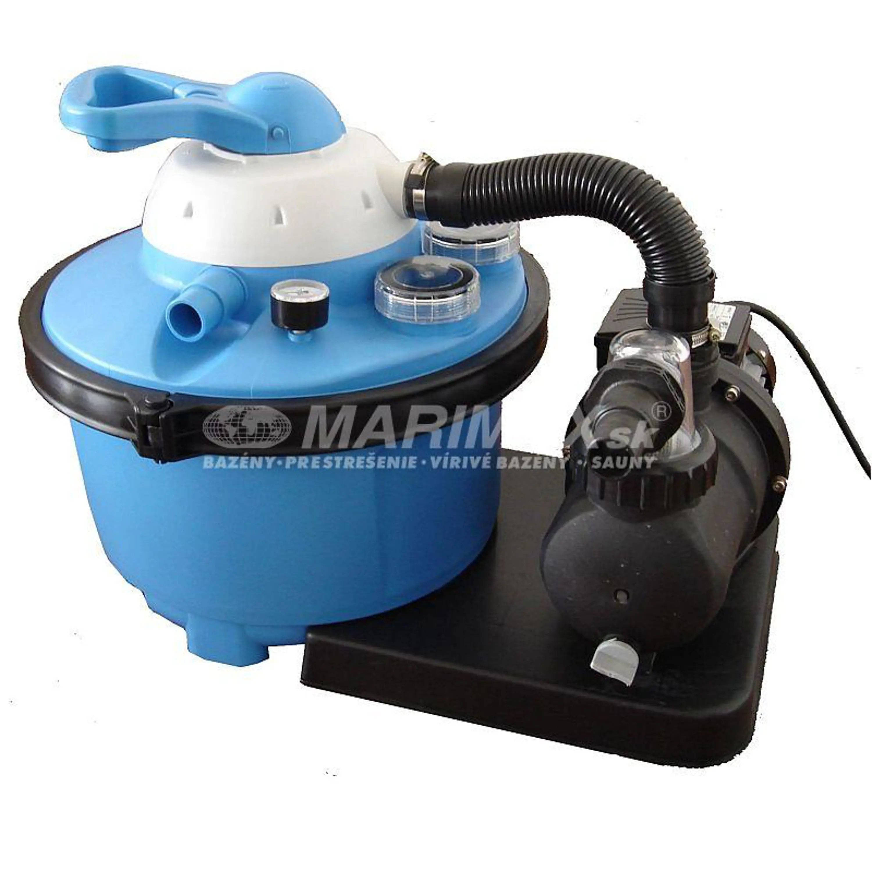 K bazénu je dodávaná piesková filtrácia s výkonom 4 m3/hod., vrátane hadíc, spojovacieho materiálu a prechodiek stenou bazéna. Pre napojenie filtrácie sú pripravené prechody stenou bazéna s priemerom 32 mm (5/4"). Štandarne sa k pieskovej filtrácií filtrčný piesok nedodáva, je treba objednať ho zvlášť.