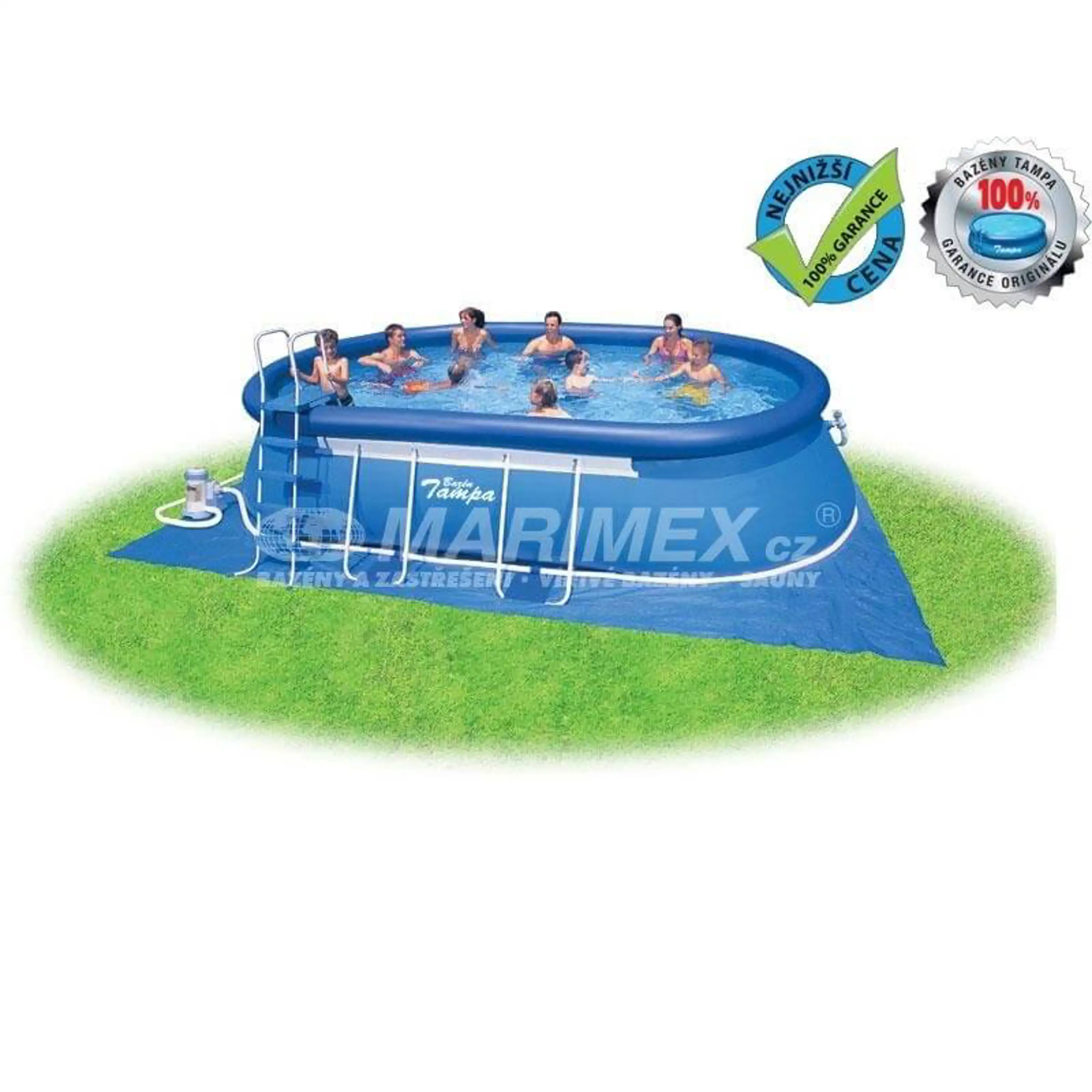 Bazén Tampa sa radí medzi napredávanejšie a najobľúbenejšie bazény v Slovenskej republike. Kúpanie vo vlastnom bazéne si môže dopriať naozaj každý. Prednosťou bazéna Tampa je nízka cena, ľahká údržba a rýchle sprevádzkovanie. Stačí iba pripraviť miesto na bazén, rozvinúť bezénovú podložku, bazén rozbaliť, nafúknuť horný golier a začať púšťať vodu. Stúpajúca voda sama bazén postaví. Od vybalenia bazéna môžete do 10 minút napúšťať vodu. Bazén je nutné po skončení bazénovej sezóny vyčistiť, vypustiť a uložiť na suché, nemrznúce miesto. Správnou údržbou predĺžite životnosť bazéna. Pre ľahké nafúkanie odporúčame zakúpiť ručnú či elektrickú pumpu.