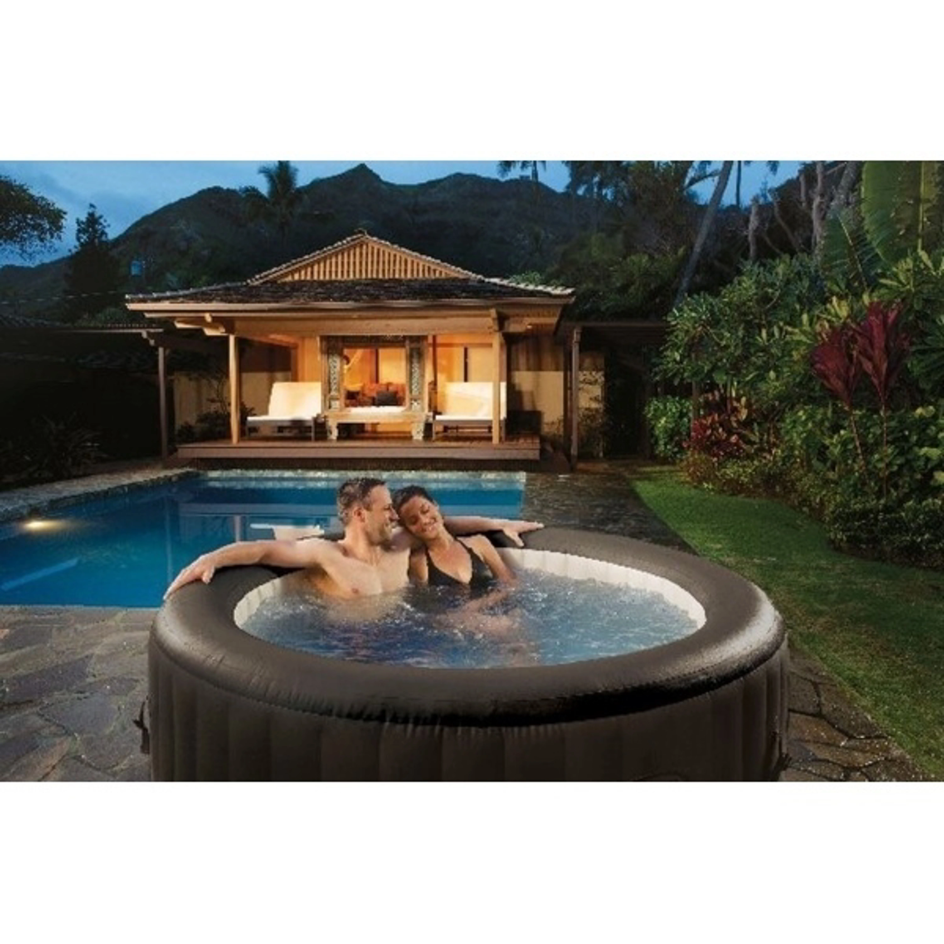 Nafukovacia vírivka PureSpa Jet je nástupcom veľmi obľúbeného modelu Relax Pool, ktorý vychádza z revolučnej konštrukcie Fiber-Tech. Materiál je vyrobený z tisícov veľmi odolných polyesterových vlákien. Vírivka PureSpa ponúka dokonalý komfort a relaxáciu porovnateľné so skutočnými kúpeľmi. Umožňuje zažiť veľa zábavy s rodinou i priateľmi. Stačí stlačiť jediné tlačidlo a štyri trysky ponúknu jedinečný zážitok. Integrovaný vykurovací systém umožňuje reguláciu teploty vody presne podľa momentálnej nálady. PureSpa je určený maximálne pre štyri osoby.