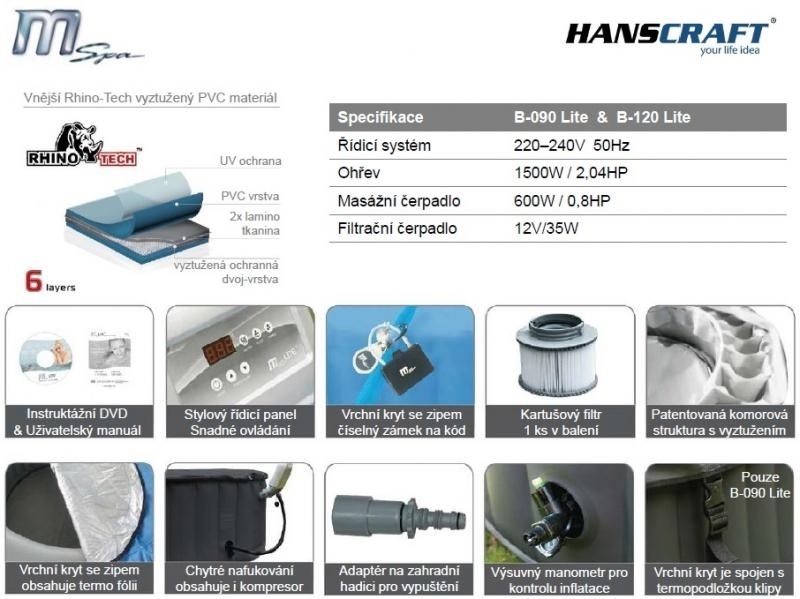 - pokročilý LITE ovládací panel ovládateľný priamo z vnútra vane MSpa