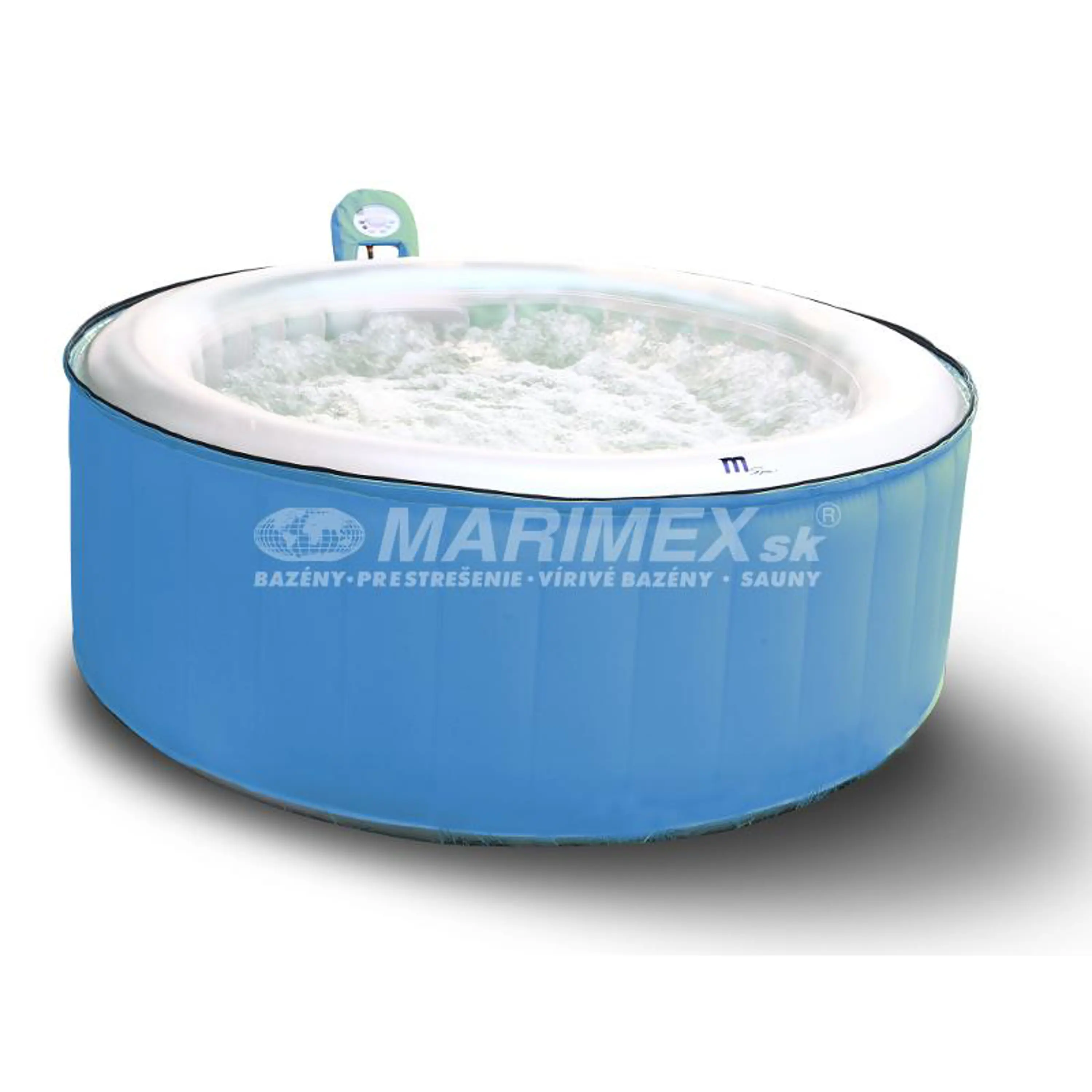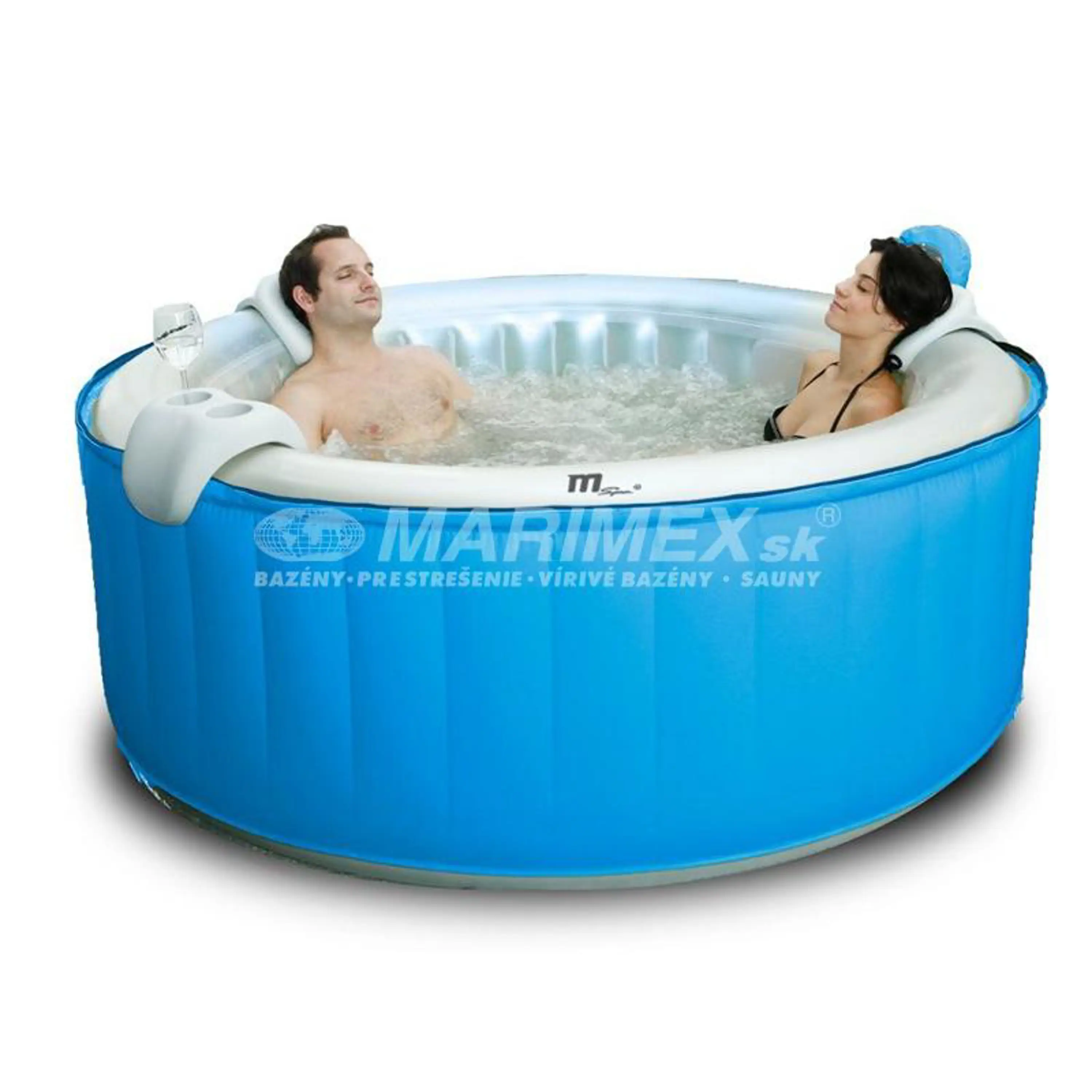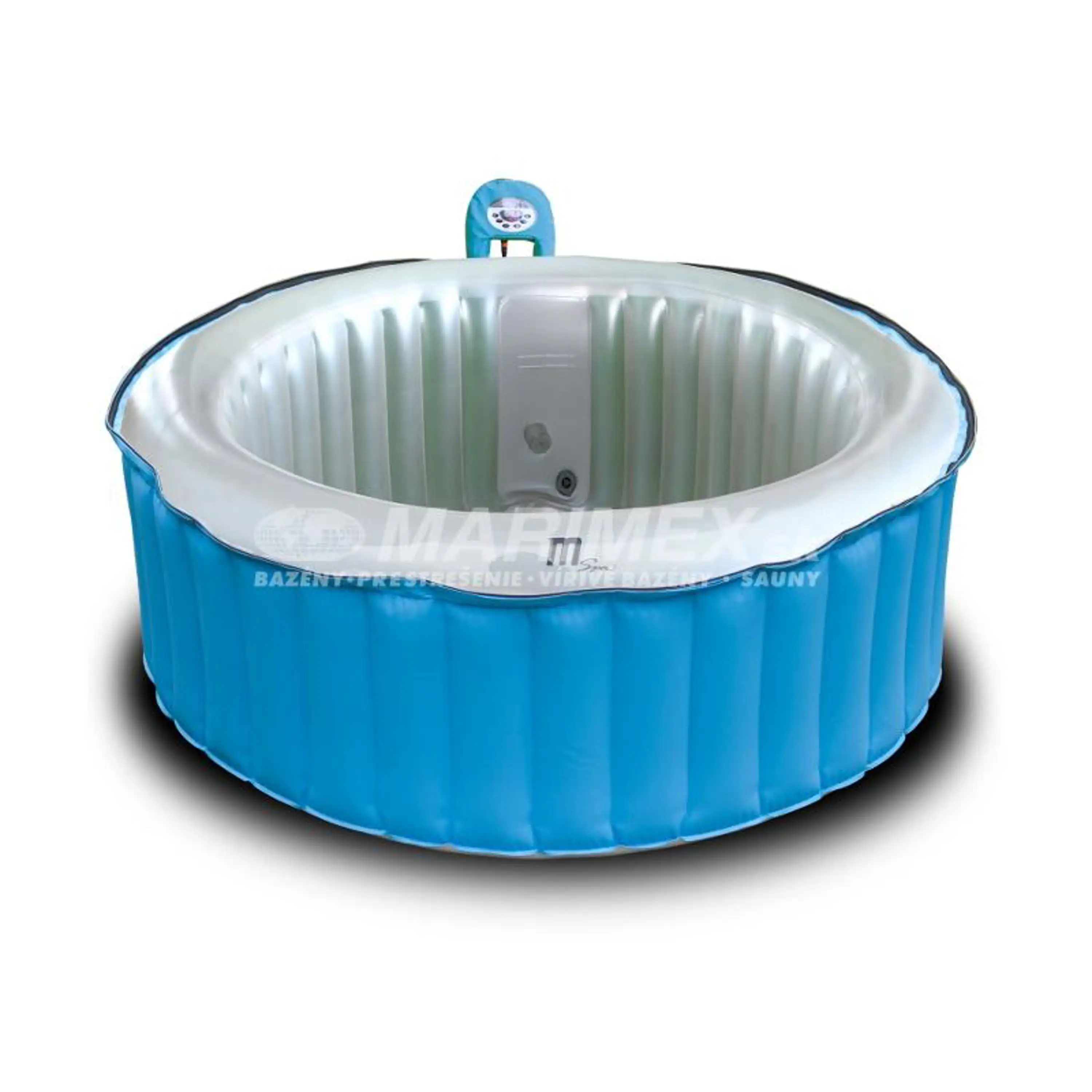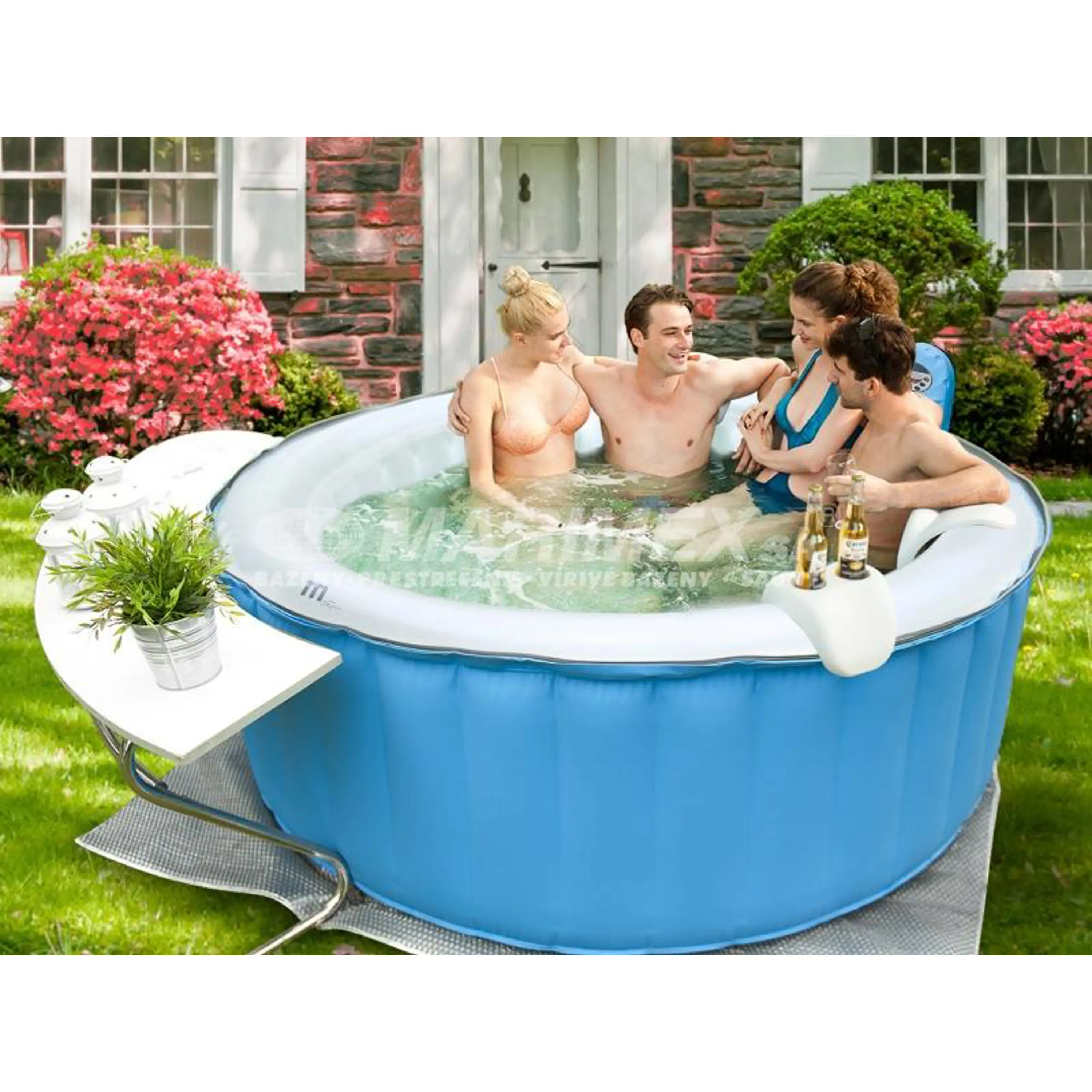 Mobilná Nafukovacia vírivka pre 4 dospelé osoby. Poskytne relaxáciu a vírivkové centrum priamo u Vás doma alebo na záhrade. Tento model nafukovacej vírivky je vybavený vzorom tropickej modrej farby a vnútro tejto je vybavený perlovo sfarbeným interiérom s osadením 115timi vzruchovými tryskami.