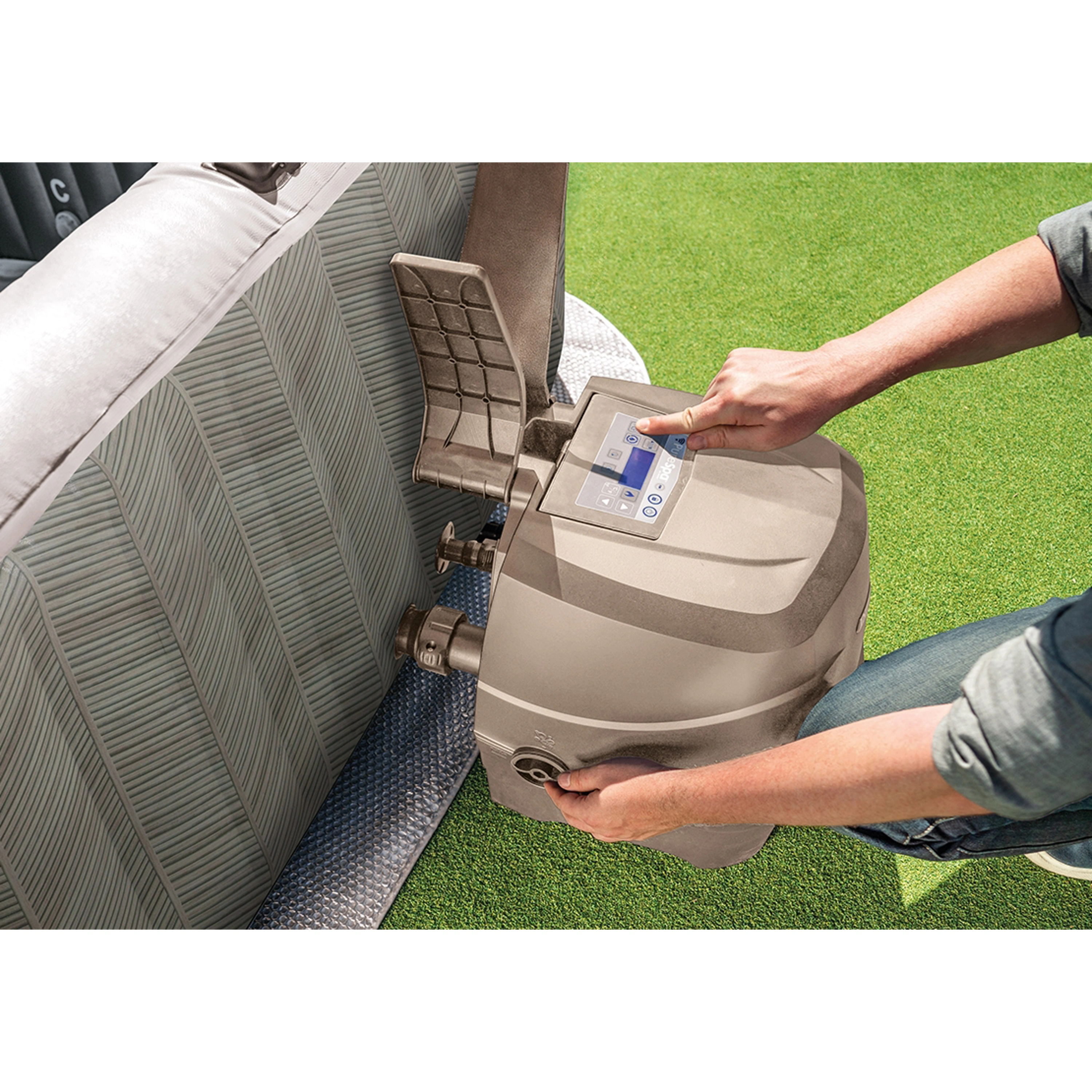 Stačí nájsť rovné podložie, nafúknuť vírivku elektrickou pumpou a napustiť vodu. Montáž vírivky zvládnete do desiatich minút.