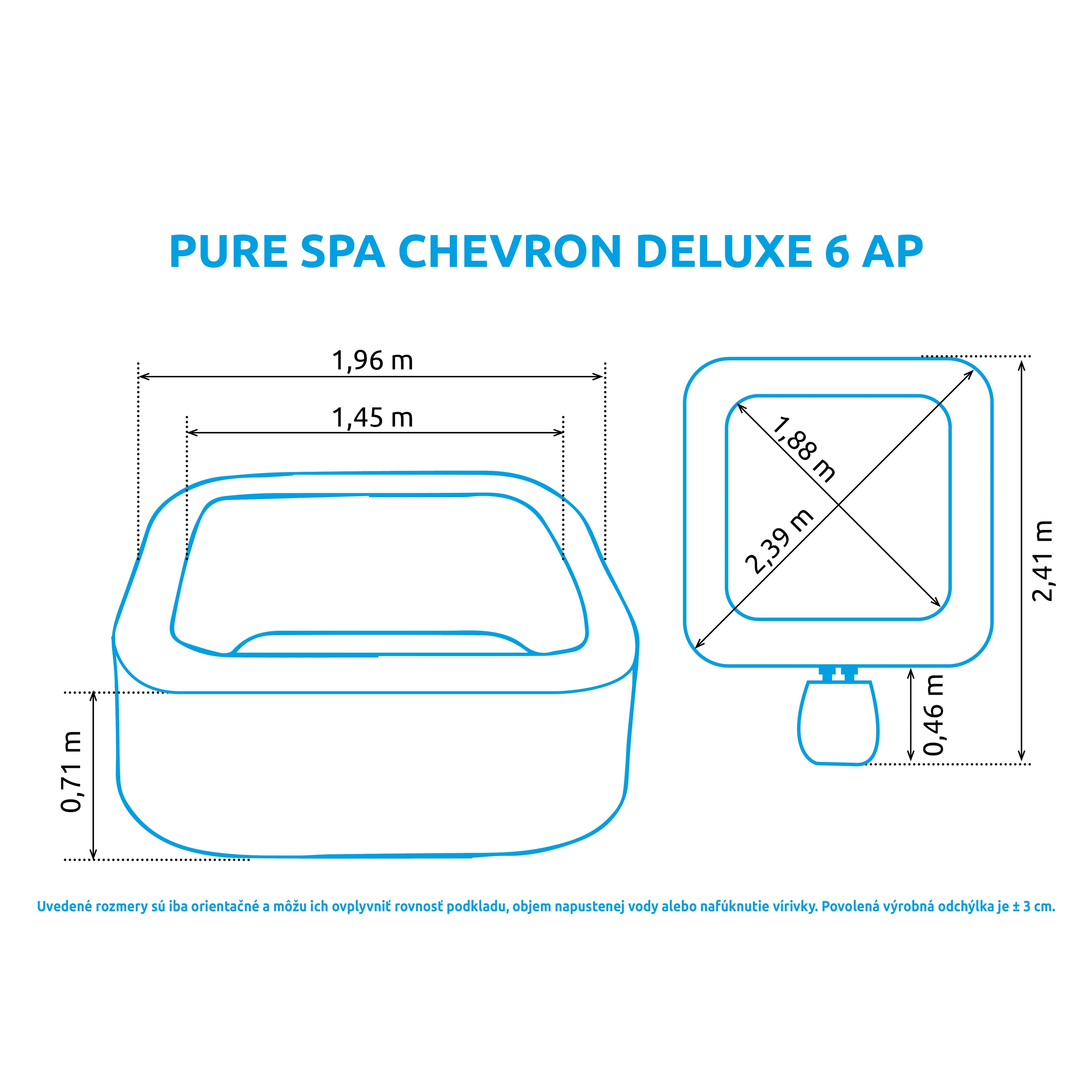 - Vonkajší priemer: 196 cm (po naplnení vodou, tolerancia ± 5%)