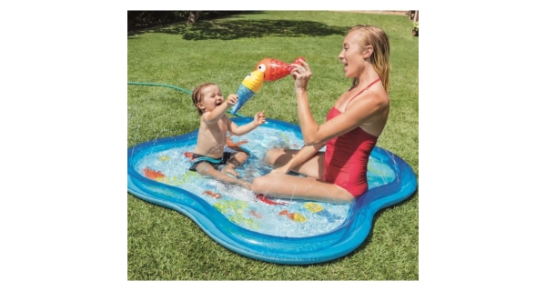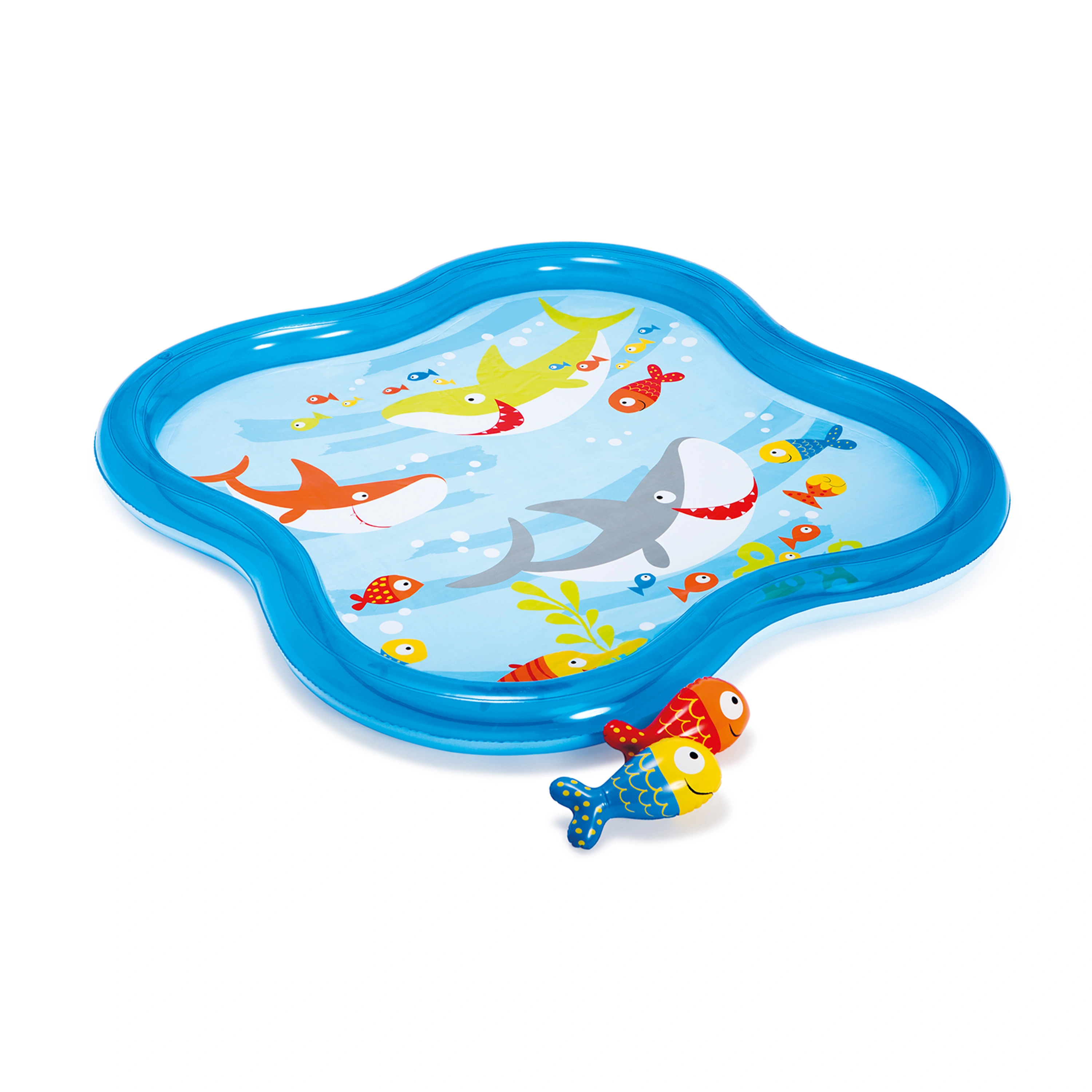 Nafukovacie detské ihrisko so zabudovanými vodotryskami po obvode ihriska. Zábavné obrázky rybičiek spríjemnia vašim deťom pobyt vo vode. Ihrisko je jednoducho pripojitelné k záhradnej hadici.