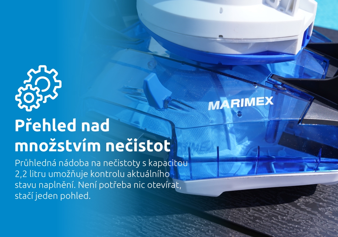 Priehľadná nádoba na nečistoty s kapacitou 2,2 litra poskytuje okamžitý prehľad o jej naplnení bez nutnosti otvárania. Automatický senzor vody zaisťuje, že sa motor zapne iba pri ponorení vysávača do vody, čo šetrí energiu aj životnosť zariadenia. Tento šikovný systém minimalizuje zbytočnú spotrebu a optimalizuje výkon.