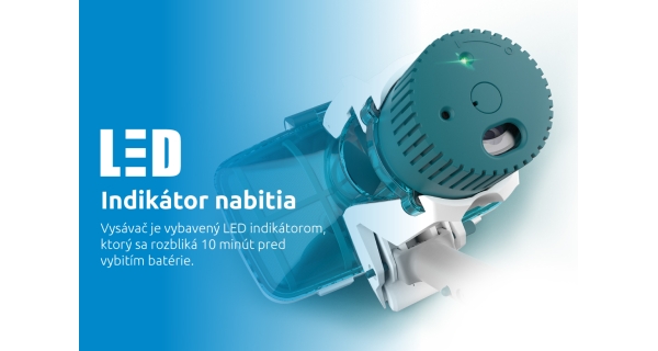LED indikátor upozorní na nízku kapacitu batérie. Bezpečnostný mechanizmus dokáže zastaviť čepele, pokiaľ dôjde k upchatiu vysávača, čo zaisťuje bezpečnú a bezproblémovú prevádzku.