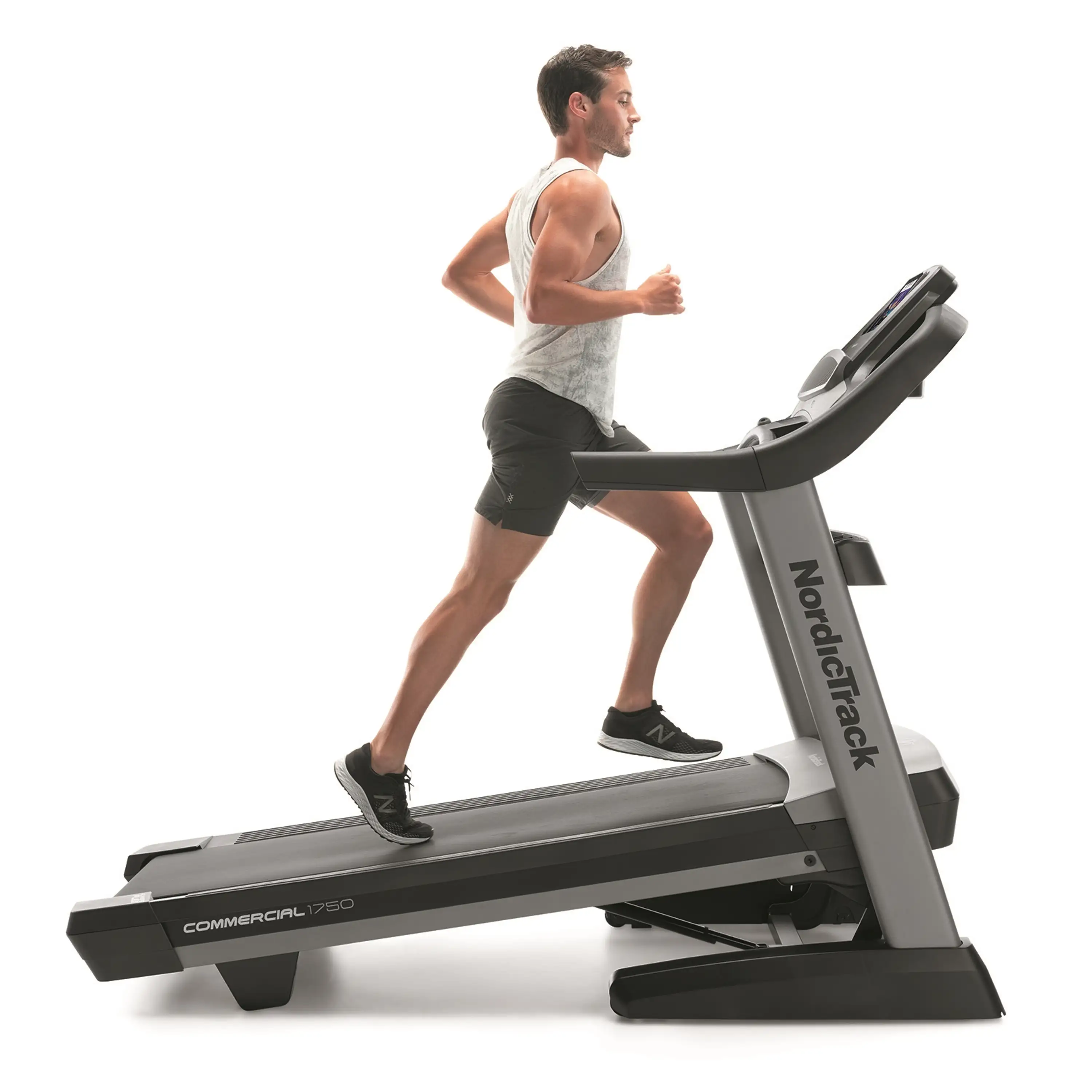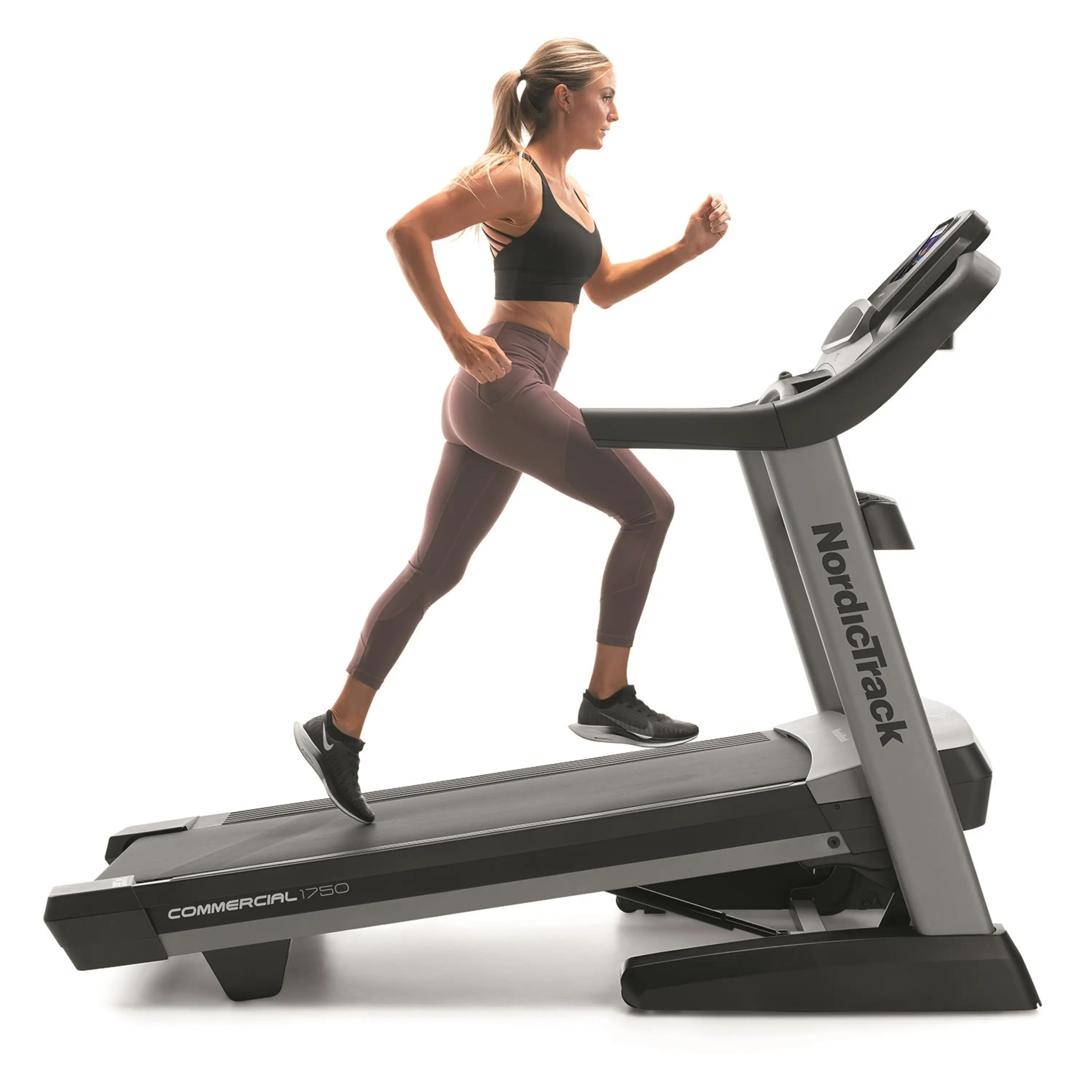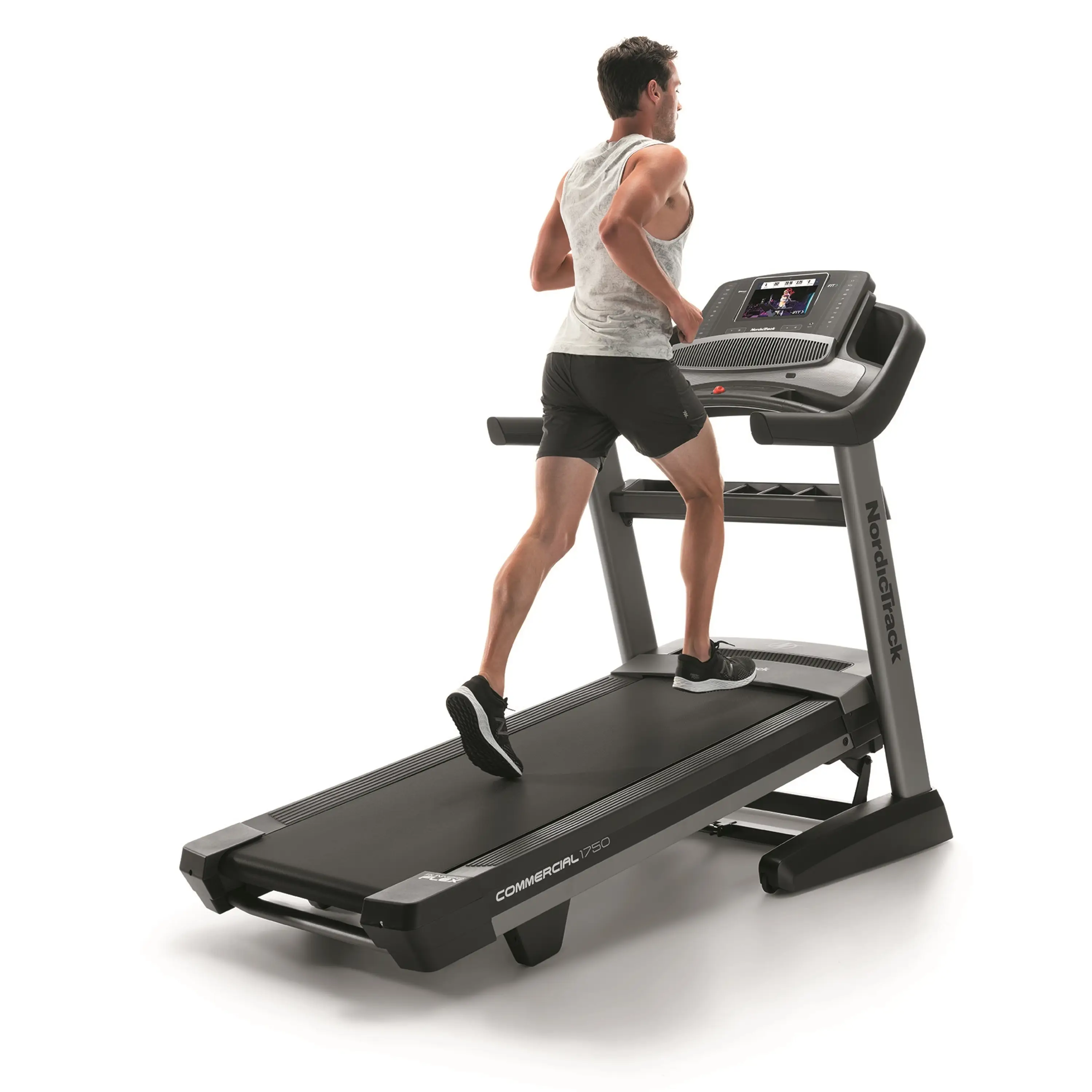 Svetovo preslávený výrobca veľmi kvalitných výrobkov NORDICTRACK prichádza s úplne novým radom bežeckých pásov NORDICKTRACK Commercial 1750. Príjemne tichý motor s trvalým výkonom 3,2 kW (4.25 HP) a elektronicky nastaviteľnou rýchlosťou v rozmedzí 0-22 km/h zaujme nejedného športovca i amatéra. Pre maximalizáciu účinnosti cvičenia je možné ľahko upraviť sklon bežeckého pásu a to v rozpätí od -3% až do 15%. Masívny rám s nosnosťou až 135 kg, zaisťuje dlhodobé a bezproblémové fungovanie trenažéra aj v prípade každodennej záťaže. Bežecká plocha s protišmykovým povrchom s rozmermi 55 x 152 cm poskytuje nevyhnutnú univerzálnosť, vďaka čomu je stroj vhodný pre všetky typy postáv bez ohľadu na ich výšku. Patentovaný systém odpruženia „Runners Flex“ doplnený o 6 tlmičov, umožňuje individuálne nastavenie tvrdosti došľapu, čo zaručuje komfortný beh v každej situácii. Vzhľadom na perfektné odpruženie je maximálne šetrný nielen ku skeletu, ale najmä k toľkým namáhaným kĺbom.
