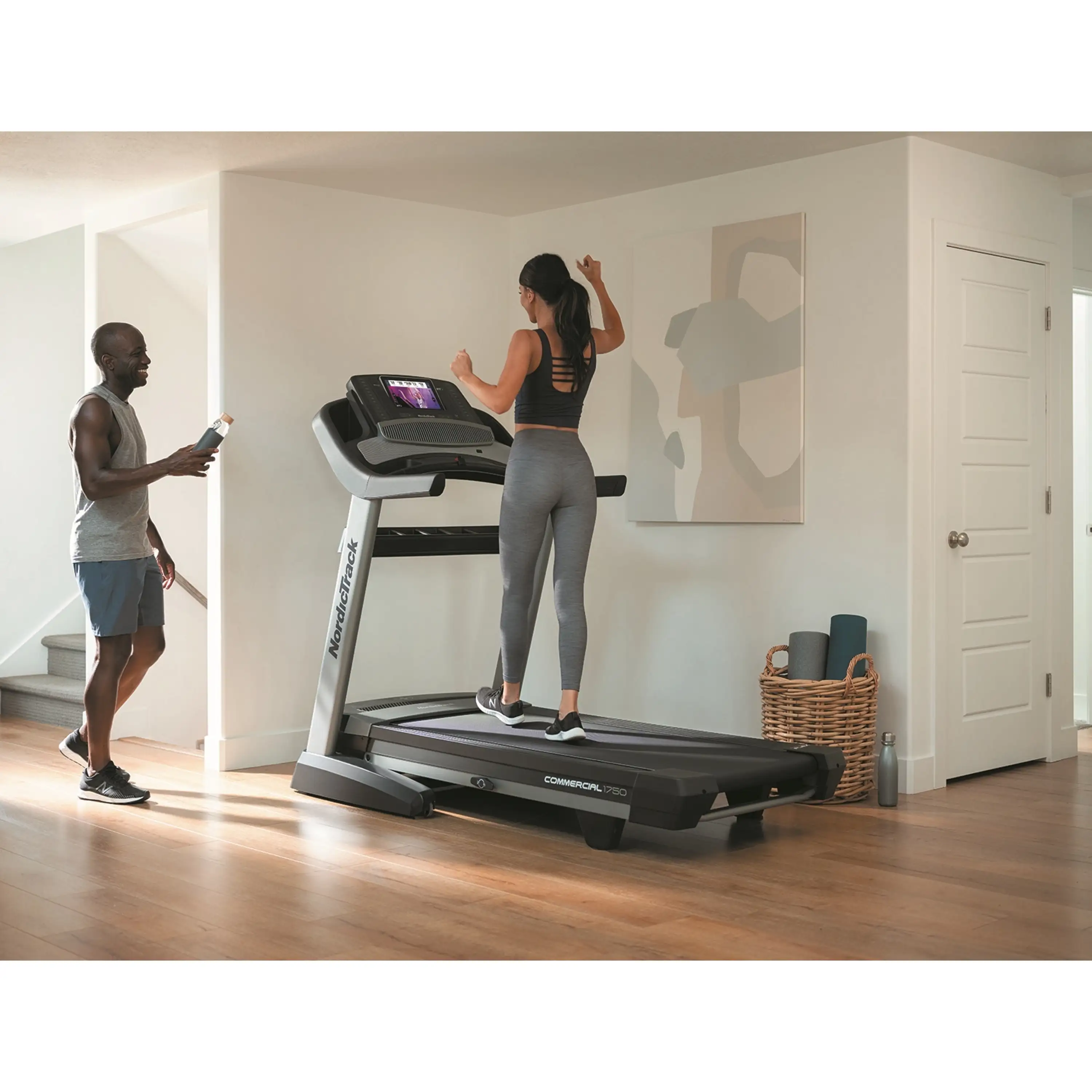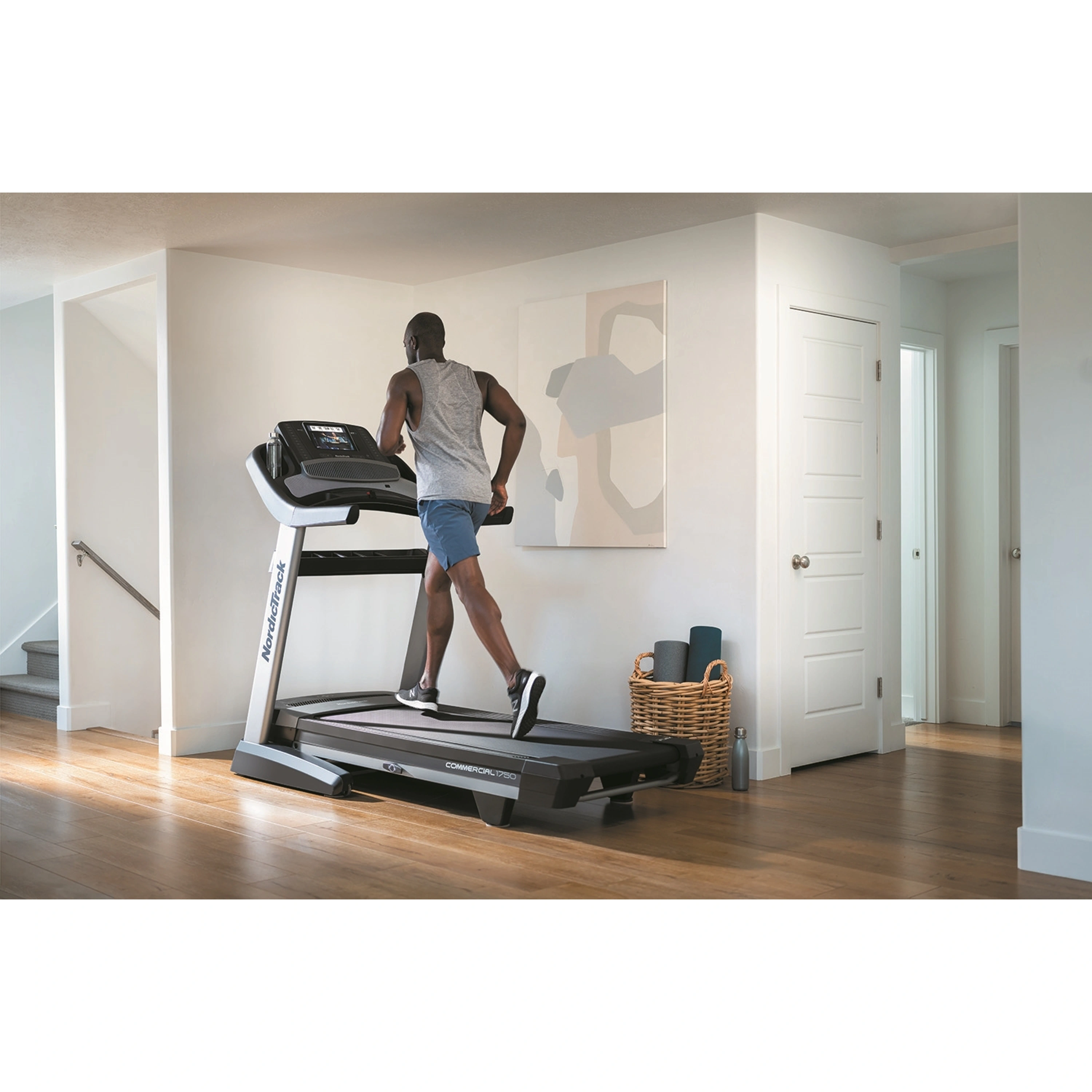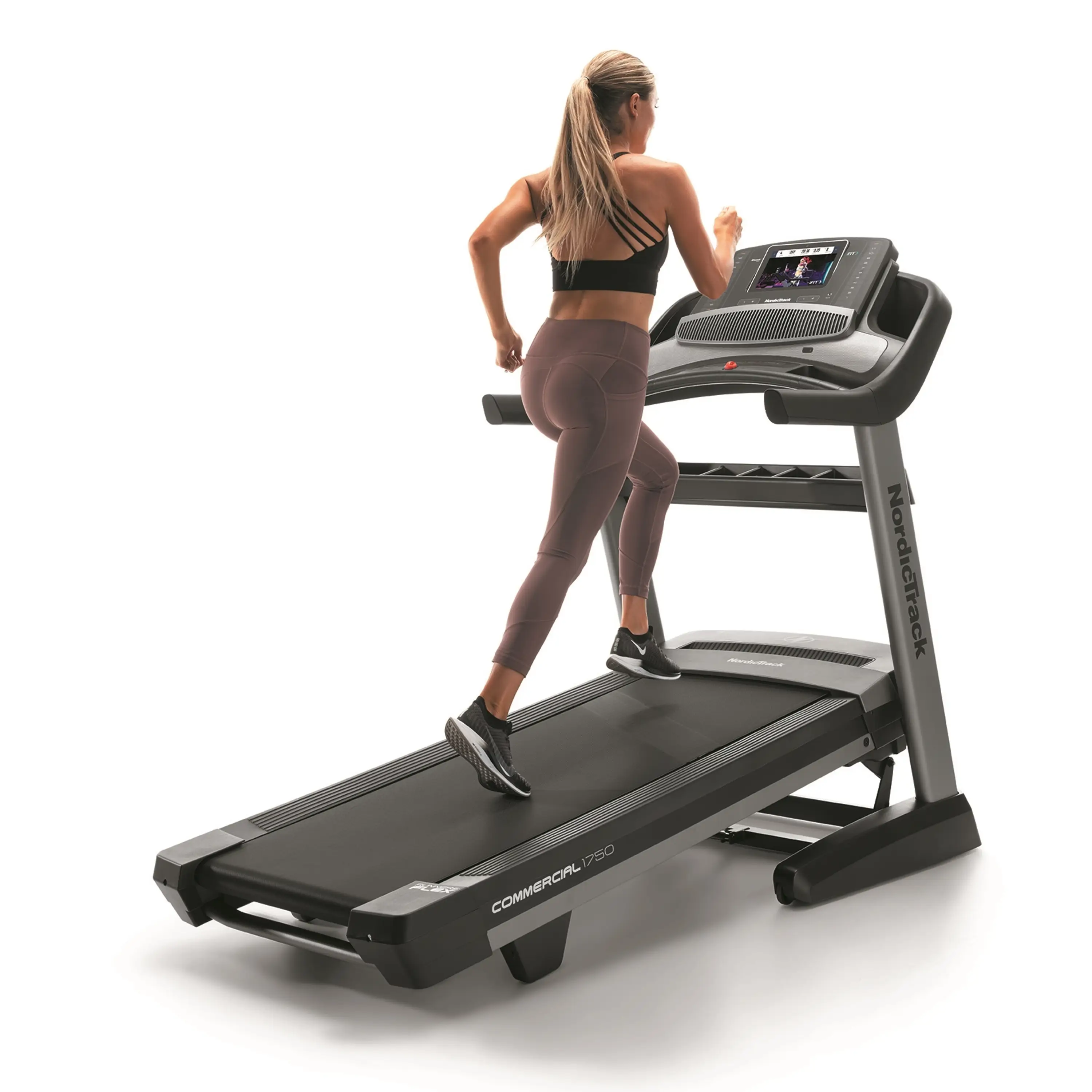 Svetovo preslávený výrobca veľmi kvalitných výrobkov NORDICTRACK prichádza s úplne novým radom bežeckých pásov NORDICKTRACK Commercial 1750. Príjemne tichý motor s trvalým výkonom 3,2 kW (4.25 HP) a elektronicky nastaviteľnou rýchlosťou v rozmedzí 0-22 km/h zaujme nejedného športovca i amatéra. Pre maximalizáciu účinnosti cvičenia je možné ľahko upraviť sklon bežeckého pásu a to v rozpätí od -3% až do 15%. Masívny rám s nosnosťou až 135 kg, zaisťuje dlhodobé a bezproblémové fungovanie trenažéra aj v prípade každodennej záťaže. Bežecká plocha s protišmykovým povrchom s rozmermi 55 x 152 cm poskytuje nevyhnutnú univerzálnosť, vďaka čomu je stroj vhodný pre všetky typy postáv bez ohľadu na ich výšku. Patentovaný systém odpruženia „Runners Flex“ doplnený o 6 tlmičov, umožňuje individuálne nastavenie tvrdosti došľapu, čo zaručuje komfortný beh v každej situácii. Vzhľadom na perfektné odpruženie je maximálne šetrný nielen ku skeletu, ale najmä k toľkým namáhaným kĺbom.