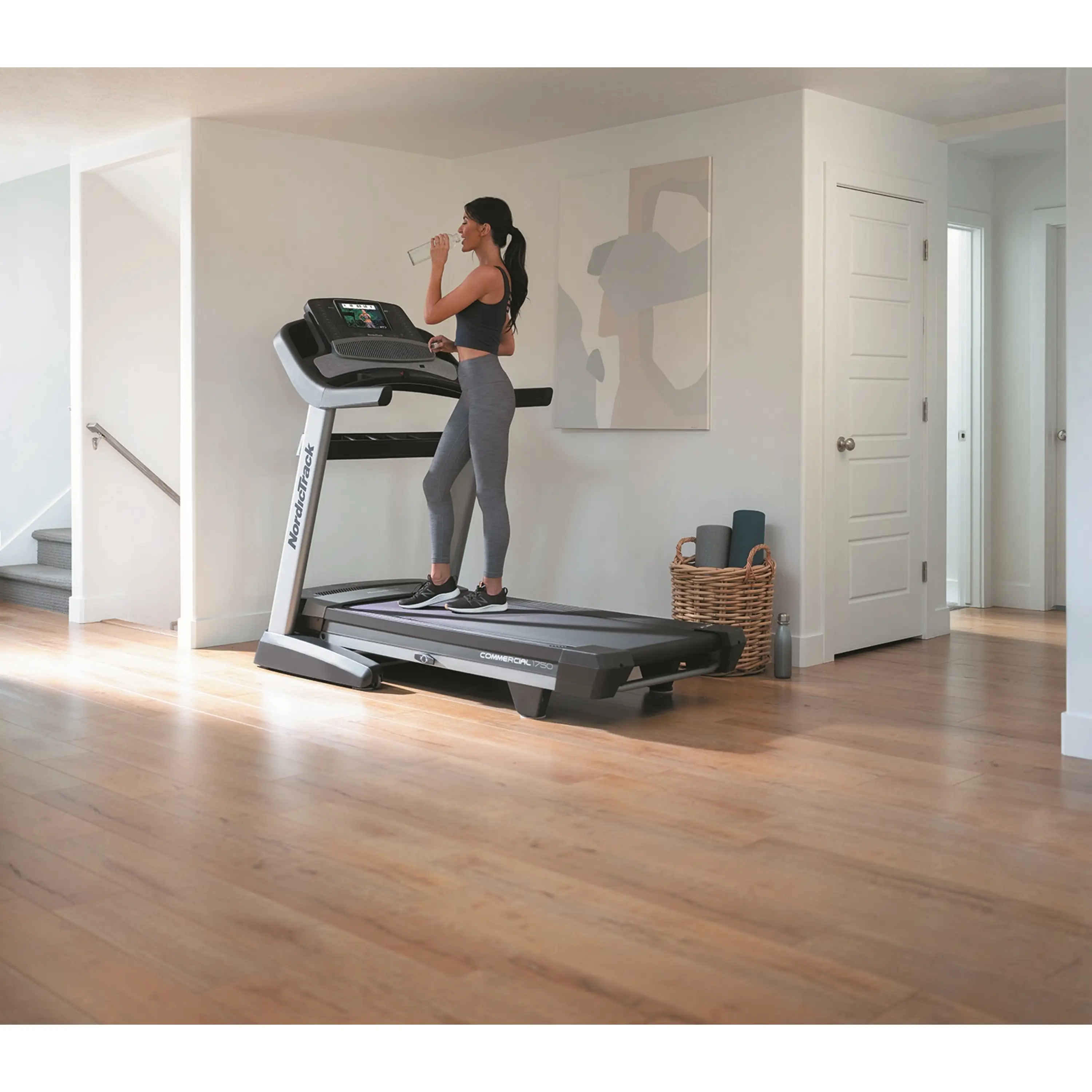 Tréning na bežeckom trenažéri NordicTrack Commercial 1750 budete mať pod kontrolou prostredníctvom tréningového počítača s 10“ grafickým dotykovým displejom, ktorý prehľadne zobrazuje všetky potrebné informácie ohľadom času , vzdialenosti, rýchlosti, sklonu a spotreby kalórií. Pre meranie tepovej frekvencie je možné potom stroj dovybaviť aj bluetooth-hrudným pásom. Programová ponuka disponuje prednastavenými programami a kompatibilnou aplikáciou iFit, ktorá je zabudovaná na >priamo v počítačovej konzole. S nenahraditeľnou aplikáciou iFit budete z pohodlia domova schopní cvičiť s trénerom, rozšíriť si tréningové plány cez systém Google MAPS alebo sa pri cvičení jednoducho pokochať rozprávkovými výhľadmi.