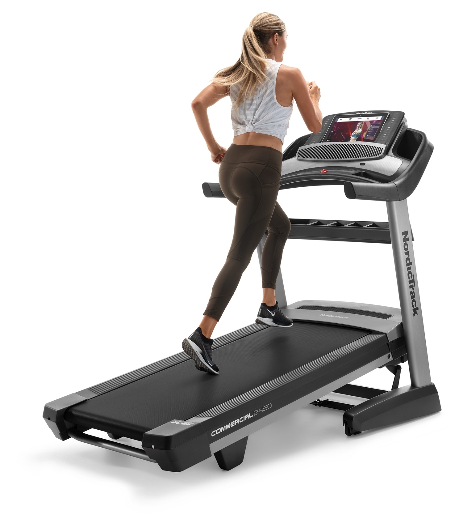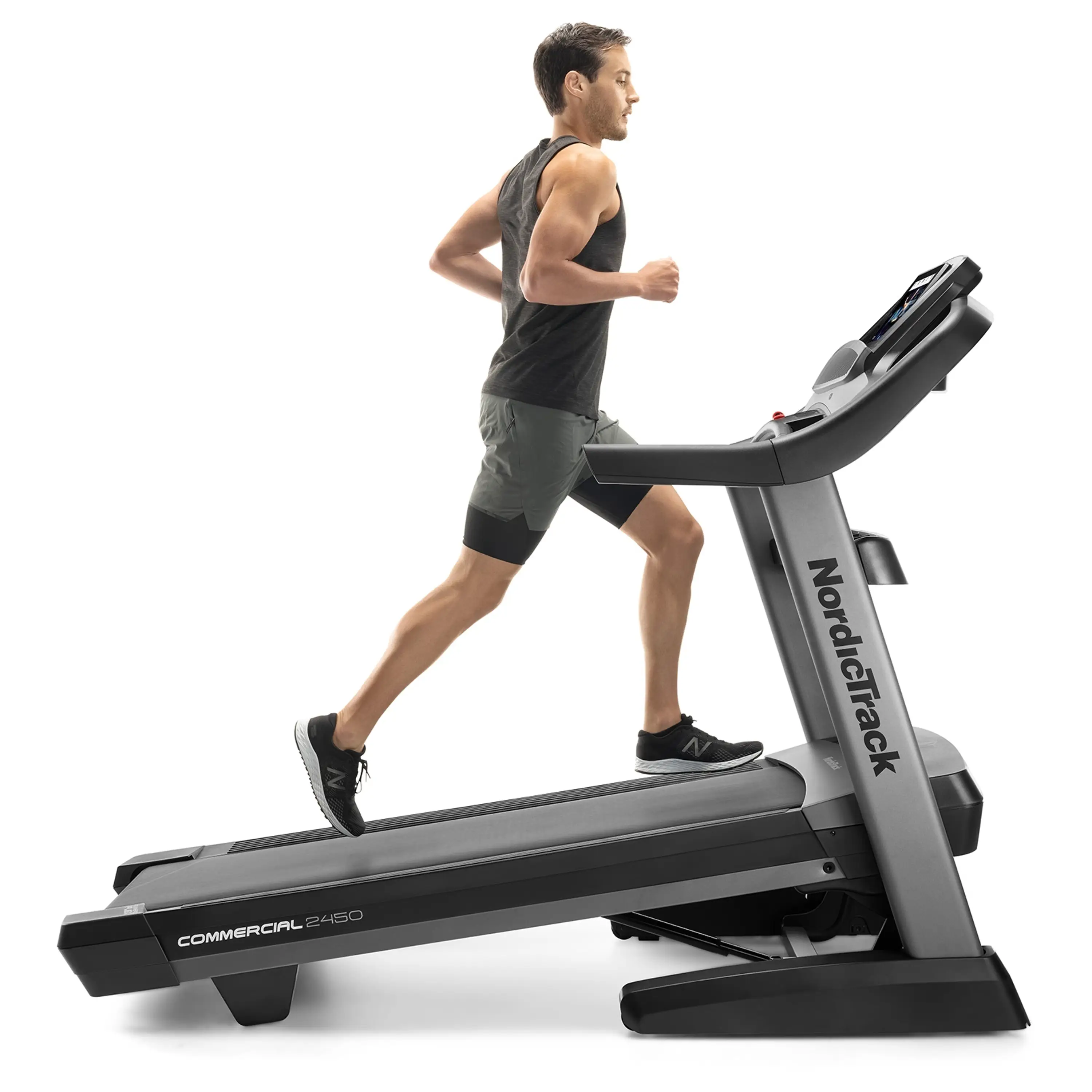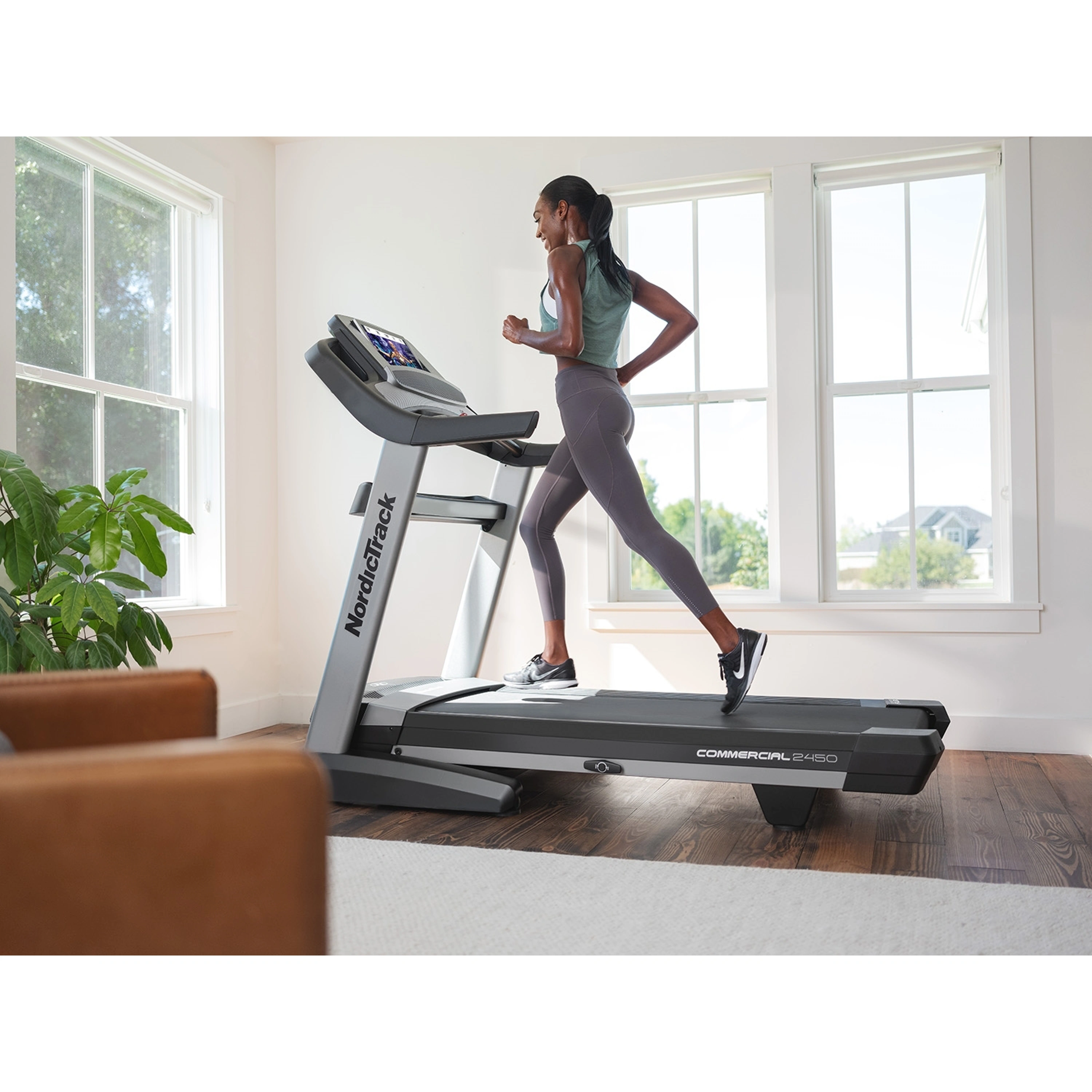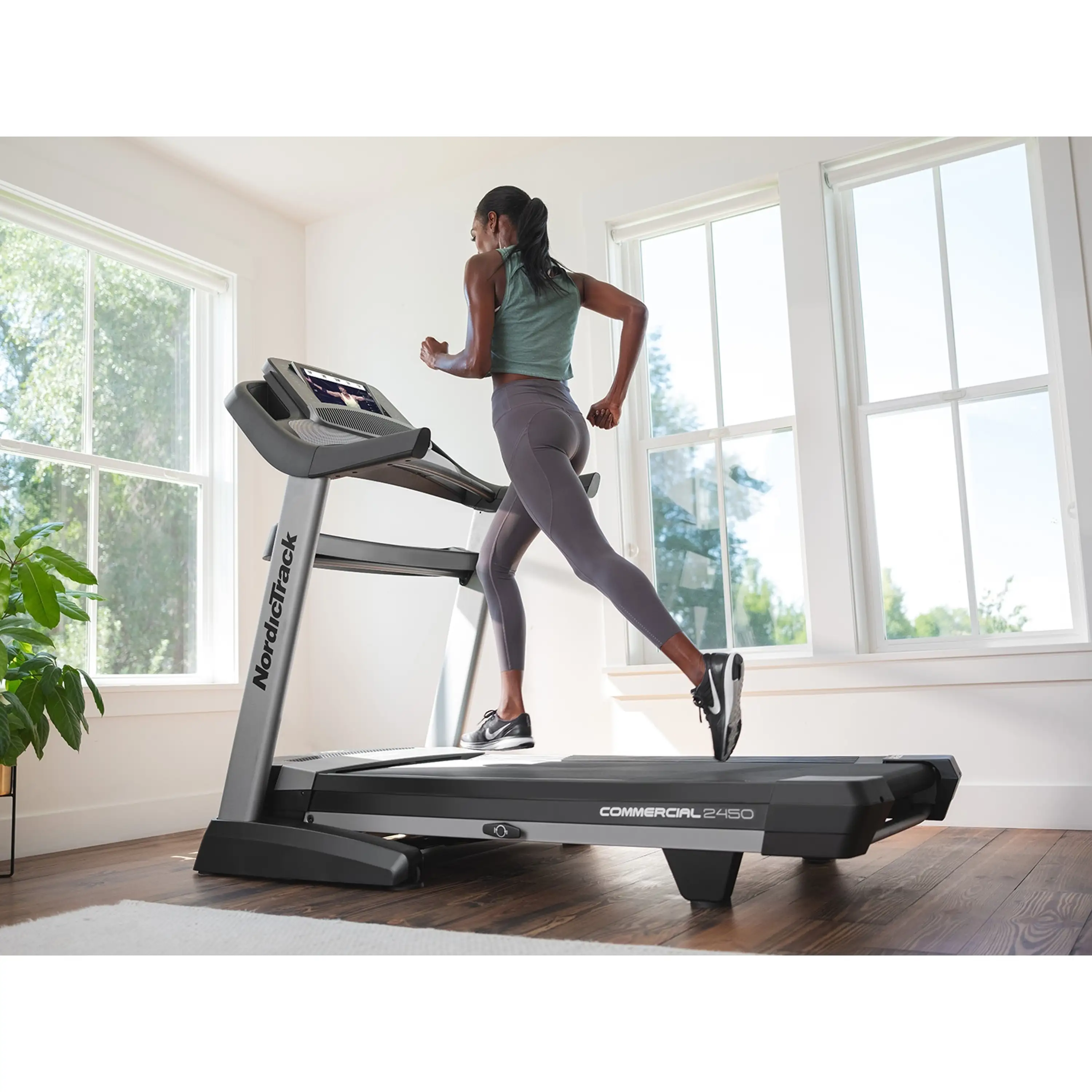 NordicTrack Commercial 2450 je rodinný stroj určený ako pre začiatočníkov, tak športovo zamerané osoby v domácom prostredí. Maximálna nosnosť používateľa bežeckého pásu je 135 kg. Je vybavený tichým motorom s trvalým výkonom 4,25 HP (konská sila). Poskytuje rozsah rýchlosti do 22 km/h a sklon bežeckej plochy je možné elektronicky regulovať v rozsahu od -3 % do 15 %. Robustná rámová konštrukcia a kvalitné spracovanie trenažéru zaručuje dlhú životnosť stroja aj pri pravidelnom používaní.