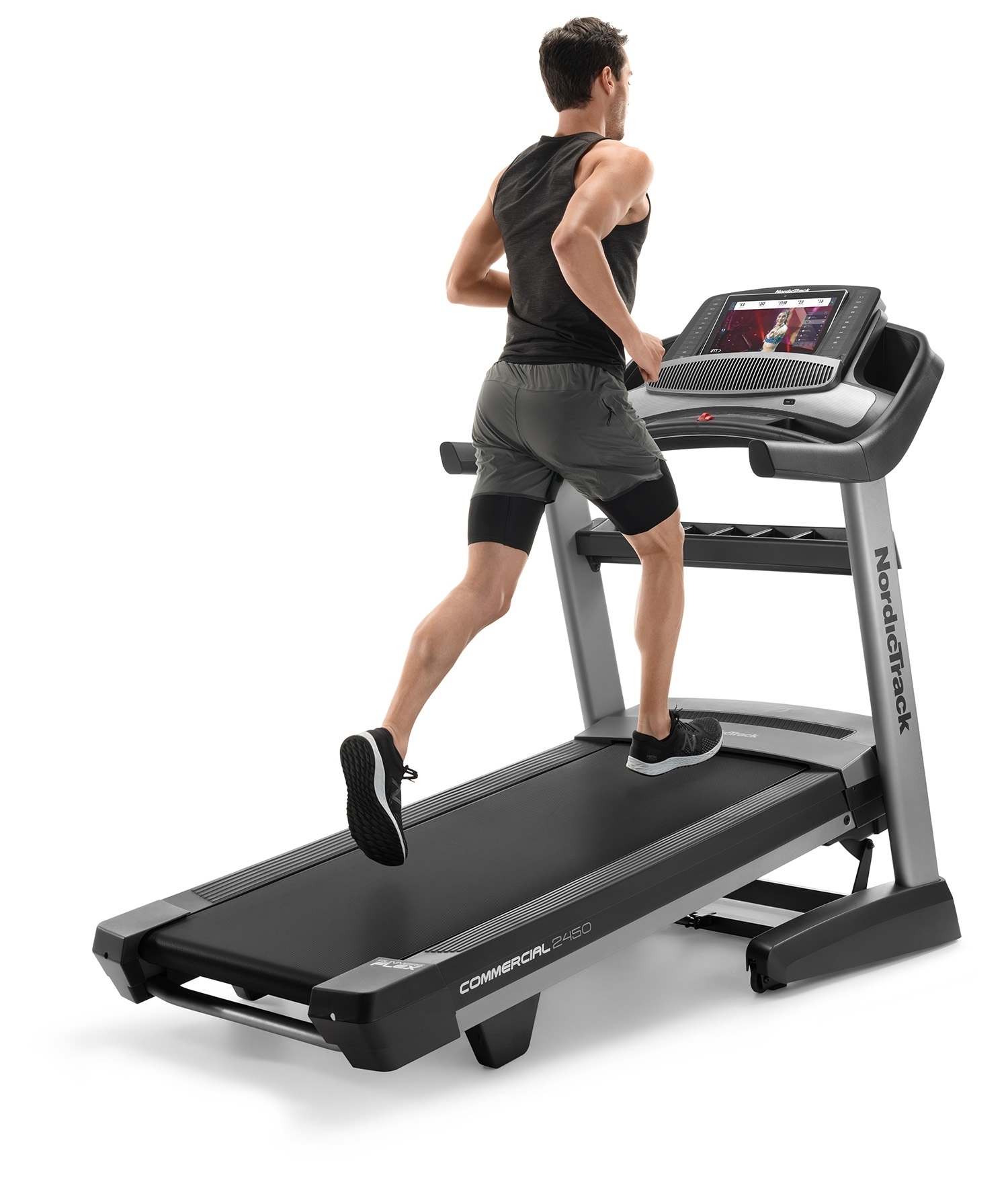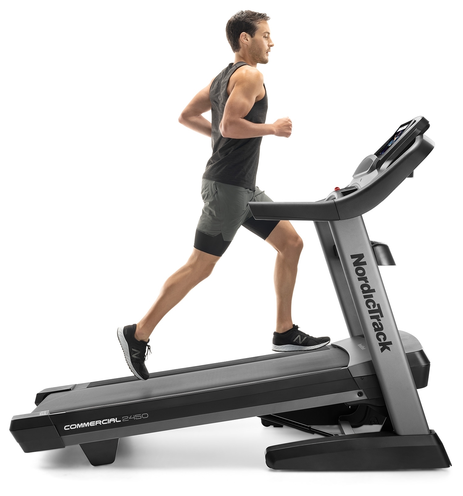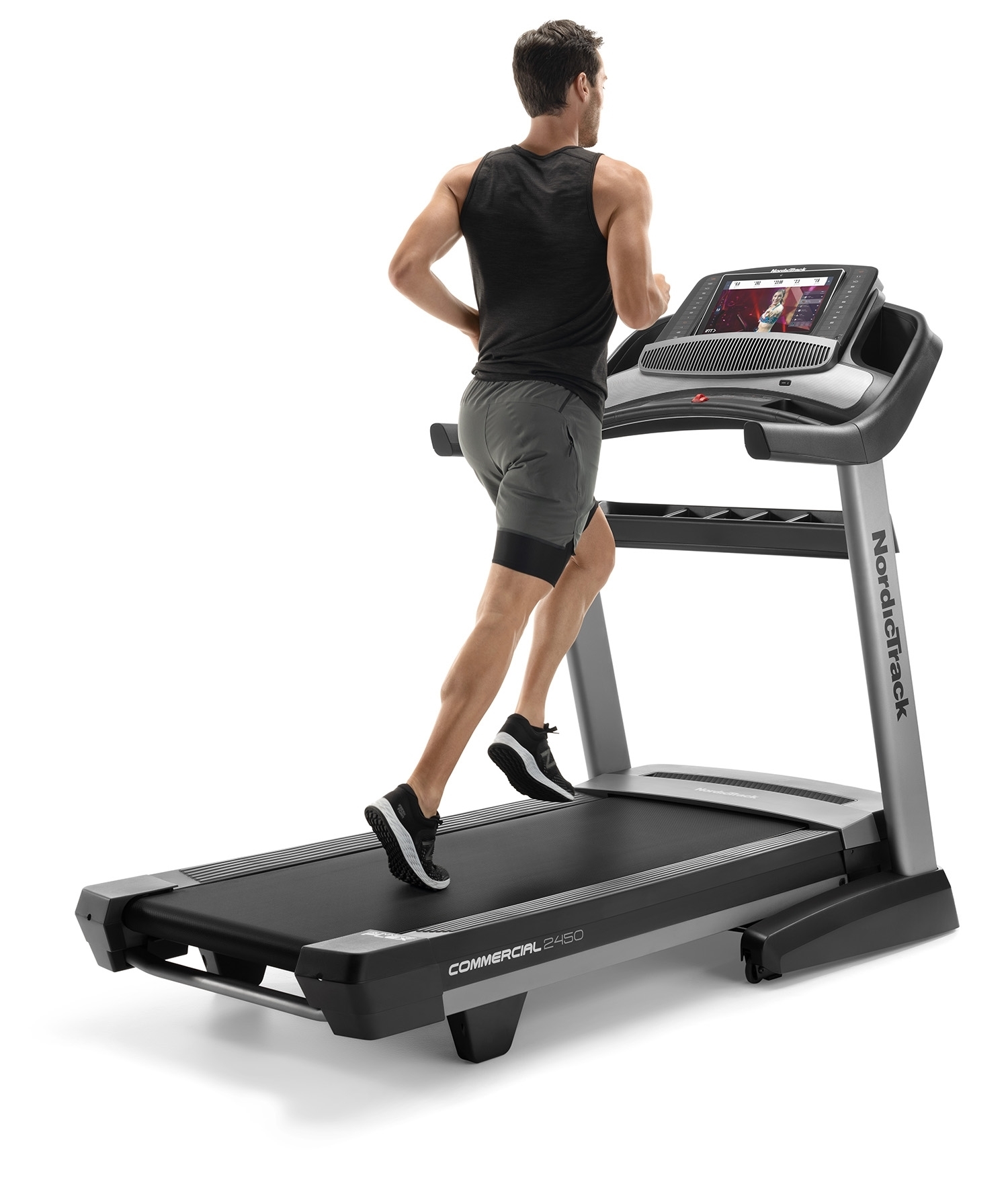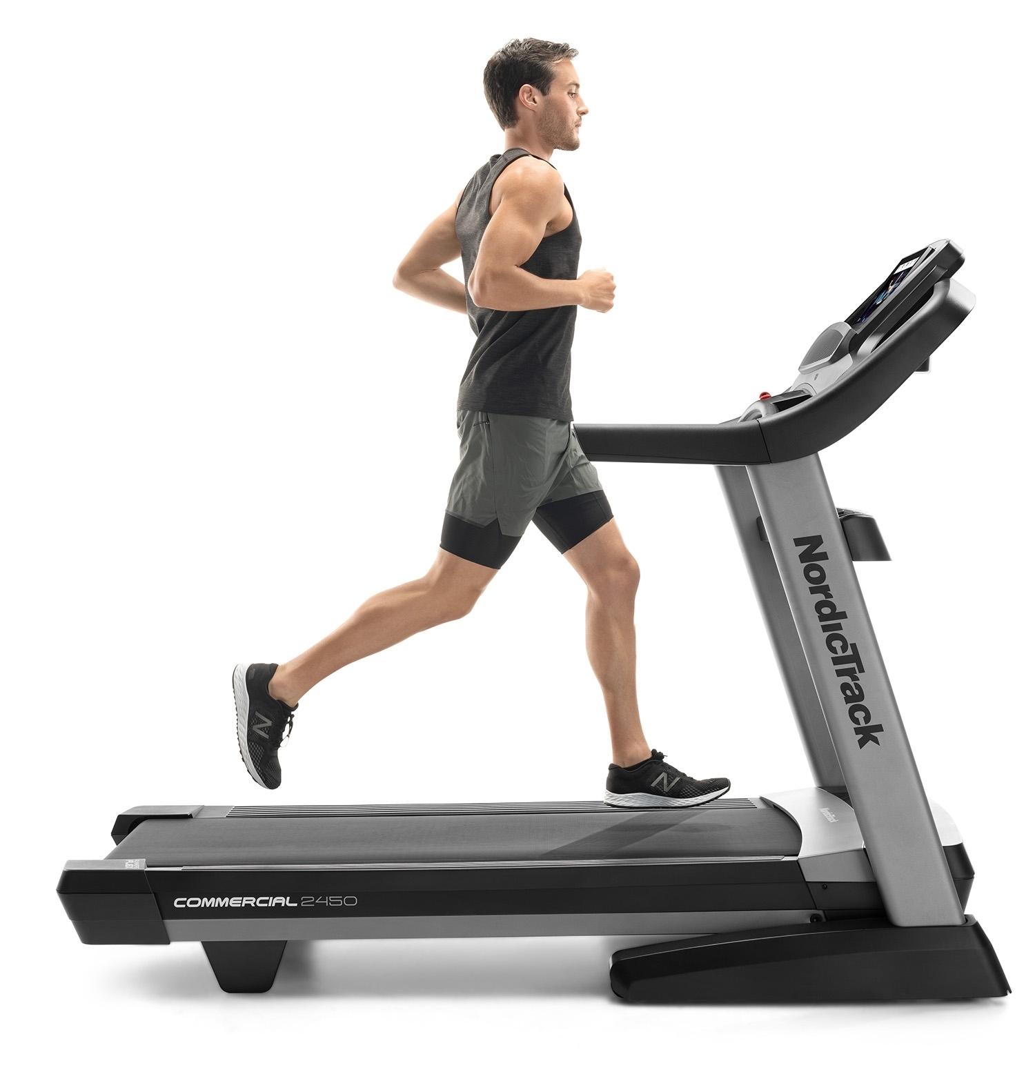 NordicTrack Commercial 2450 je rodinný stroj určený ako pre začiatočníkov, tak športovo zamerané osoby v domácom prostredí. Maximálna nosnosť používateľa bežeckého pásu je 135 kg. Je vybavený tichým motorom s trvalým výkonom 4,25 HP (konská sila). Poskytuje rozsah rýchlosti do 22 km/h a sklon bežeckej plochy je možné elektronicky regulovať v rozsahu od -3 % do 15 %. Robustná rámová konštrukcia a kvalitné spracovanie trenažéru zaručuje dlhú životnosť stroja aj pri pravidelnom používaní.