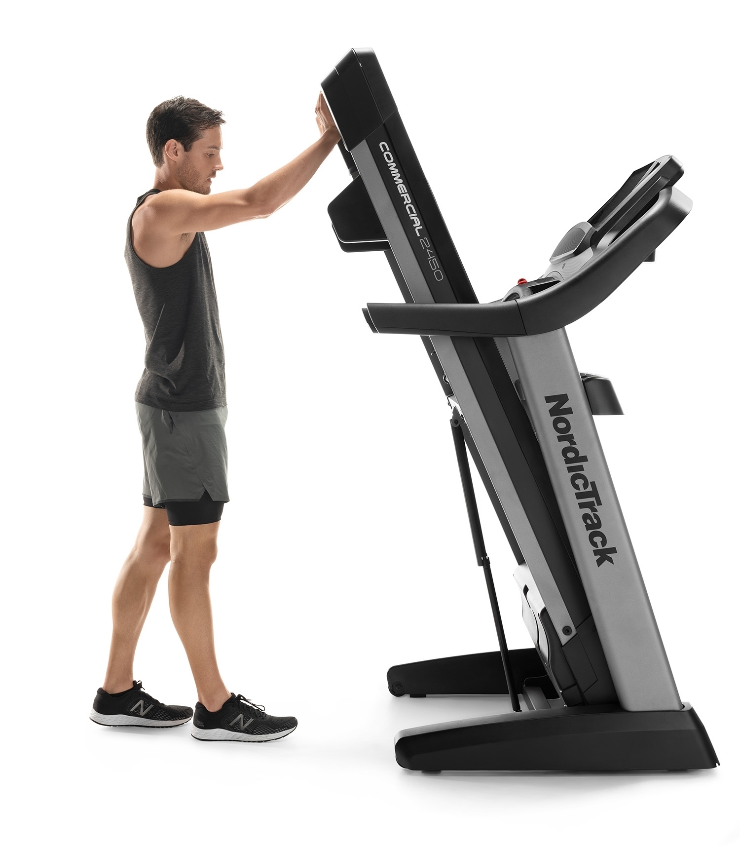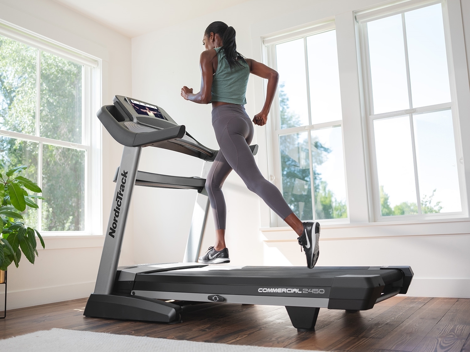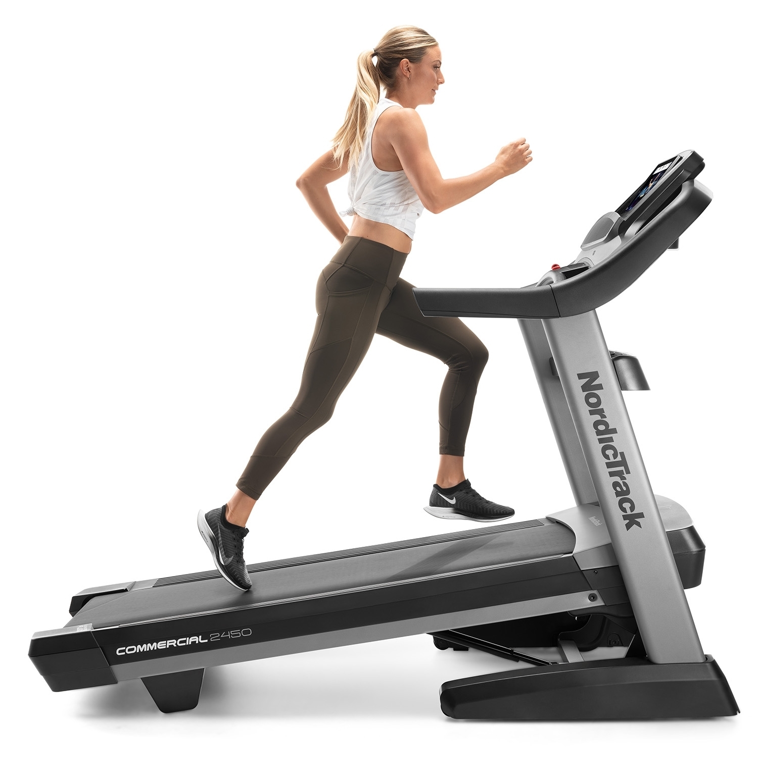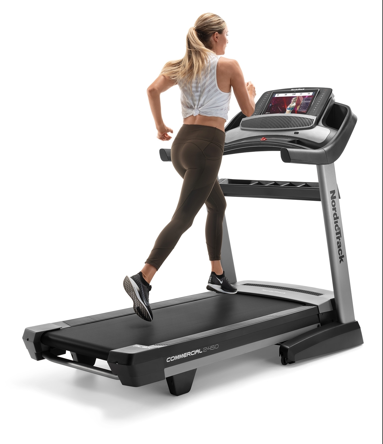 NordicTrack Commercial 2450 je rodinný stroj určený ako pre začiatočníkov, tak športovo zamerané osoby v domácom prostredí. Maximálna nosnosť používateľa bežeckého pásu je 135 kg. Je vybavený tichým motorom s trvalým výkonom 4,25 HP (konská sila). Poskytuje rozsah rýchlosti do 22 km/h a sklon bežeckej plochy je možné elektronicky regulovať v rozsahu od -3 % do 15 %. Robustná rámová konštrukcia a kvalitné spracovanie trenažéru zaručuje dlhú životnosť stroja aj pri pravidelnom používaní.
