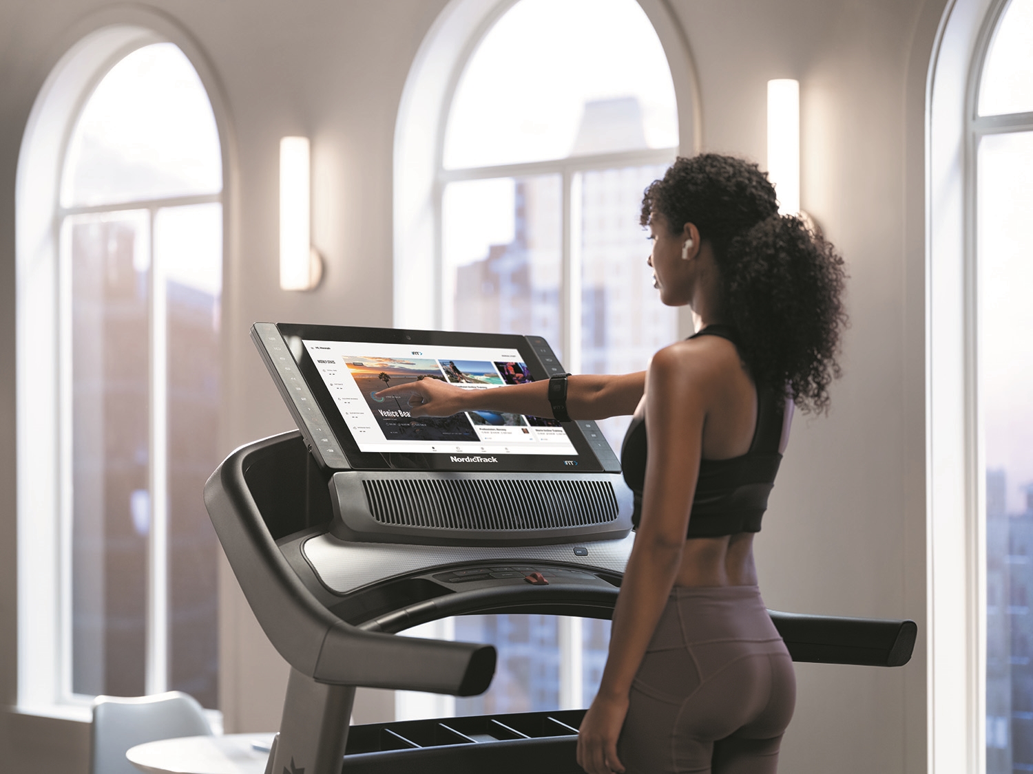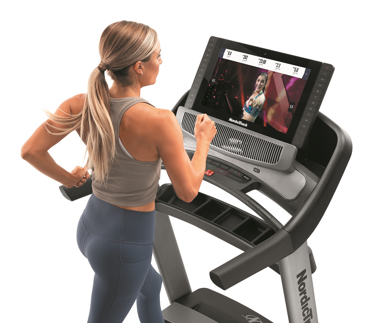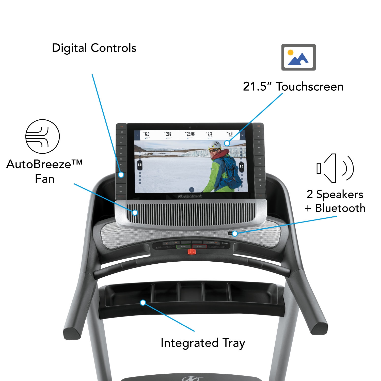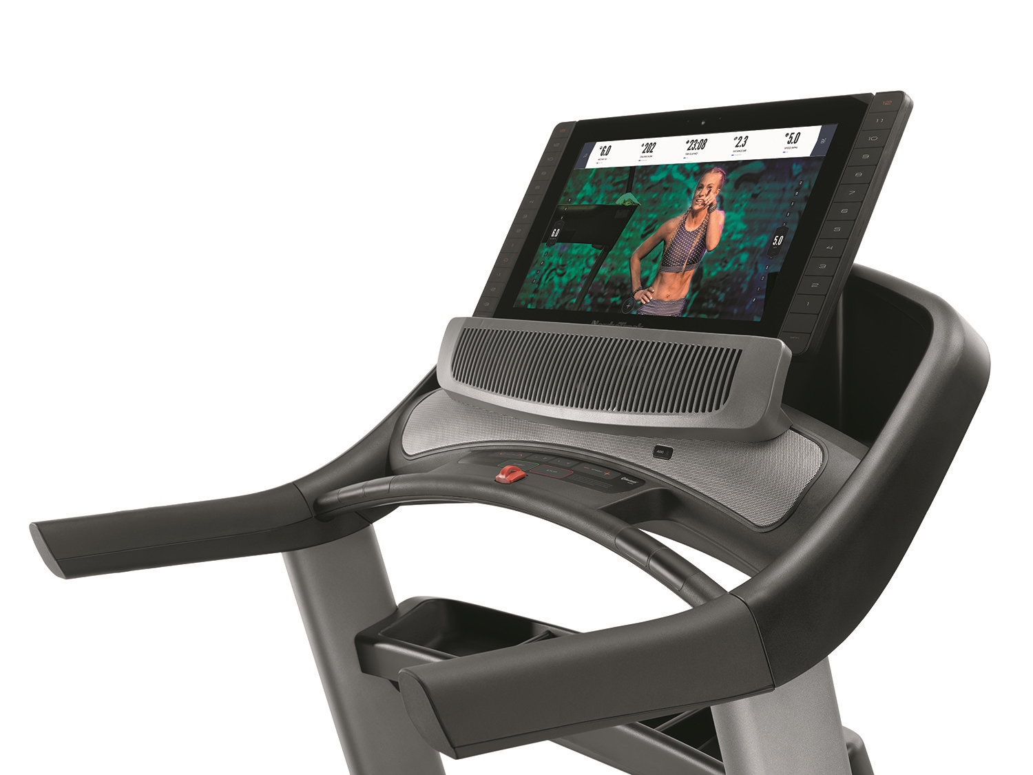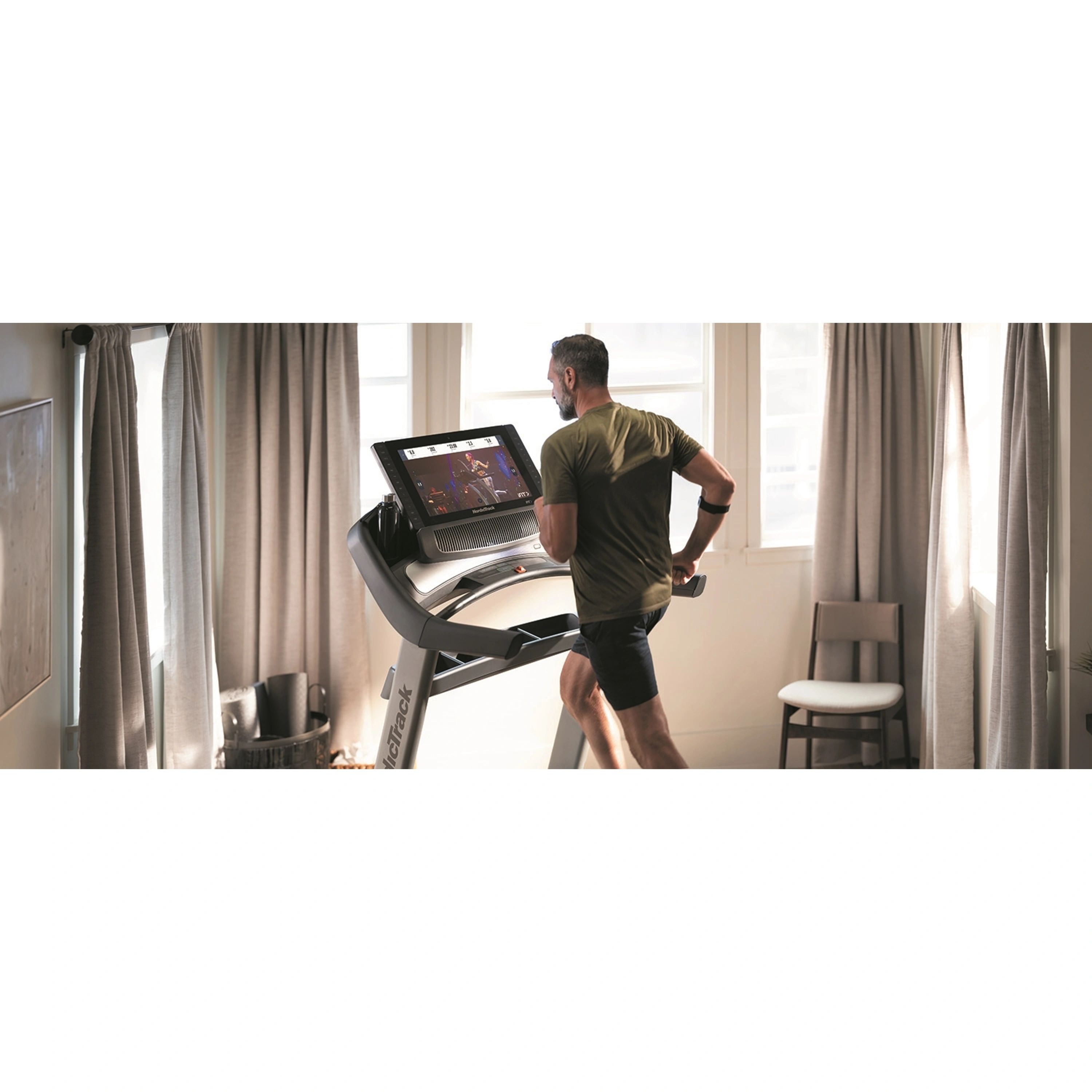 Tréning na bežeckom trenažéri NordicTrack Commercial 2950 budete mať pod kontrolou prostredníctvom tréningového počítača s bezkonkurečným 21,5" grafickým dotykovým displejom. Na displeji vidíte zobrazované hodnoty ako čas, vzdialenosť, rýchlosť behu, sklon pásu, spotreba kalórií, meranie tepovej frekvencie a pod. Tréningová aplikácia iFit je zabudovaná priamo v konzole počítača (tablet teda nebudete potrebovať) a vďaka nej máte neobmedzené možnosti v oblasti cvičenia, s nepreberným množstvom tréningových programov. Aplikácia vám umožní rozšíriť vaše tréningové plány cez systém Google MAPS.Tablet nie je súčasťou dodávky.