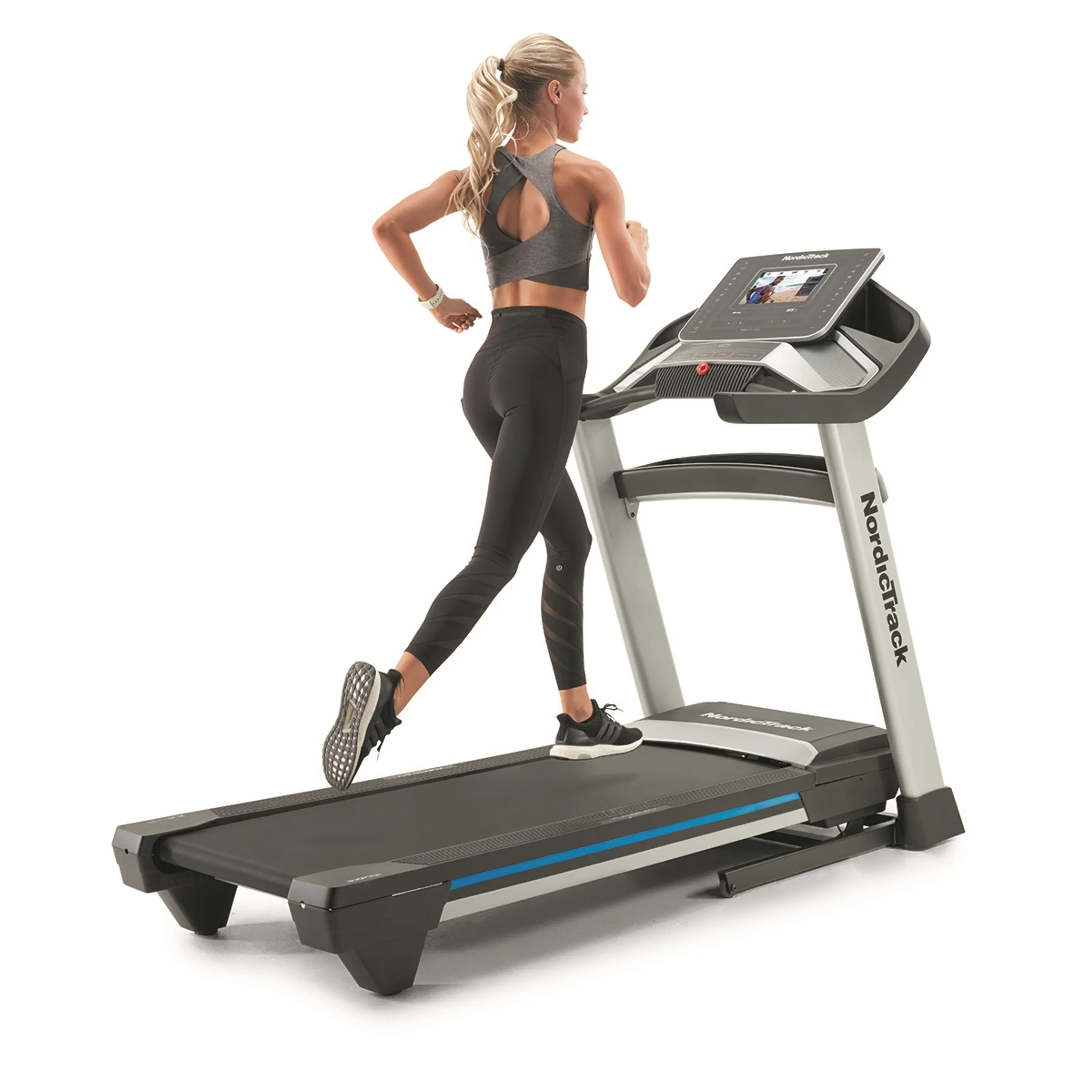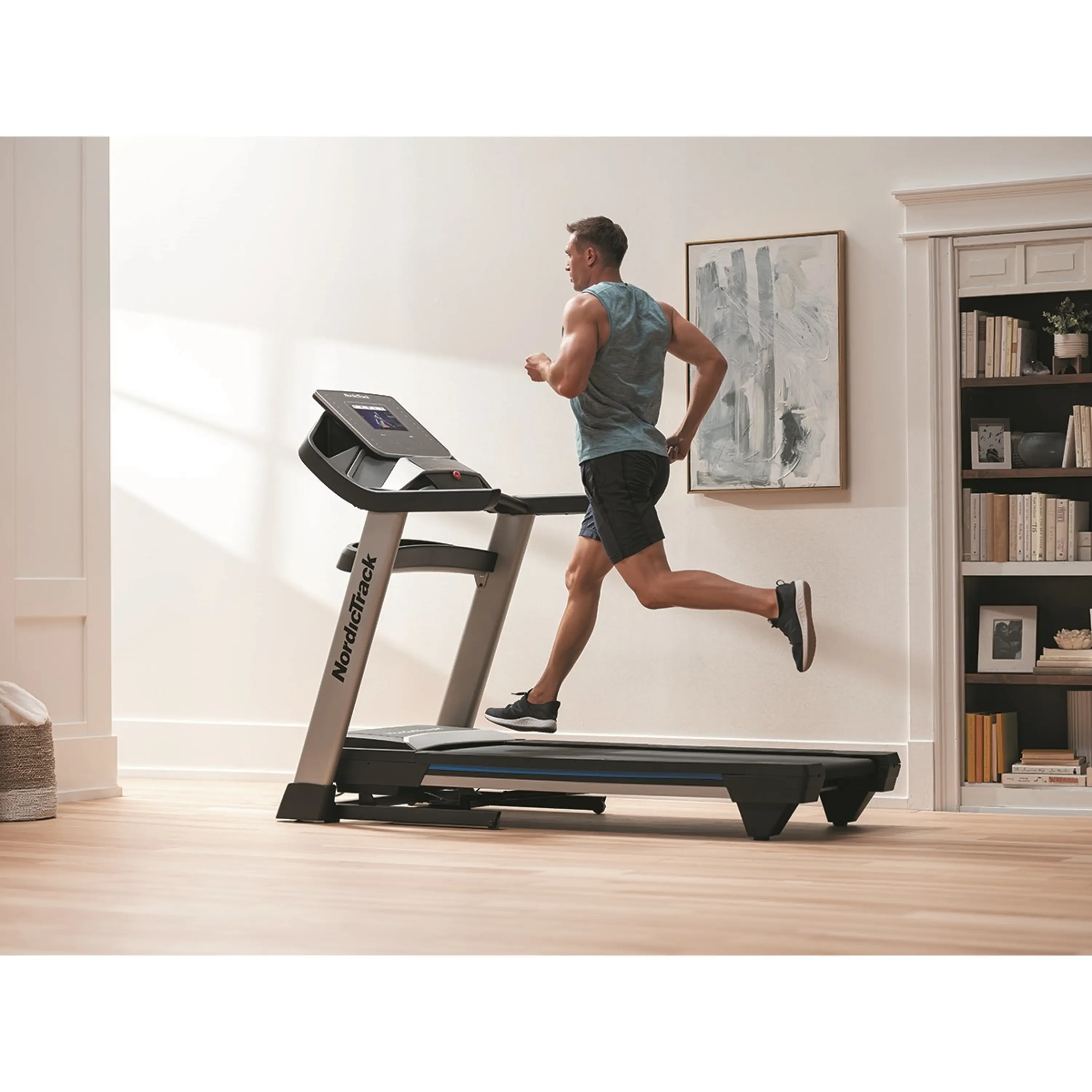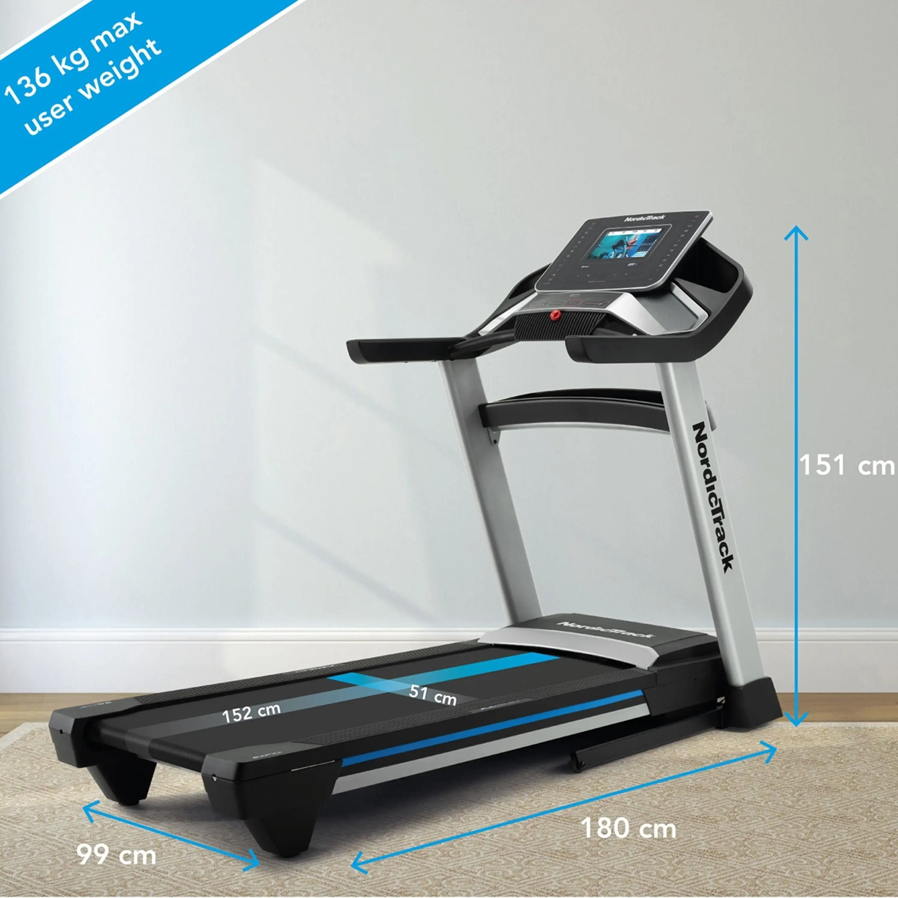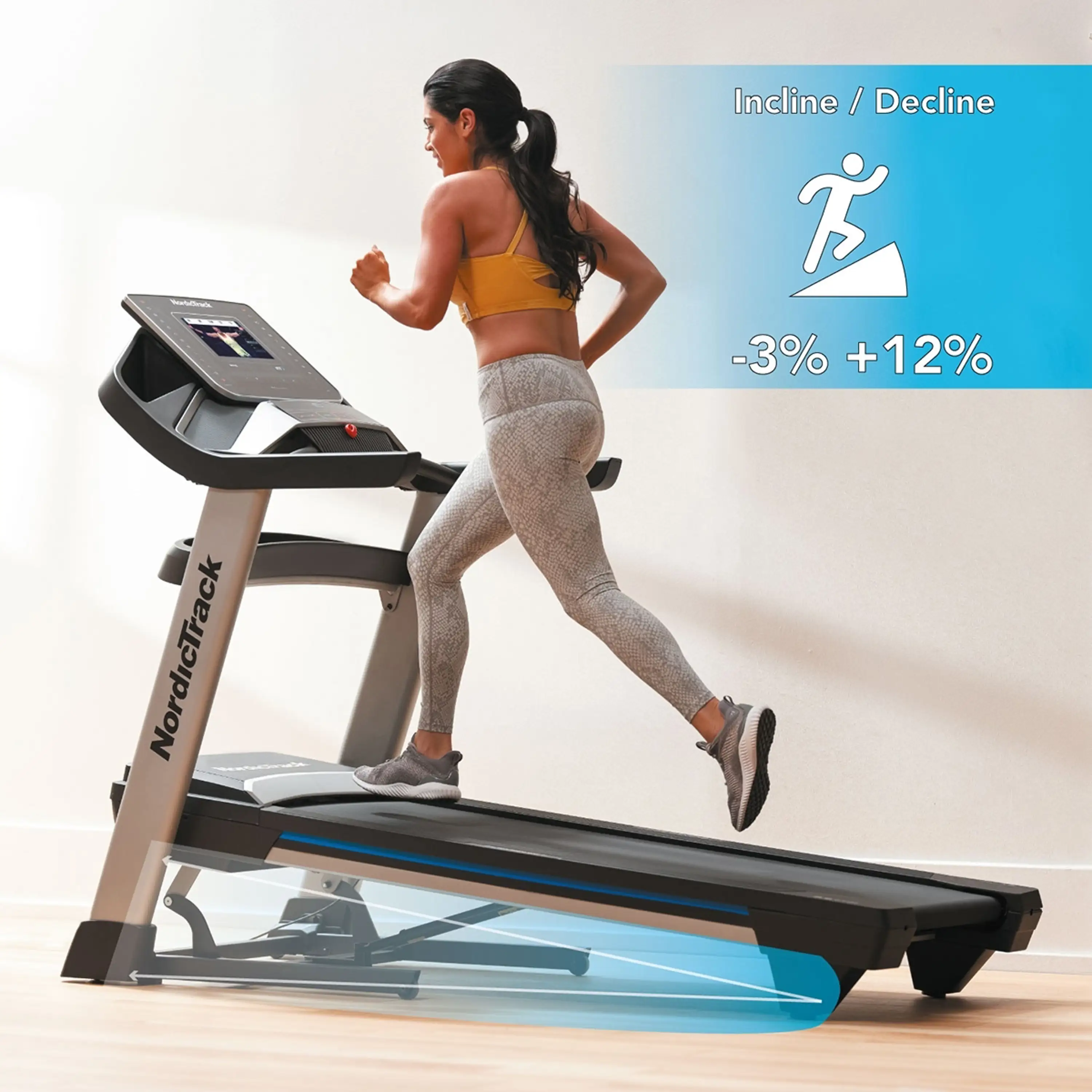 NORDICTRACK EXP 10i je bežecký trenažér, ktorý skvele doplní každé domáce fitnes. Stroj poskytuje kombináciu kvalitnej mechaniky a masívneho rámu s nosnosťou až do 136 kg váhy cvičenca, pre menšie i väčšie postavy. Motor s trvalým výkonom 3,5 HP (2, 6 kW), bežecká plocha o veľkosti 51 x 152 cm, elektronicky nastaviteľná rýchlosť do max. 22 km/rovnako ako elektronicky regulovaný sklon v rozmedzí od - 3 % + 12 %, ponúkne každému maximálny komfort pri behaní. Rýchlosť aj sklon plochy môžete nastaviť už prednastavenými tlačidlami na paneli PC.