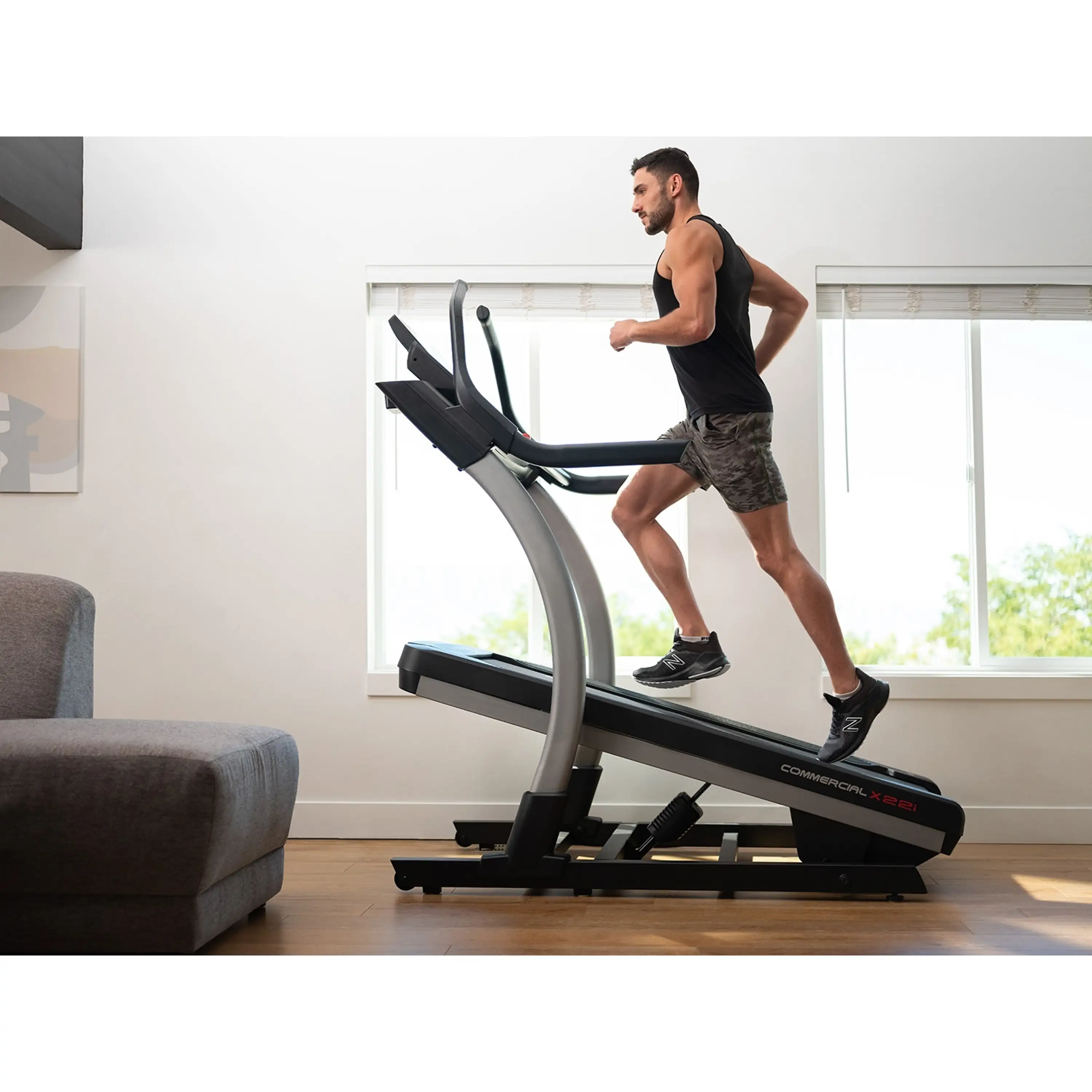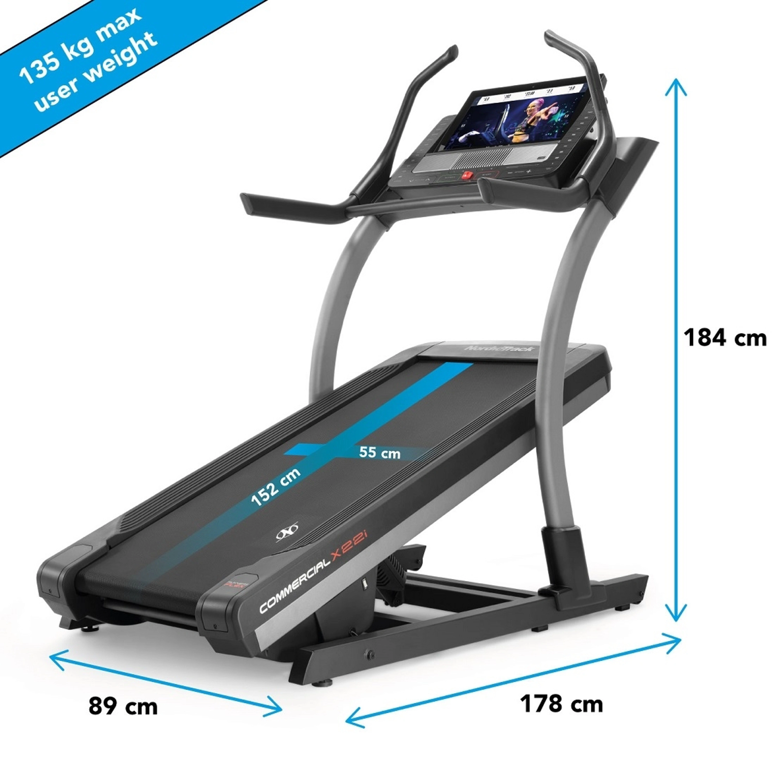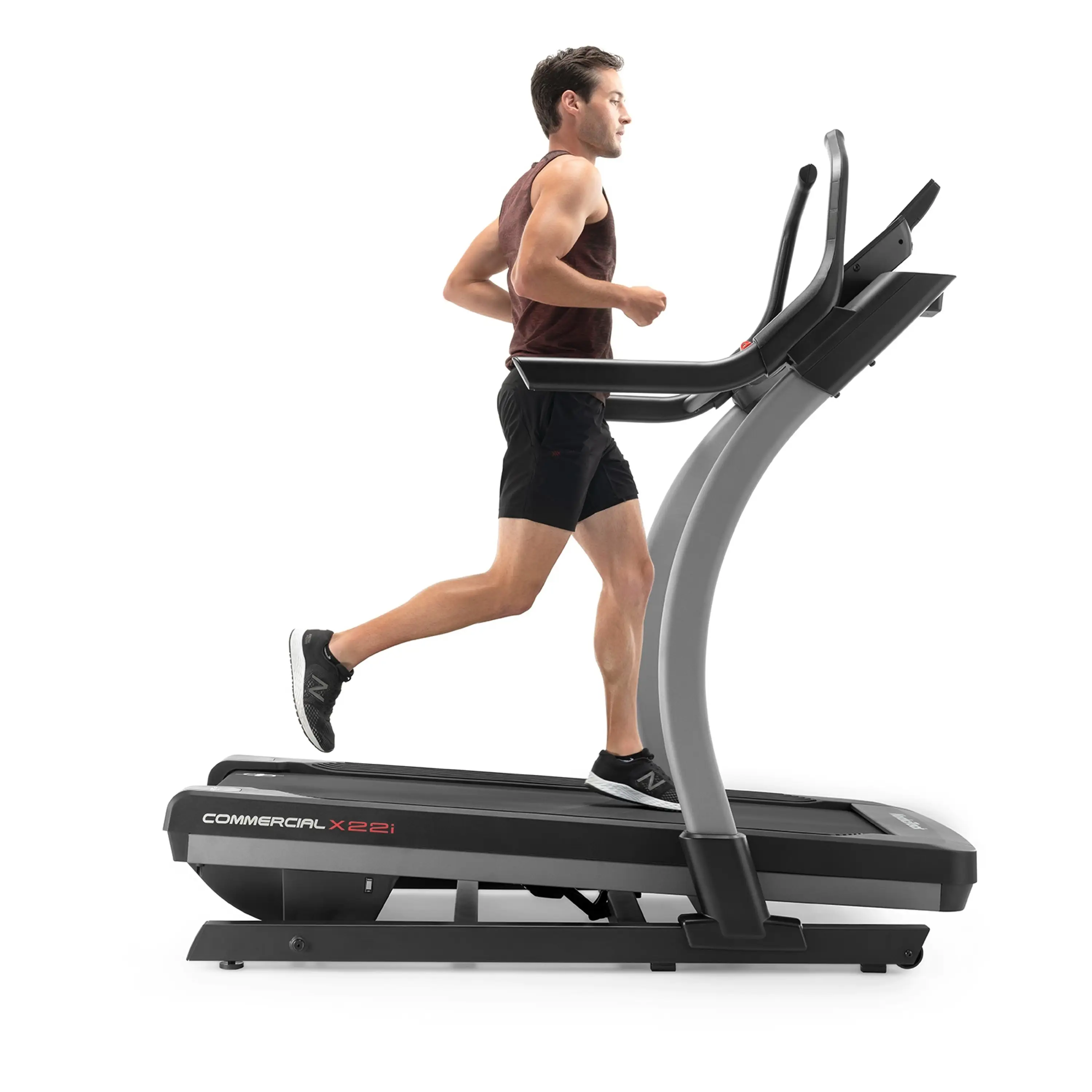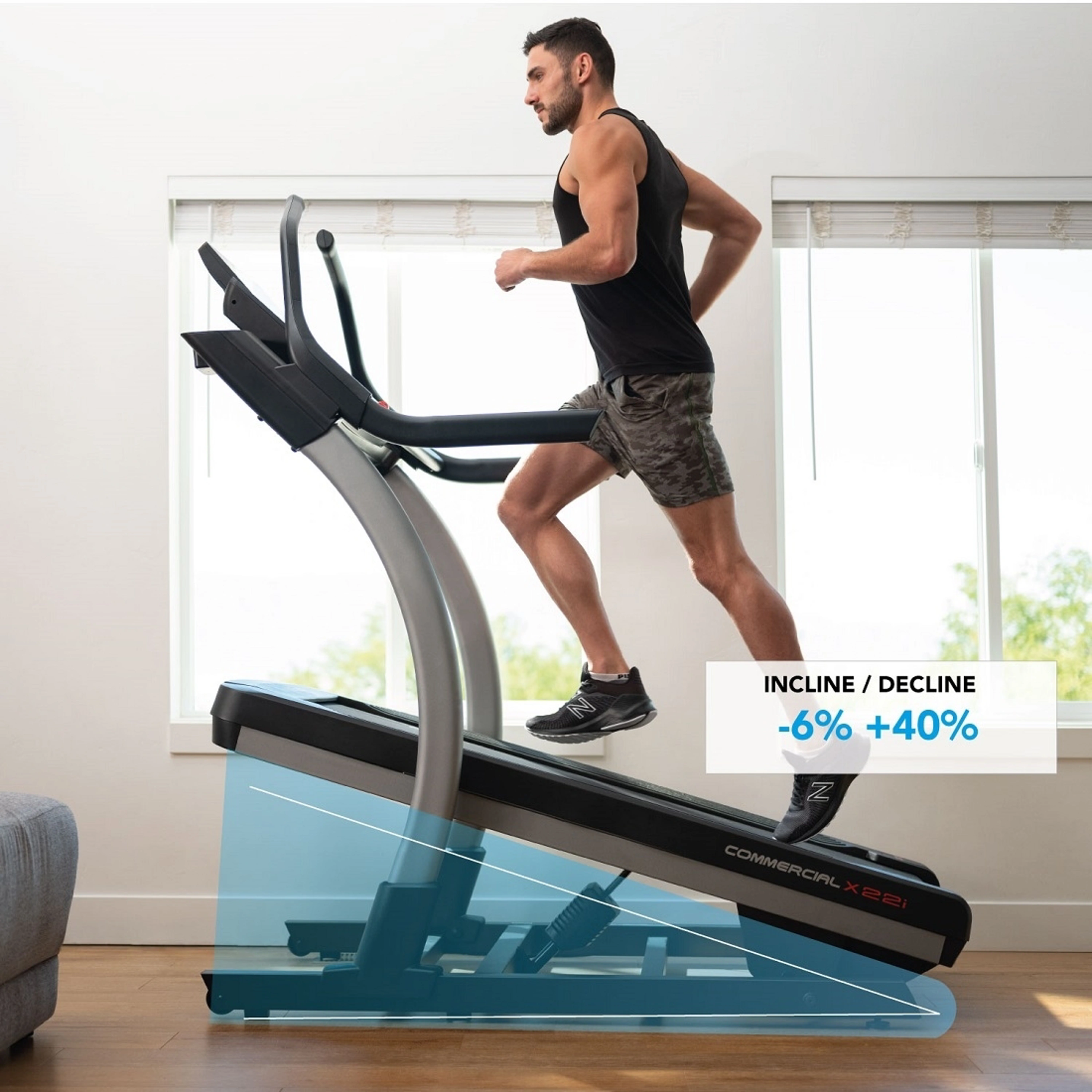 NORDICTRACK Incline Trainer X22i 2021 je bežecký trenažér nielen pre domáci fitness, ale aj pre ľahko komerčné prevádzky. Bude vhodný pre pravidelný tréning začínajúcich športovcov, pokročilejších bežcov, ale aj pre vášnivých športovcov. Stroj poskytuje kombináciu kvalitnej mechaniky a masívneho rámu s nosnosťou až do 135 kg váhy cvičenca. Motor s trvalým výkonom 4 HP (2,98 kW), bežecká plocha o veľkosti 55 x 152 cm, elektronicky nastaviteľná rýchlosť do max. 22 km/rovnako ako elektronicky regulovaný sklon v rozmedzí od -6 % + 40 %, ponúkne každému maximálny komfort pri behaní. Rýchlosť aj sklon plochy môžete nastaviť krokovo alebo už prednastavenými tlačidlami na paneli PC.