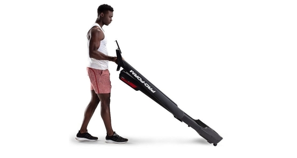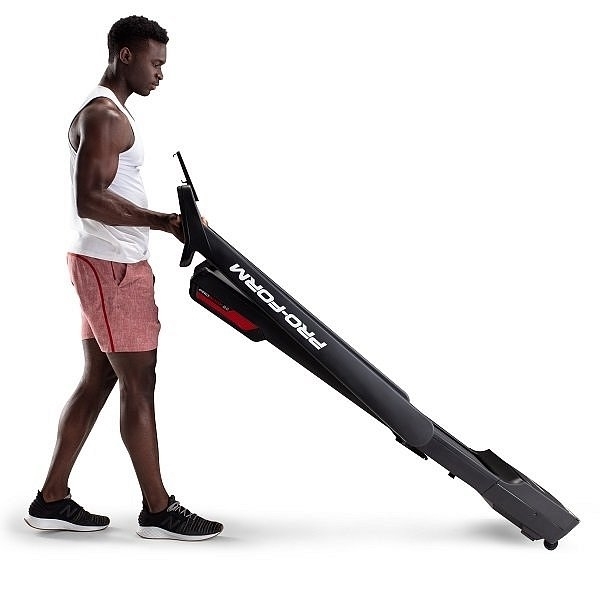 Model bežeckého pásu PROFORM City L6 poskytuje sklopenie konzoly do horizontálnej polohy na bežeckú plochu a ponúka tak veľkú úsporu miesta. Rozmer po sklopení: 187 x 63 x 32 cm. Zloženie aj manipulácia sú veľmi jednoduché, a pokiaľ práve nebeháte môžete stroj ľahko uložiť napríklad aj pod posteľ. K ľahkému premiestňovaniu pomôžu transportné kolieska, ktoré sú súčasťou stroja.