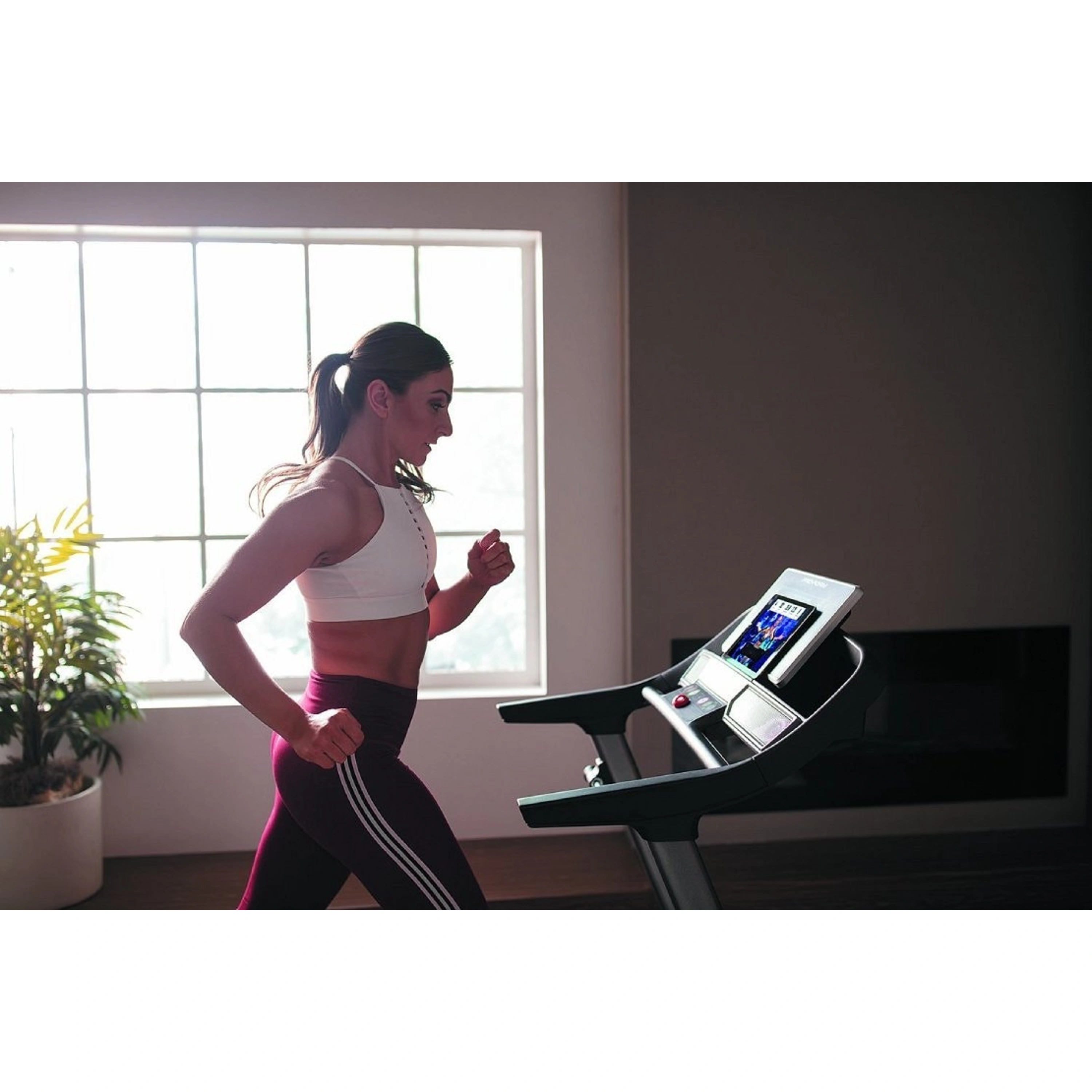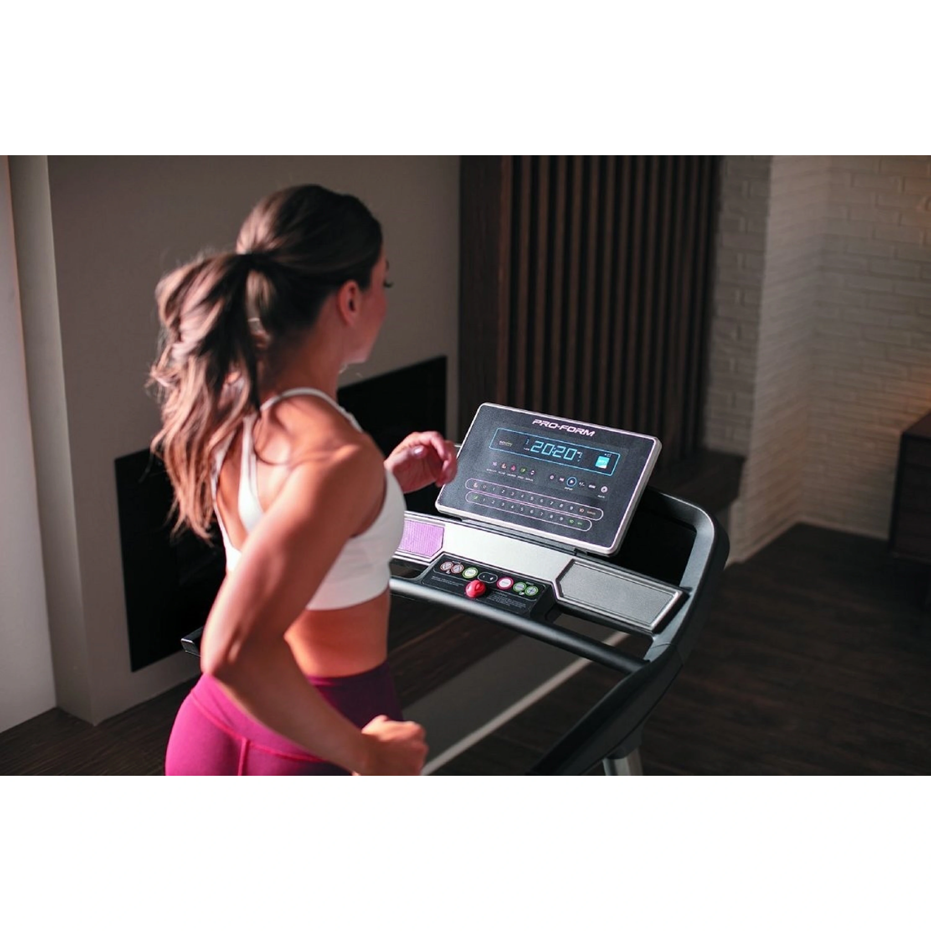 Počítač má 5" vysokokontrastný displej pre sledovanie bežných tréningových hodnôt a ľahko sa ovláda. Konzola počítača ďalej disponuje držiakom na tablet a úchopovým madlom. Zobrazované parametre sú: rýchlosť, čas, vzdialenosť, spálené kalórie, tepová frekvencia.Pre meranie frekvencie tepu je nutné si zakúpiť kompatibilný Bluetooth hrudný pás, ktorý vykonáva meranie s presnosti EKG.Hrudný pás je možné samostatne dokúpiť.Počítač ponúka celkom 16 prednastavených cvičebných programov.