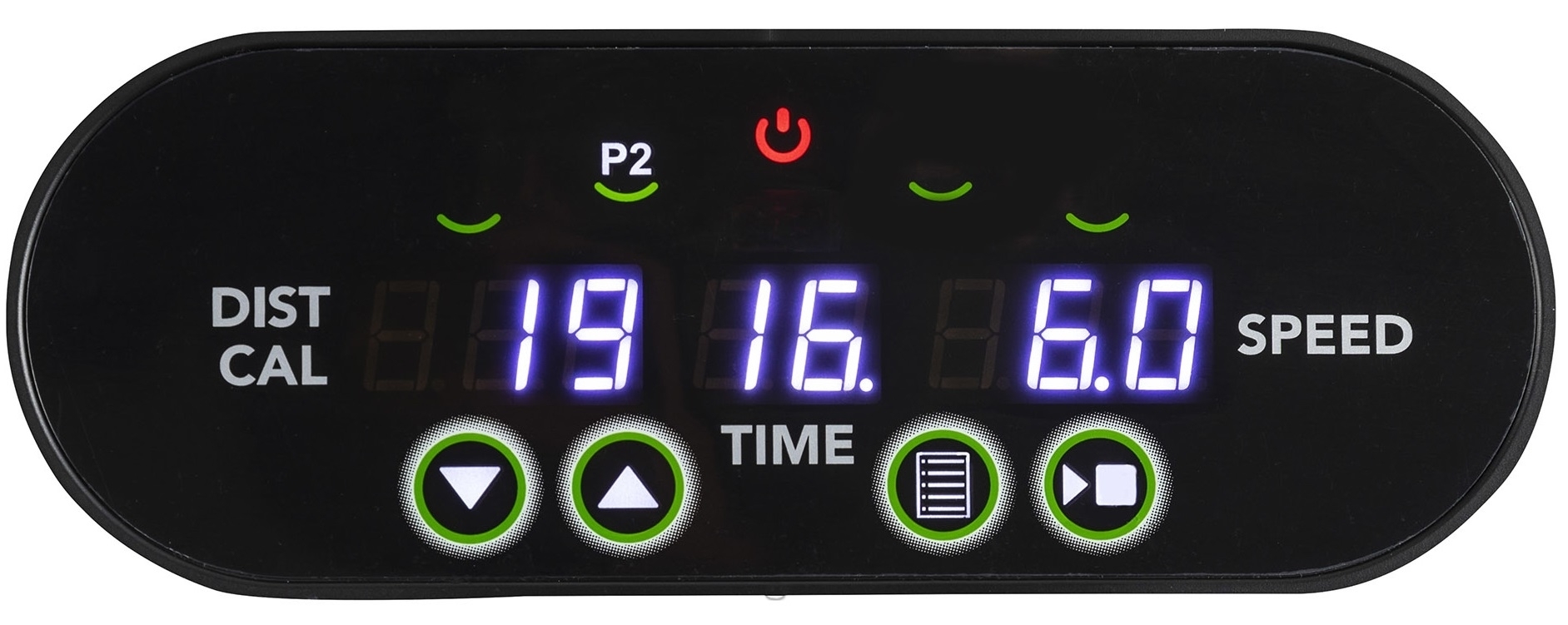 Tréning na bežeckom trenažéri TUNTURI Cardio Fit T10 budete mať pod kontrolou pomocou tréningového počítača s jednoduchým, ale prehľadným LCD & displejom, ktorý je umiestnený na prednej lište bežeckého pásu. displeji vidíte zobrazované hodnoty ako čas behu, vzdialenosť, rýchlosť behu a spotrebu kalórií.