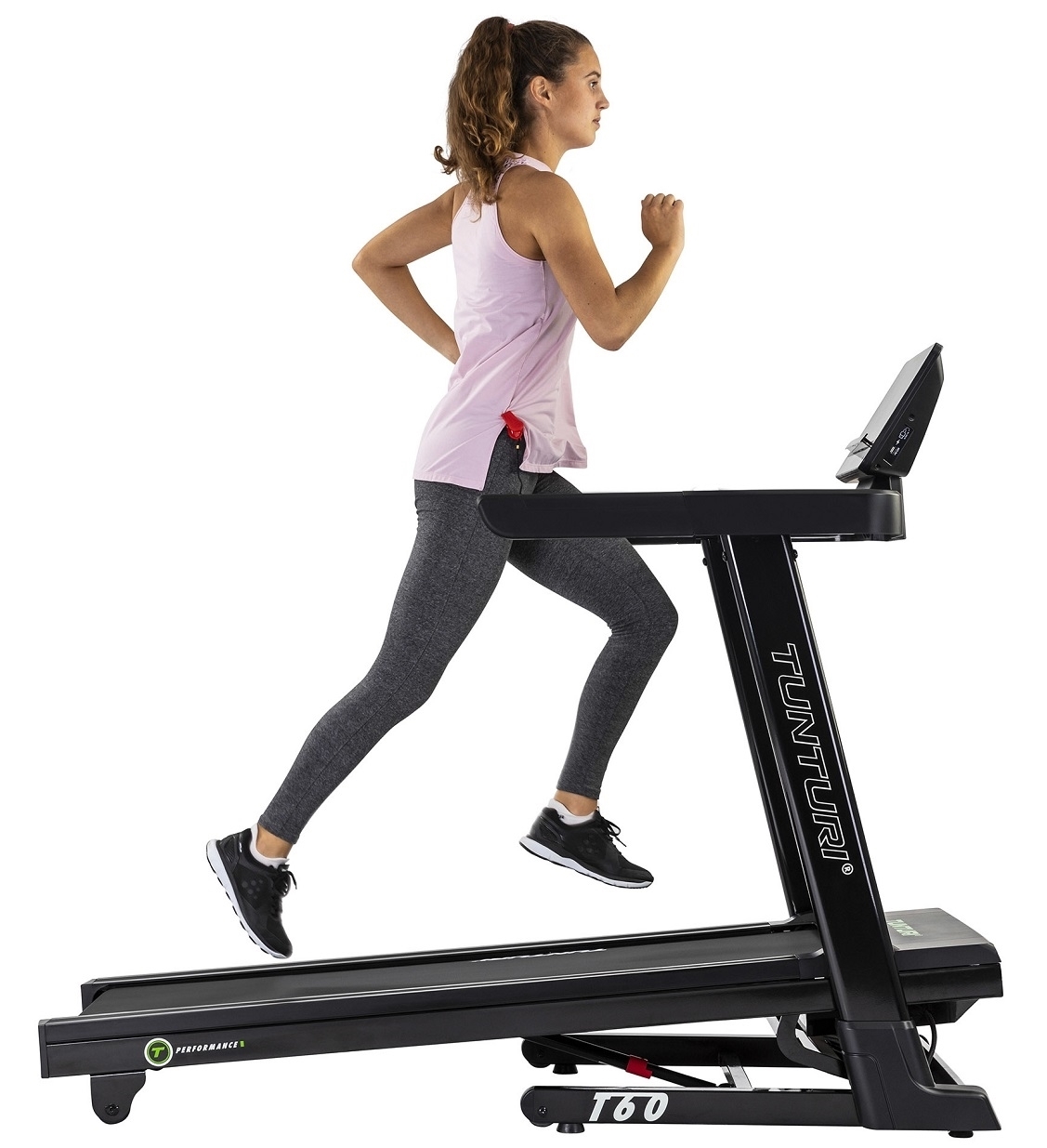 TUNTURI T60 Performance kvalitný bežecký pás od svetoznámeho výrobcu domácich fitness strojov. Silný motor má trvalý výkon a 3,67 kW (5 HP) a vysoký záberový moment, ideálny pre milovníkov veľkej rýchlosti. Motor je izolovaný veľkým krytom pre elimináciu vibrácií počas behu, intuitívny systém chladenia zaručí dlhodobú prevádzku bez nebezpečenstva prehriatia. Rýchlosť v rozmedzí 0,8-20 km/hod je elektronicky nastaviteľná, rovnako ako sklon bežeckej plochy, a to až do 15 %. Bežecký trenažér tak určite uspokojí ako začínajúcich bežcov, tak aj skúsených športovcov s vysokým nárokom na pohyb. Nosnosť stroja 135 kg bežecká plocha s veľkorysým rozmerom. /strong> a celková hmotnosť stroja 87 kg zaručí dlhú životnosť pri pravidelnom používaní v domácich podmienkach.