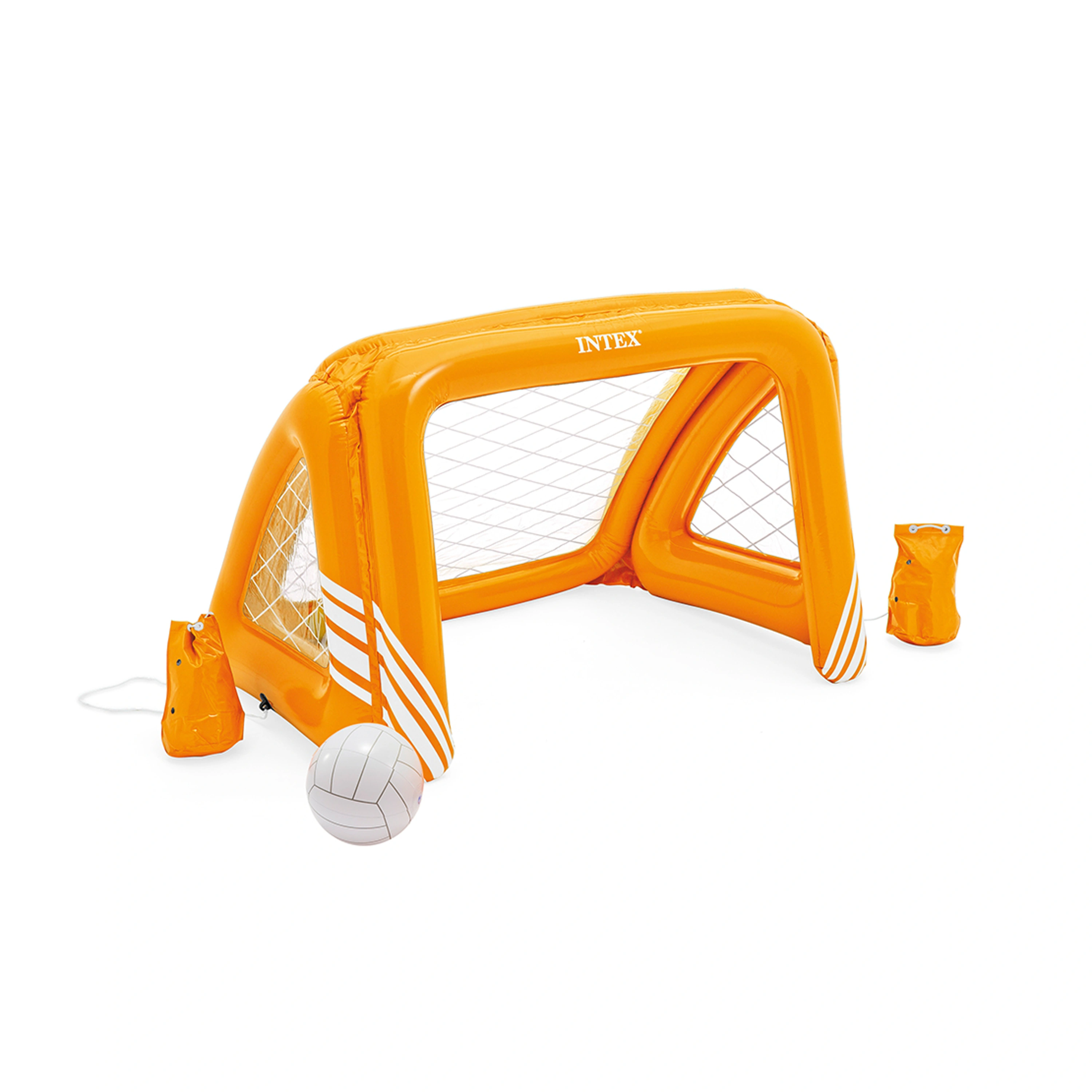 Futbalový set do bazéna. Nafukovacia bránka s rozmermi 140 cm x 89 cm x 81 cm. Súčasťou balenia sú 2 kapsy určené k záťaži vo vode a nafukovacia lopta. Bránka do vody aj na trávnik nesmie chýbať žiadnemu futbalistovi alebo futbalistke.
