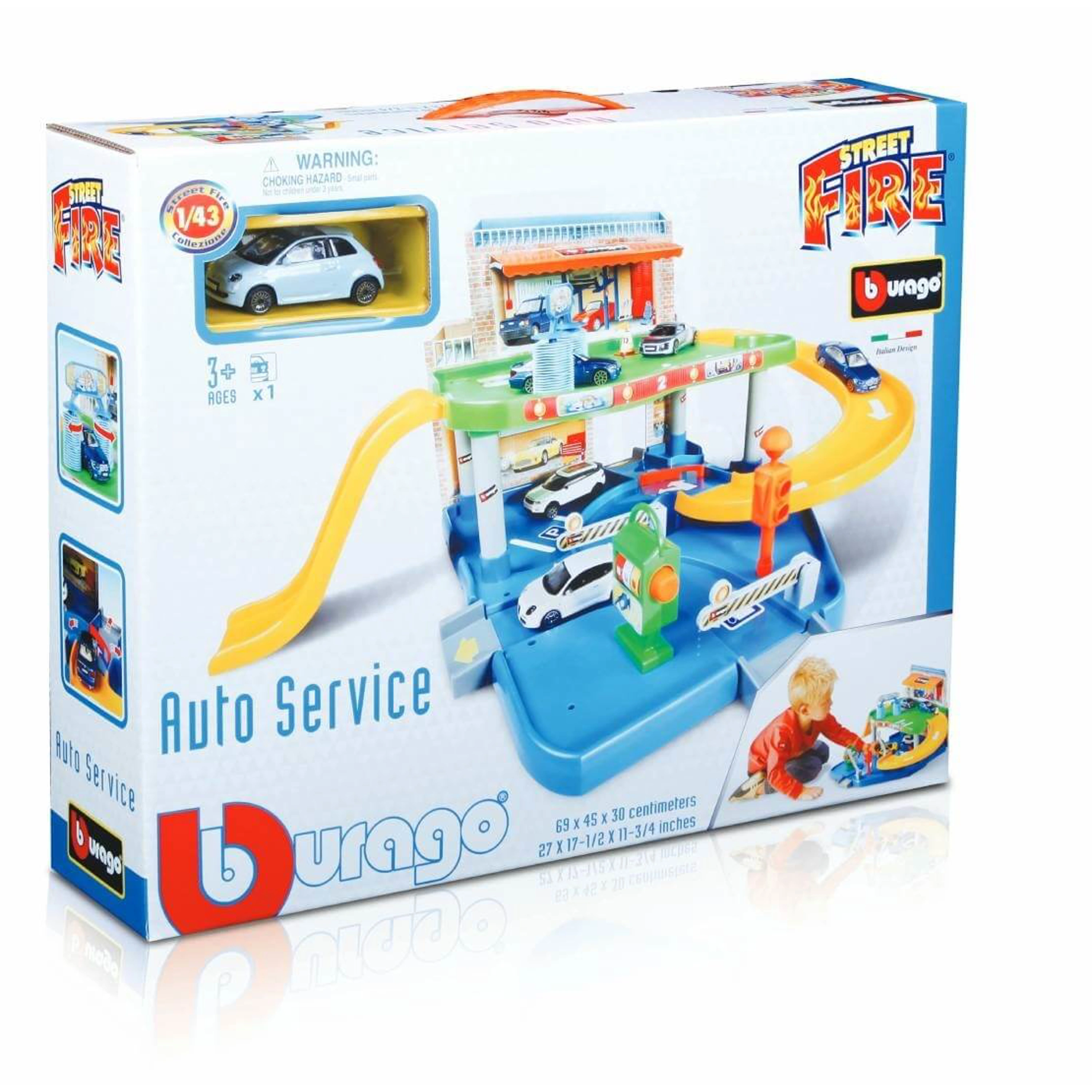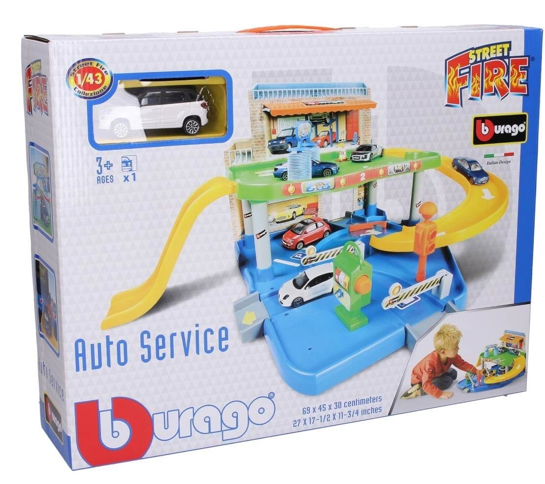 Opraviť auto, umyť ho alebo natankovať? Zlož si svoj vlastný dvojposchodový autoservis s mnohými doplnkami a nekonečná zábava môže začať! S autíčkom môžeš prejsť medzi kefami autoumývačky, zísť po jednej z zvažujúcich sa ciest až k zdvíhacej bráne alebo zaparkovať v krytom státí. Pri hre sa deti učia logickému a kreatívnemu mysleniu, manipulácii s predmetmi, rozvíja svoju fantáziu, zručnosť, koordináciu a trpezlivosť.