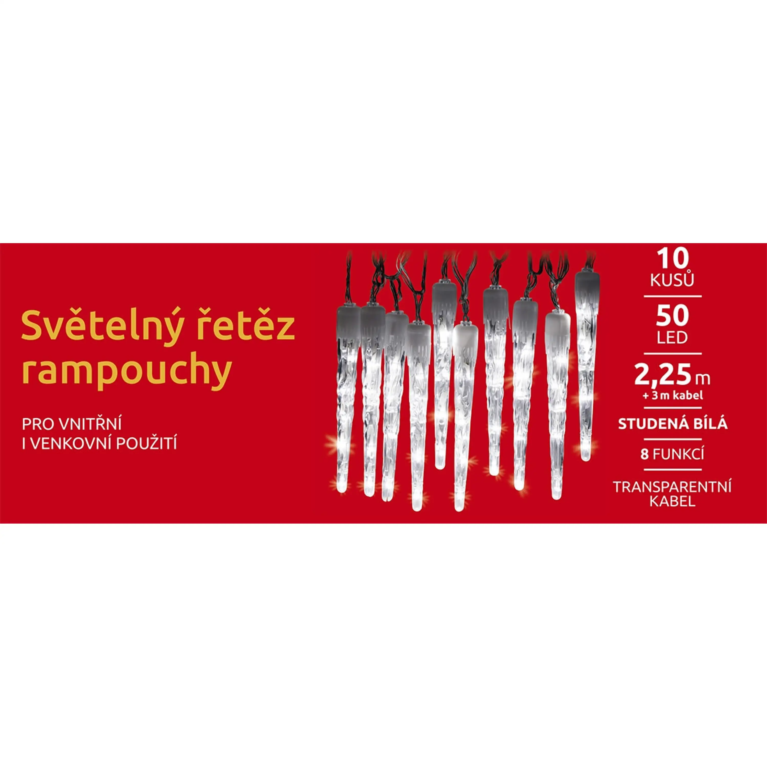 Vianočné svetelné cencúle rozžiaria váš interiér aj exteriér. Rozveselte svoju záhradu, plot alebo schodisko v dome a vychutnajte si krásnu vianočnú atmosféru. K dispozícii máte celkom 10 cencúľov. S LED diódami ušetríte až 90% energie v porovnaní s bežnými žiarovkami. Priemerná životnosť LED je približne 2000 hodín svietenia. Studená biela farba osvetlenia, so svetelnými efektmi - 8 módov.