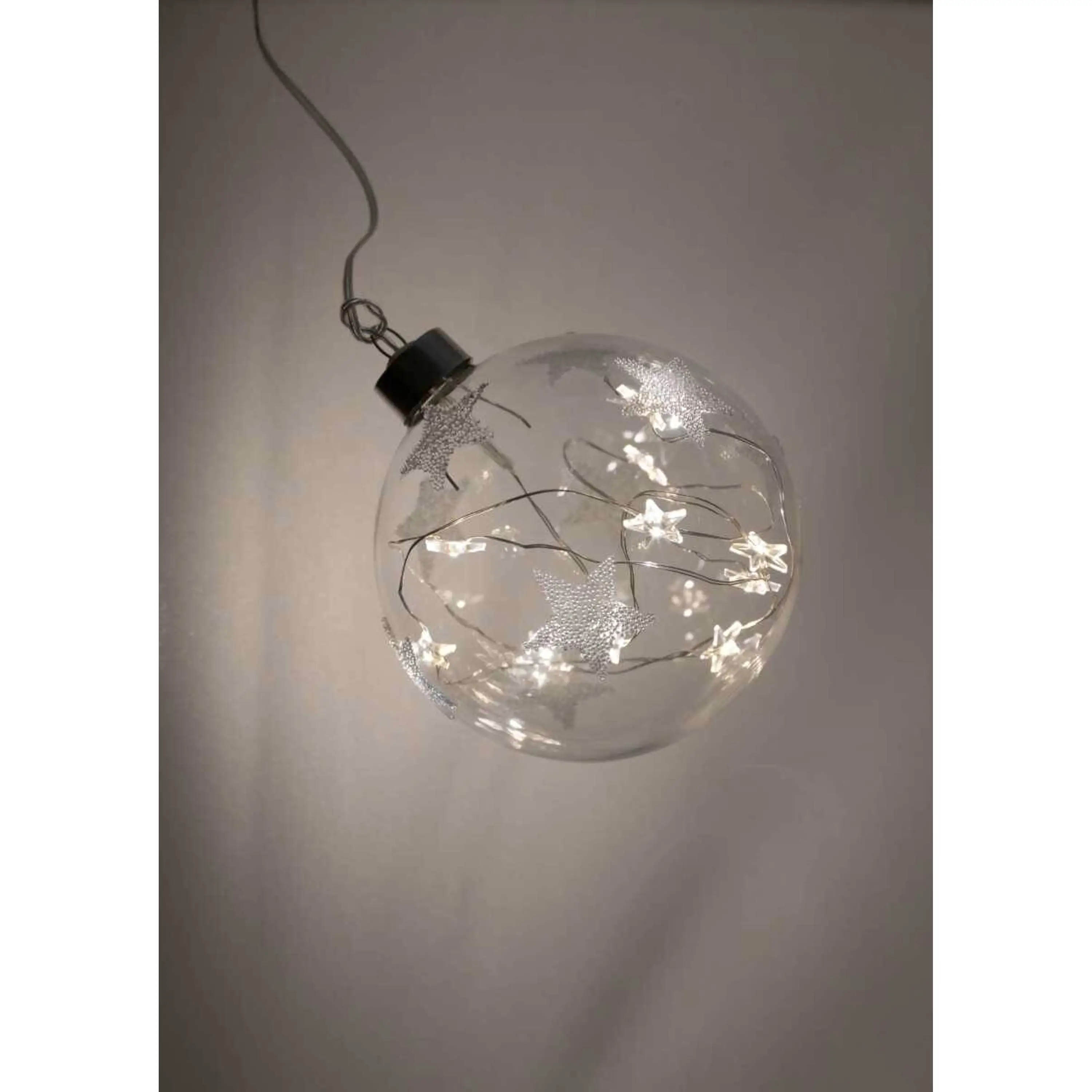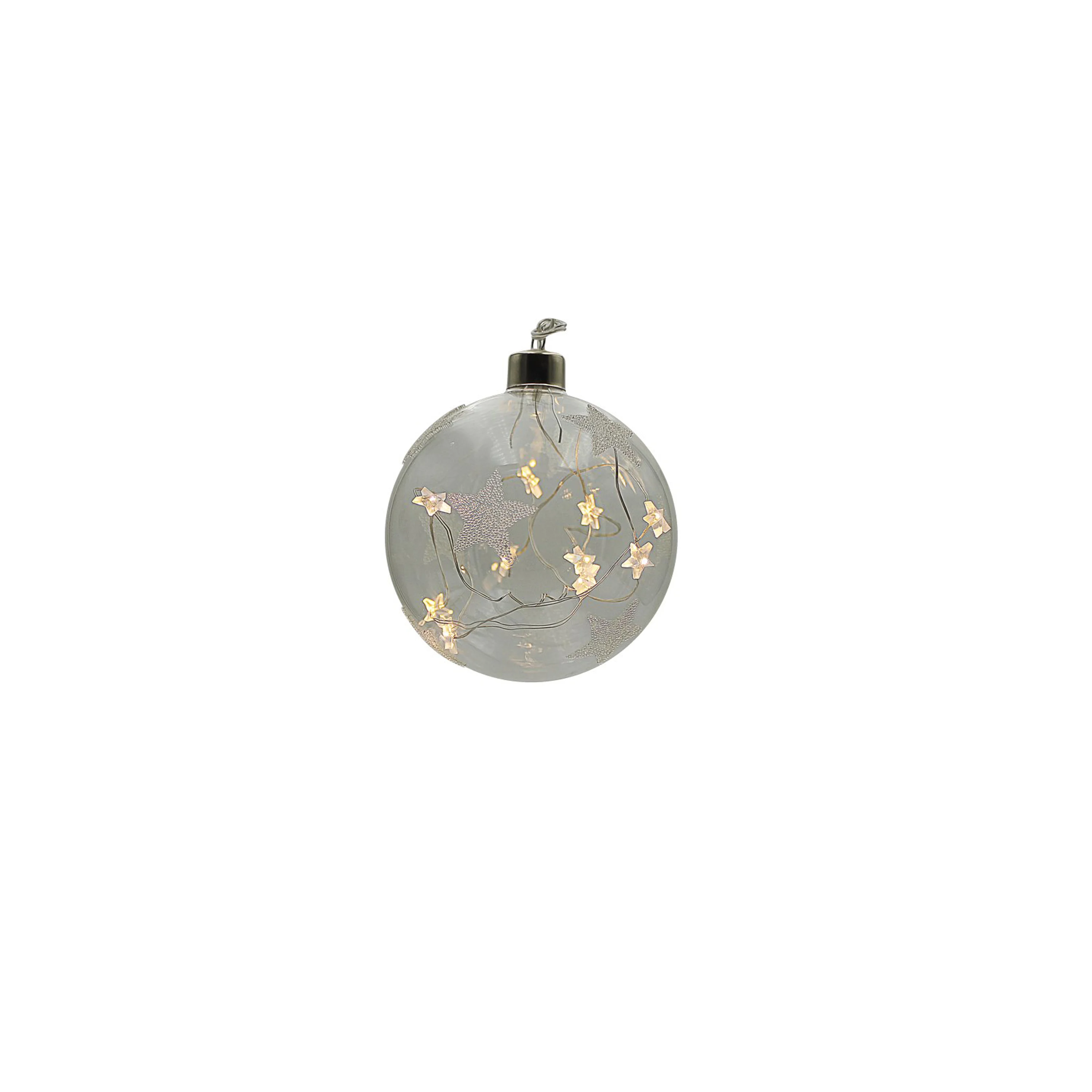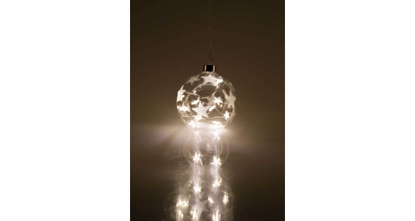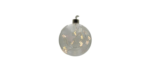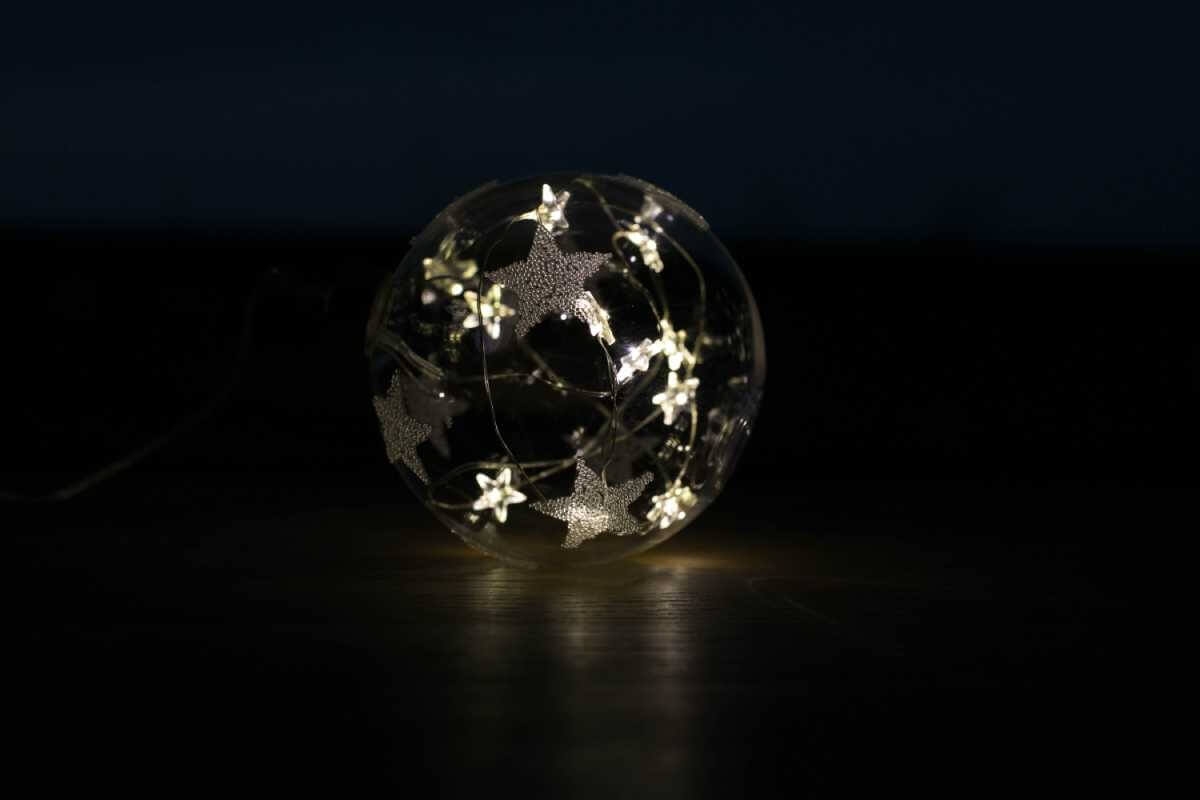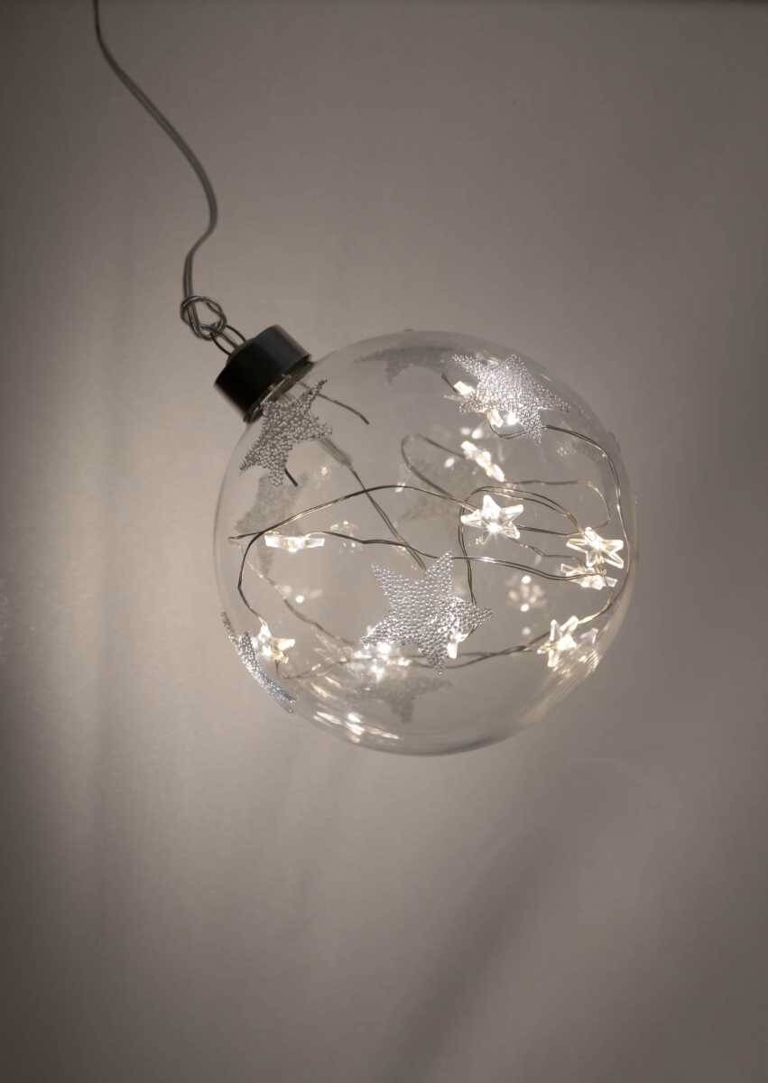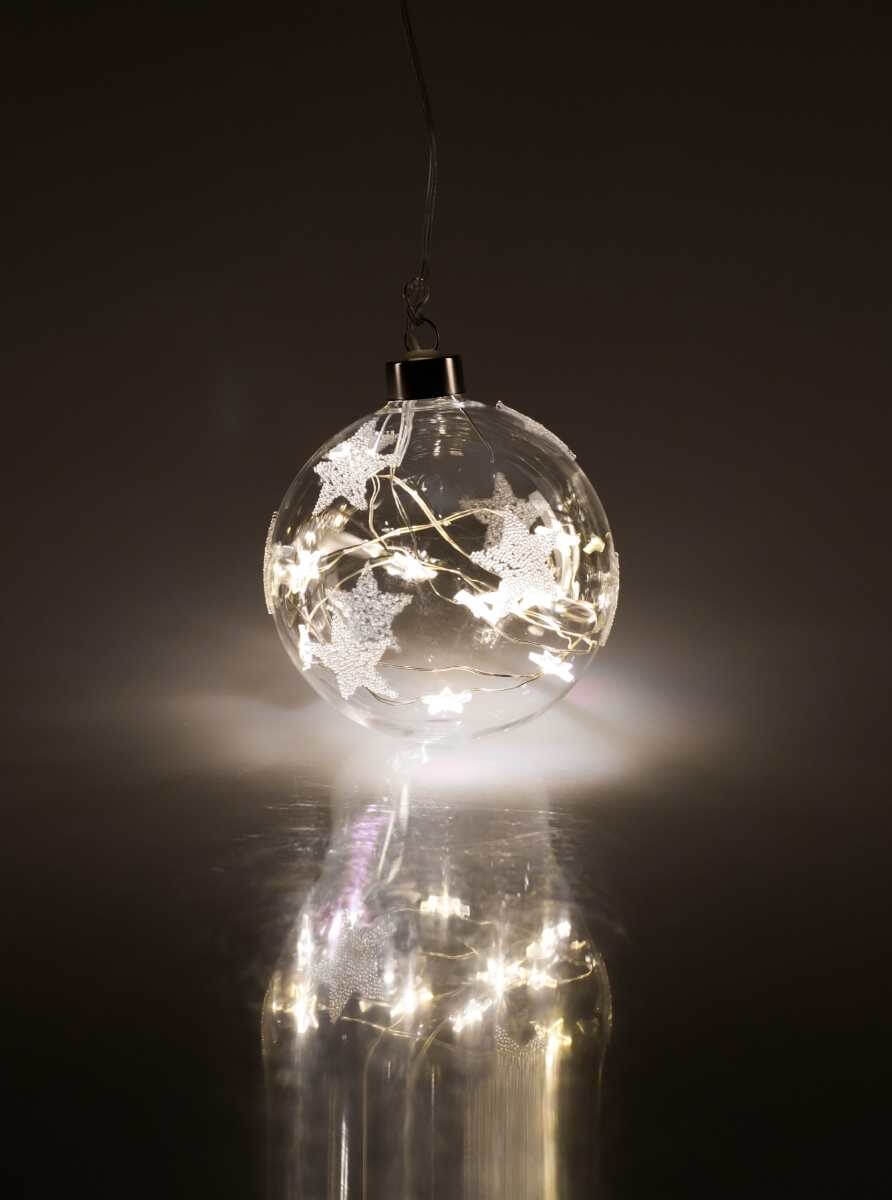 Elegantná vianočná ozdoba - guľa s hviezdami so vstavaným LED osvetlením.