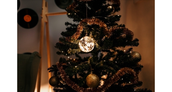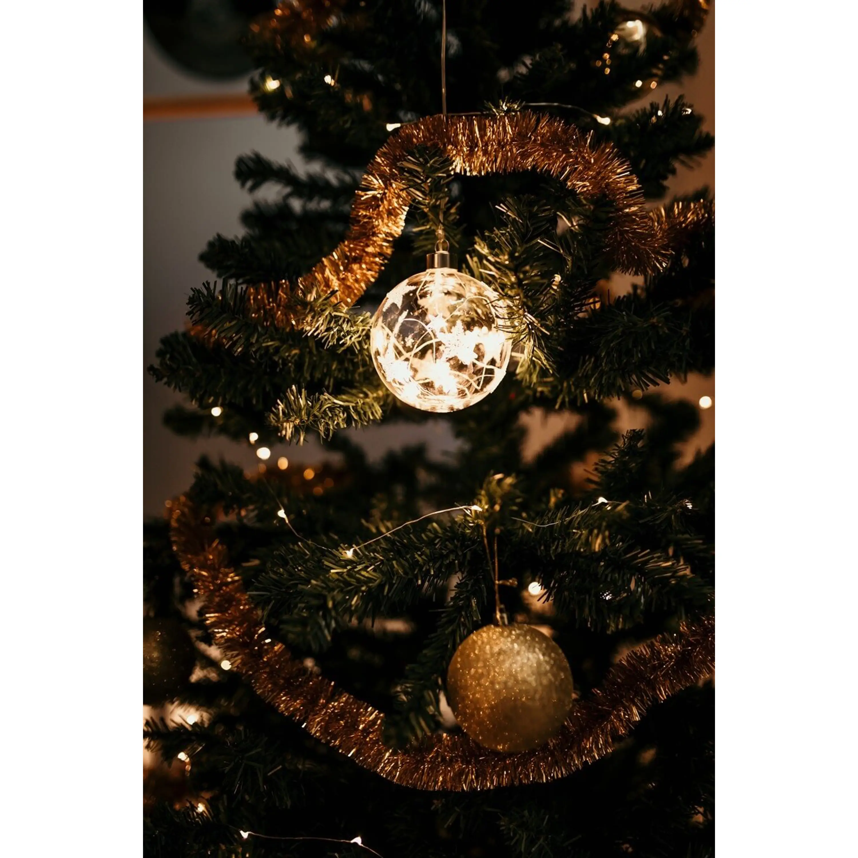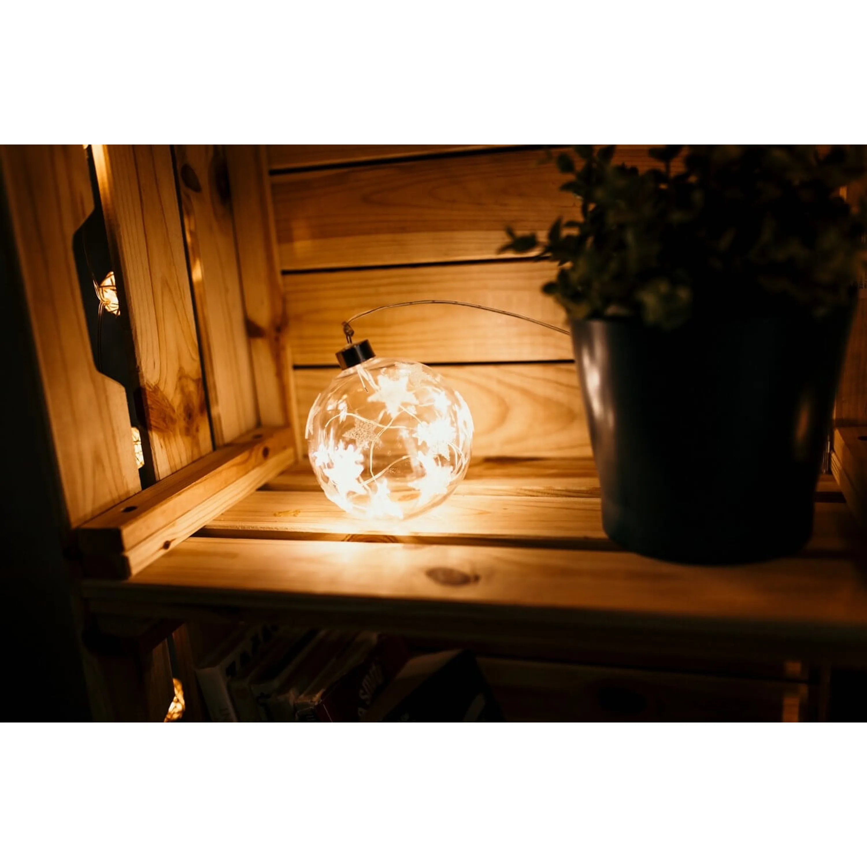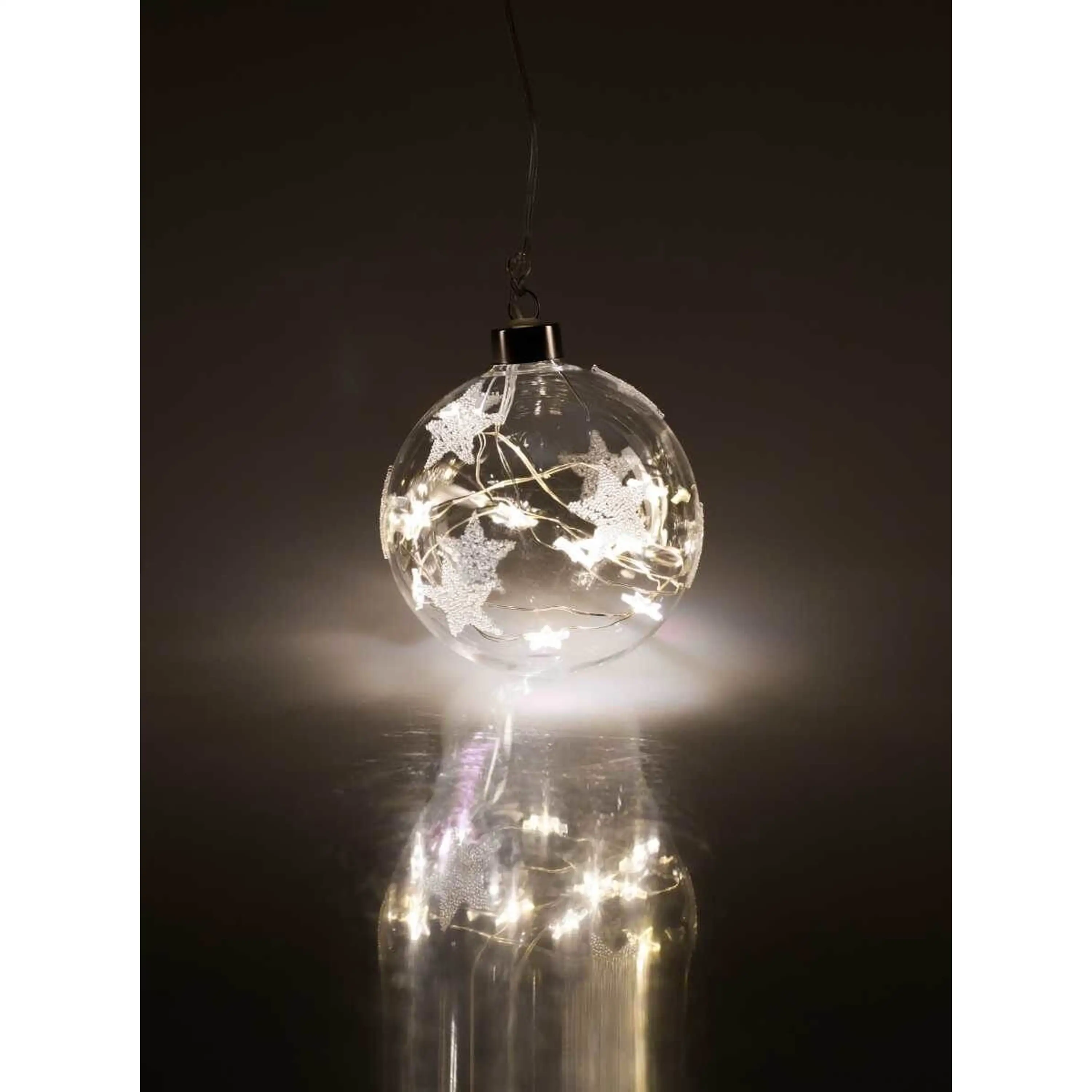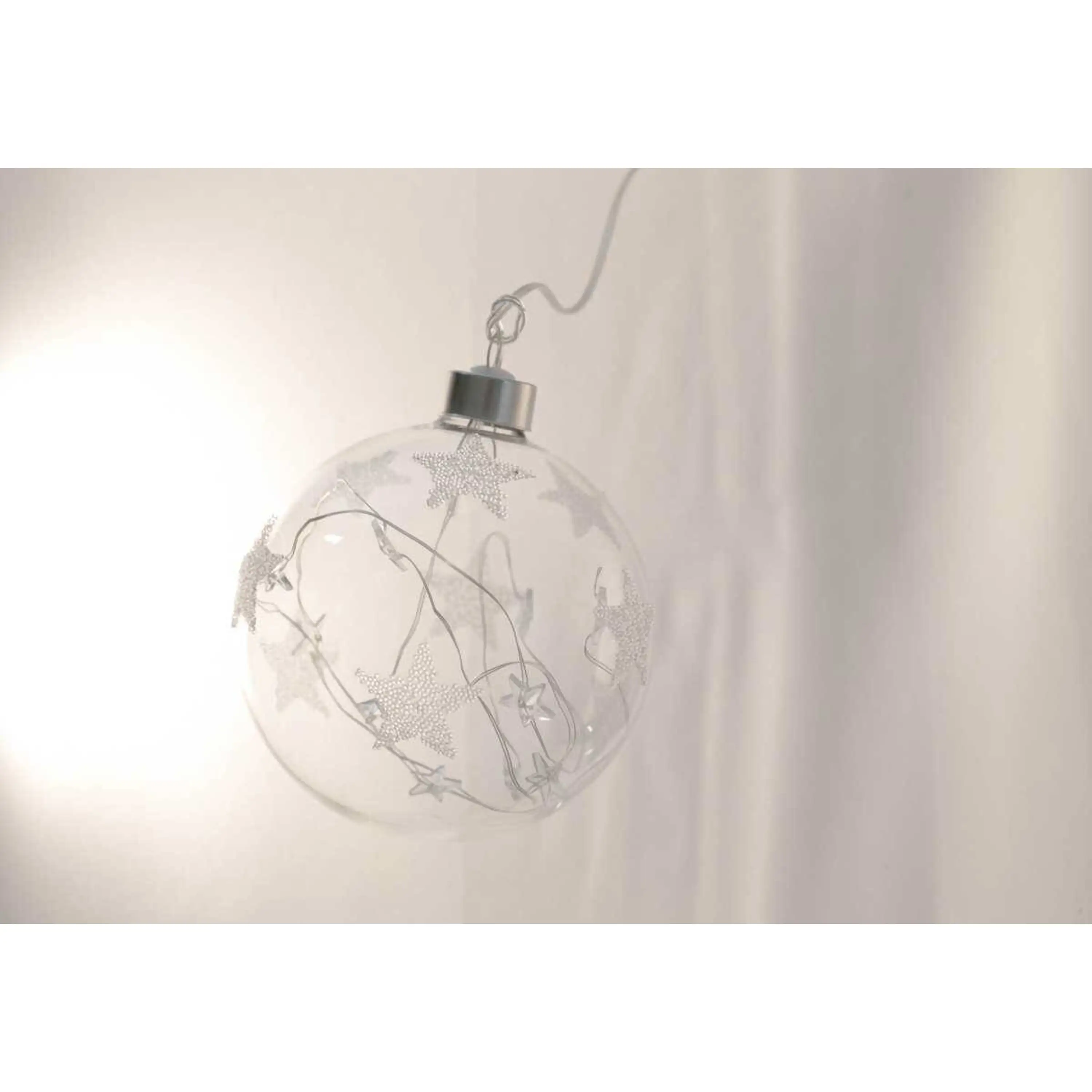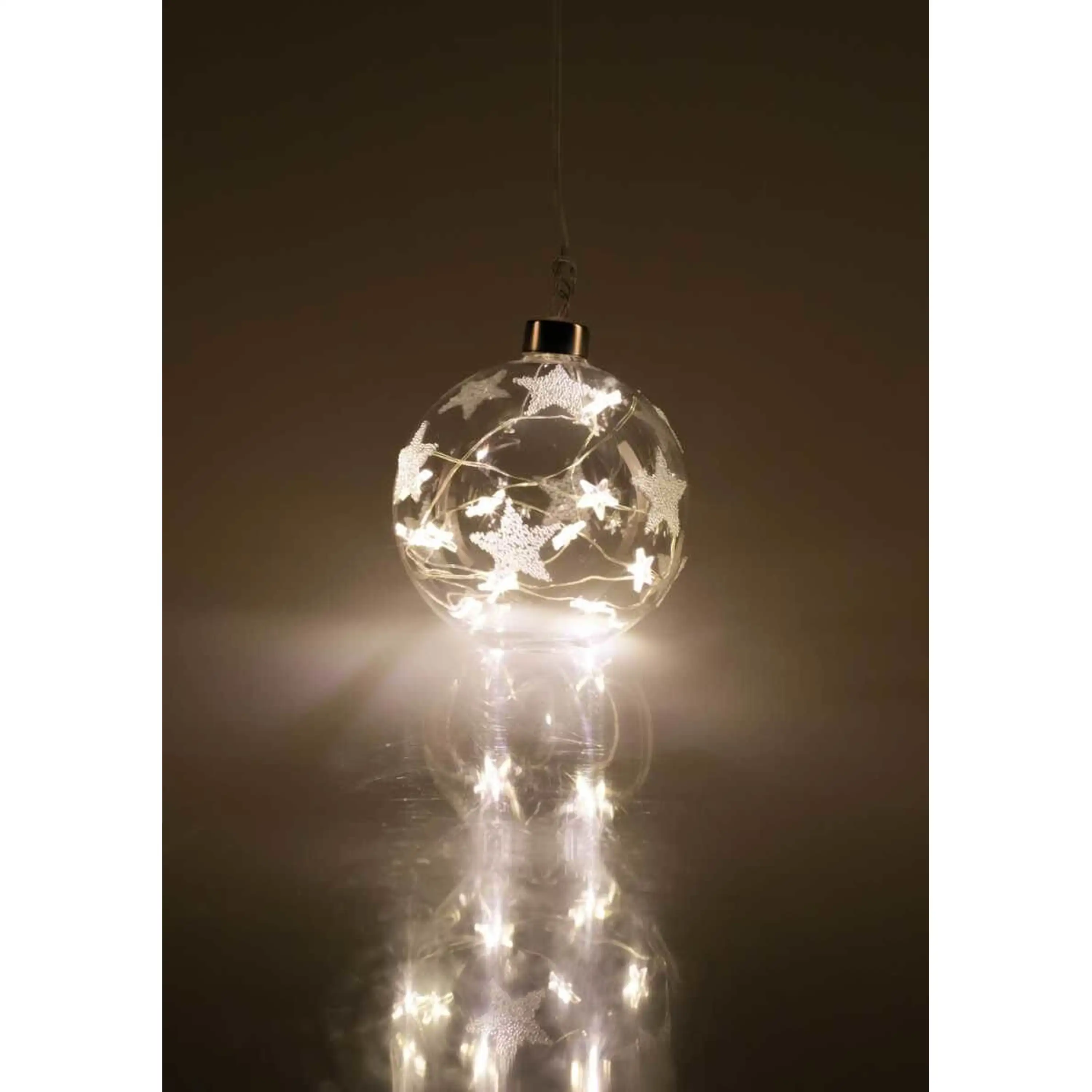 Elegantná vianočná ozdoba - guľa s hviezdami so vstavaným LED osvetlením.