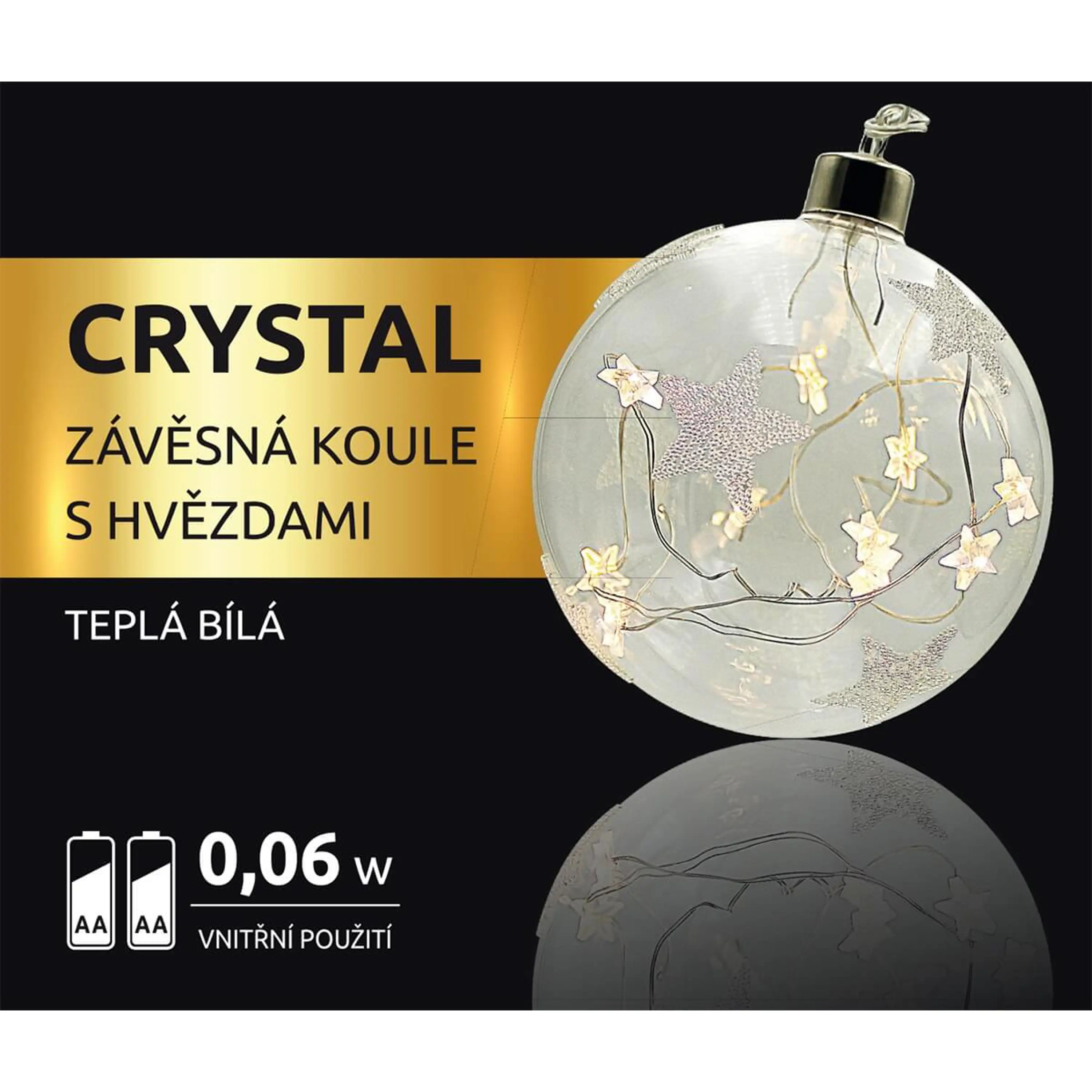 Crystal závesná guľa s hviezdami 10 LED