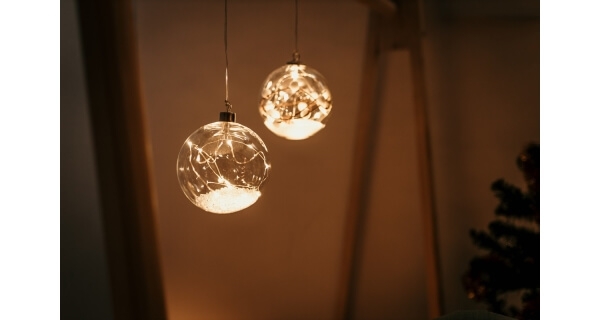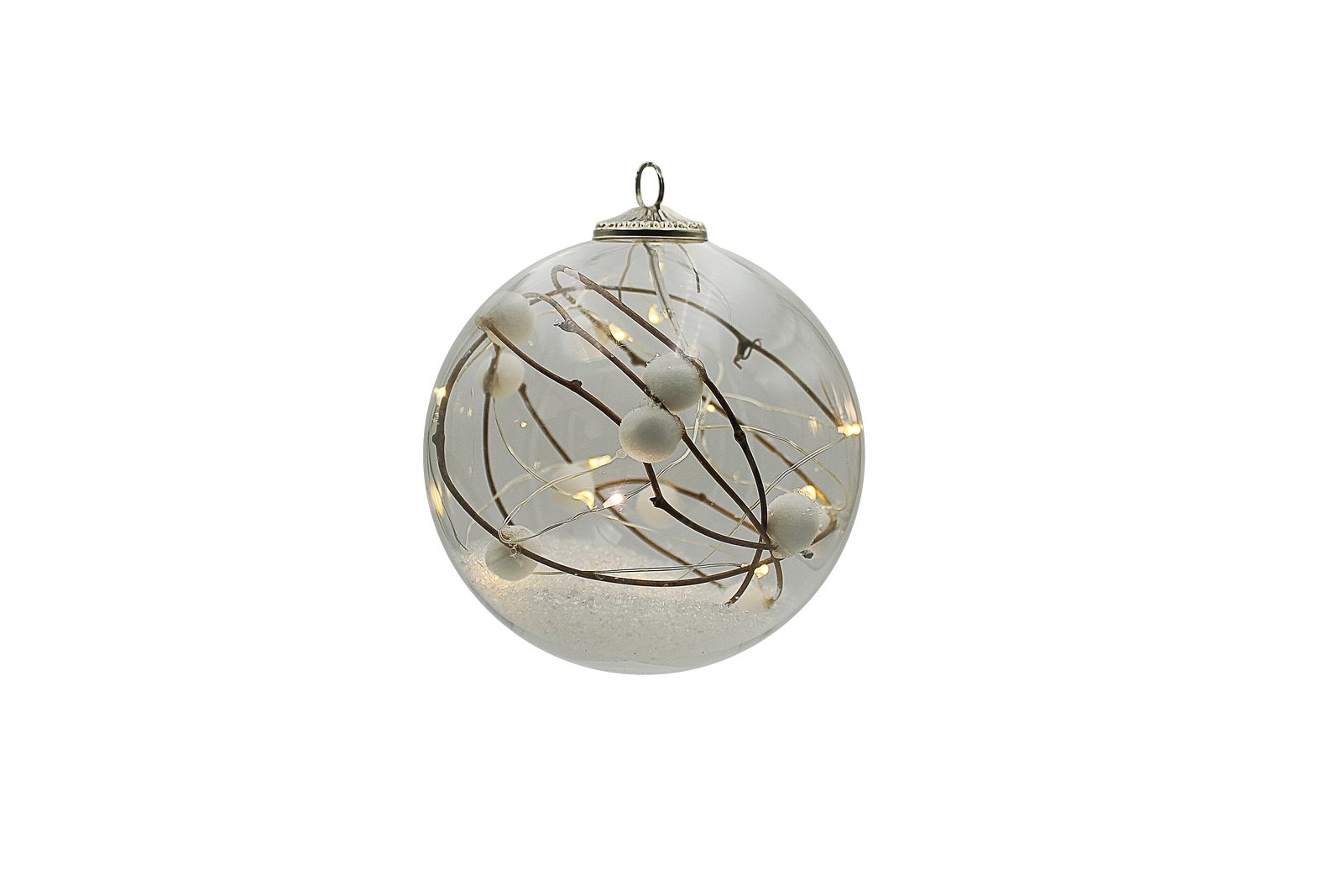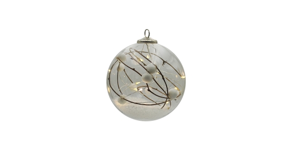 Elegantná vianočná ozdoba - guľa s vetvičkou so vstavaným LED osvetlením.