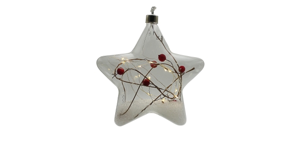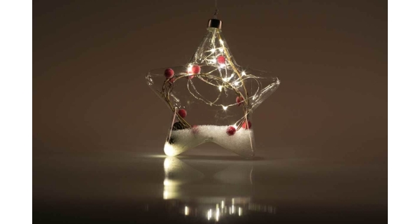 Elegantná vianočná ozdoba - hviezda so vstavaným LED osvetlením. Veľkosť vianočnej ozdoby je 18 cm.