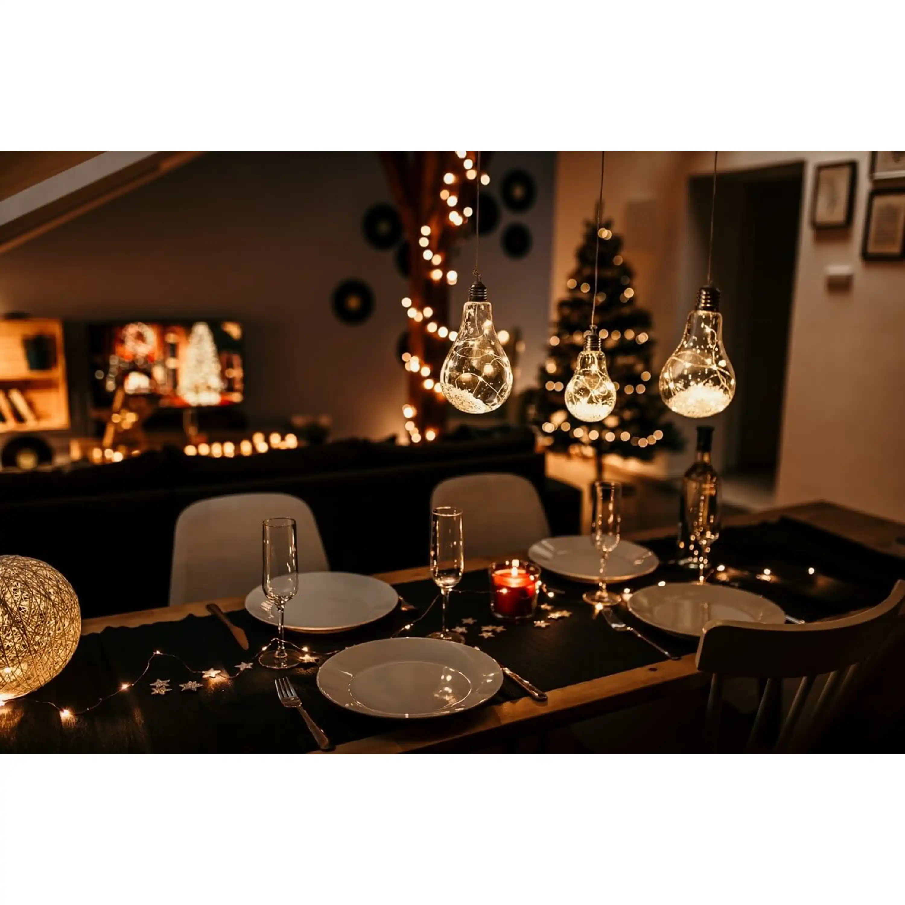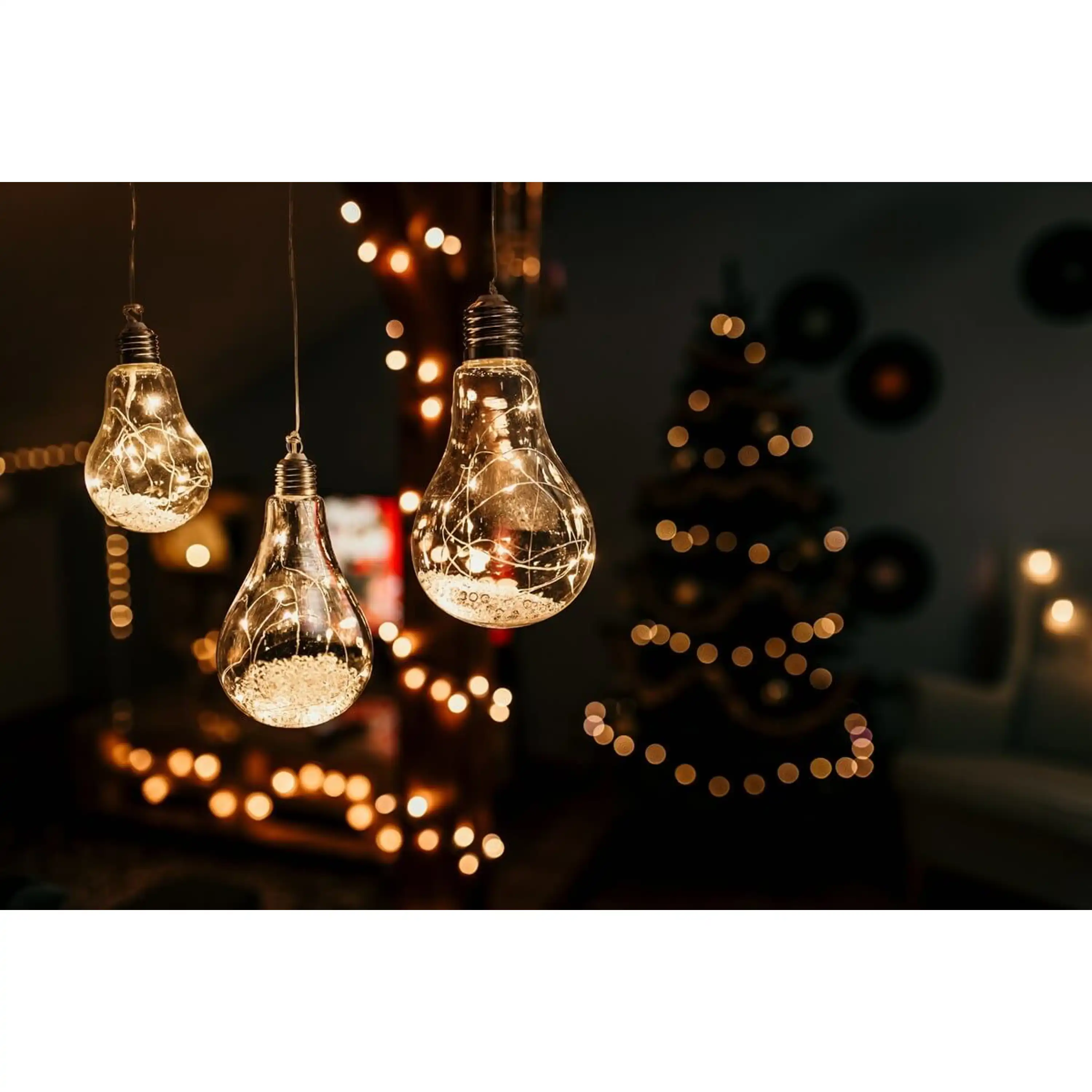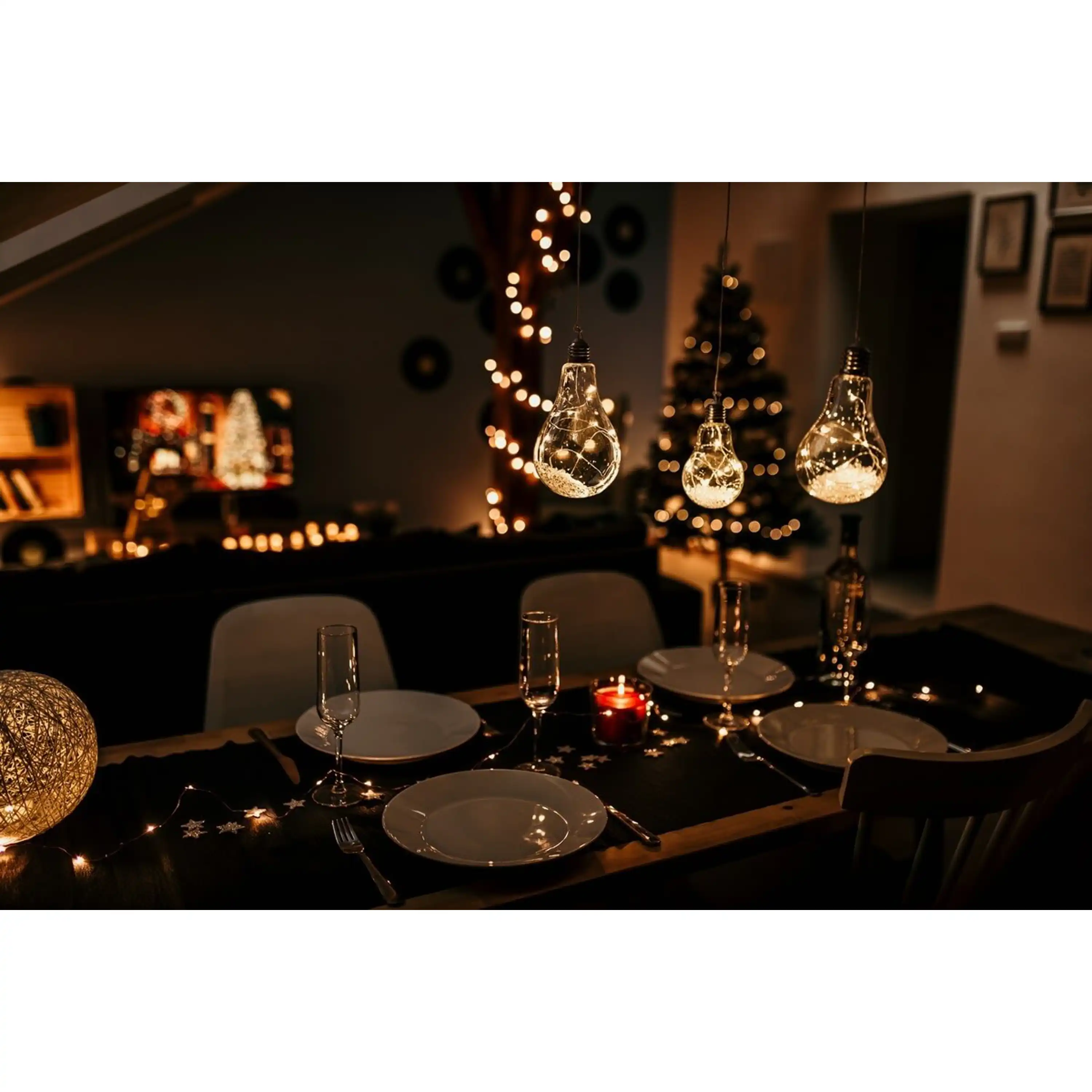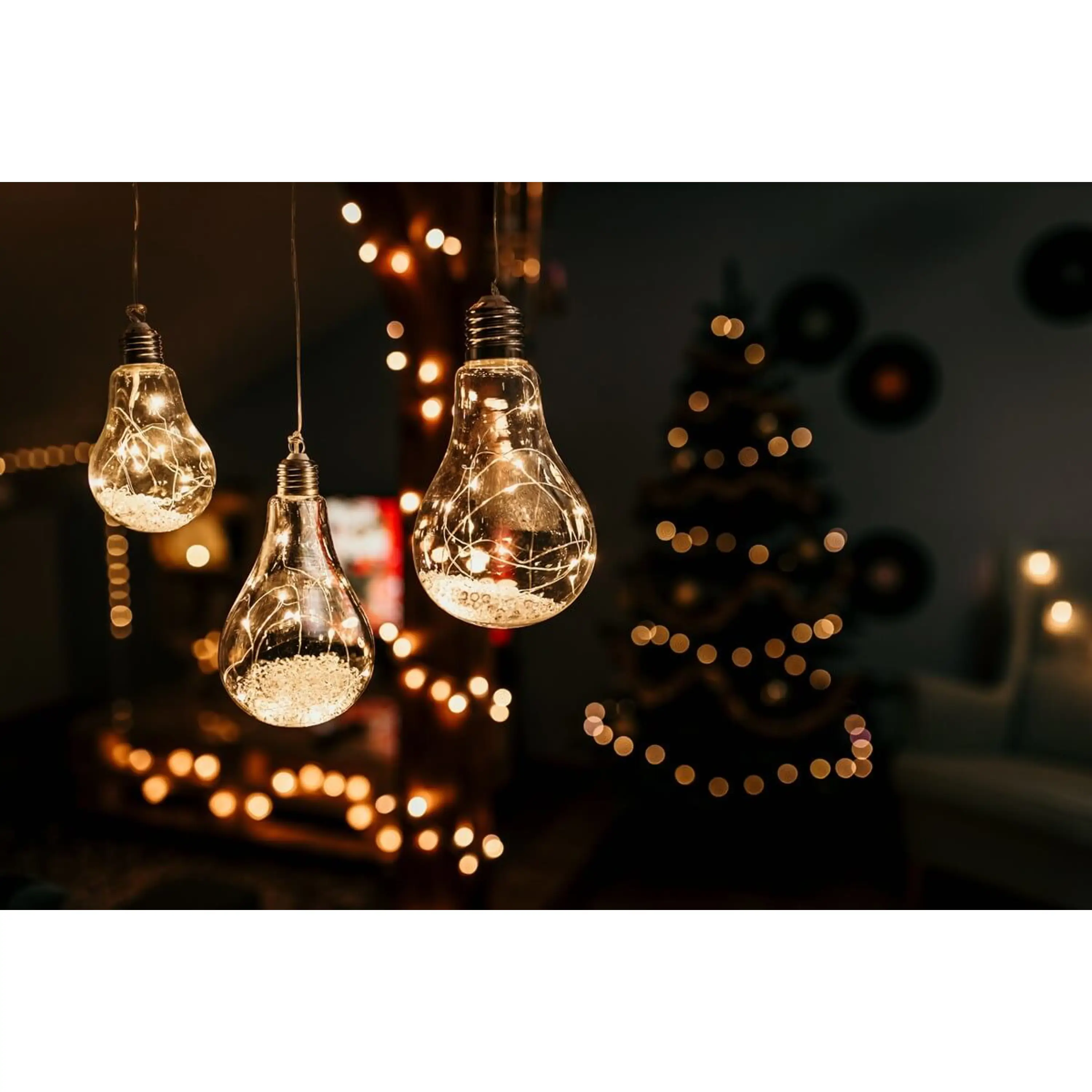 Originálna vianočná dekorácia v tvare žiarovky s LED drôtikom vo vnútri. Žiarovka vďaka teplej bielej farbe rozžiari Váš interiér a nabudí tak príjemnú vianočnú atmosféru.